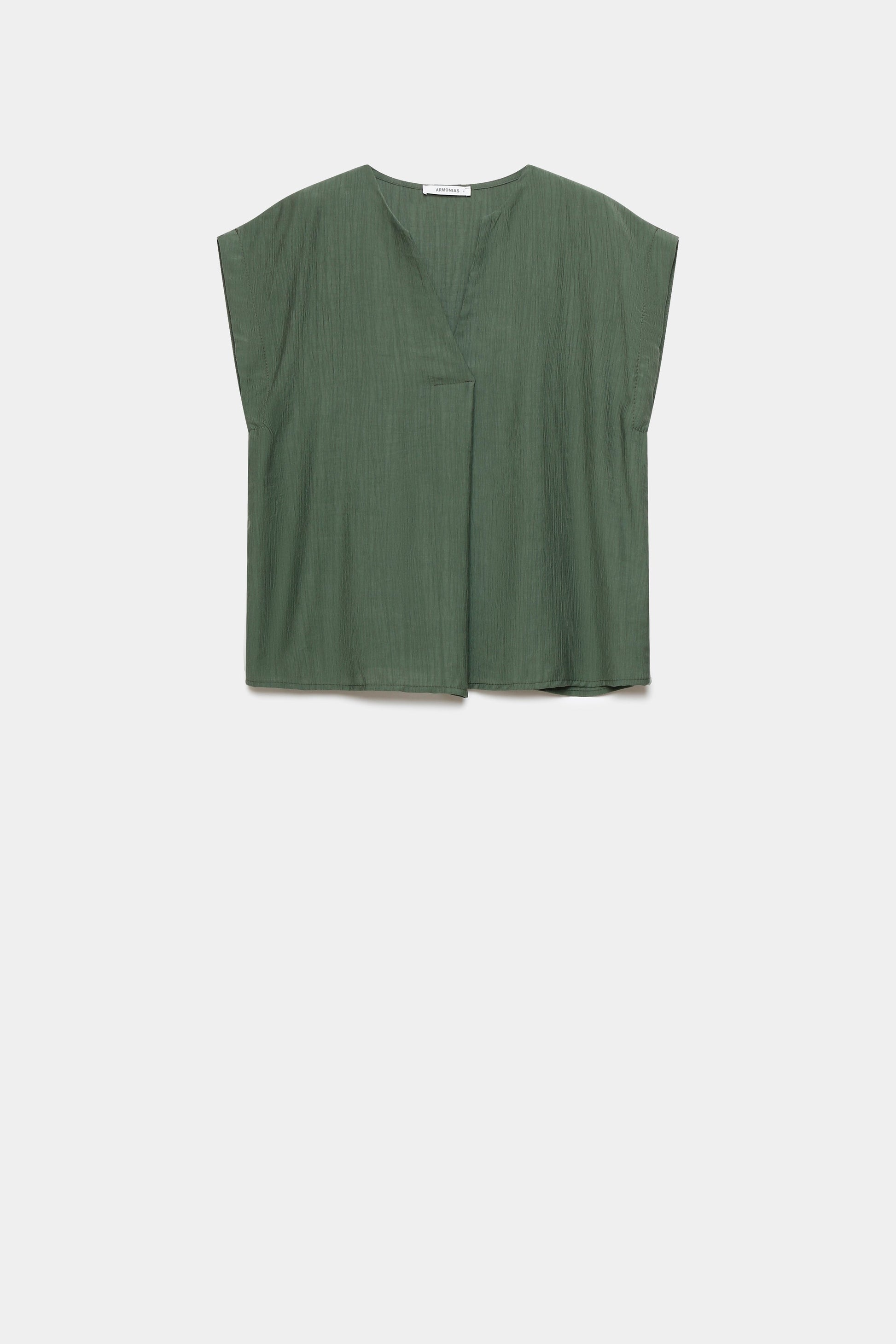 Tejido fluido. Cuello pico. Manga sisa.