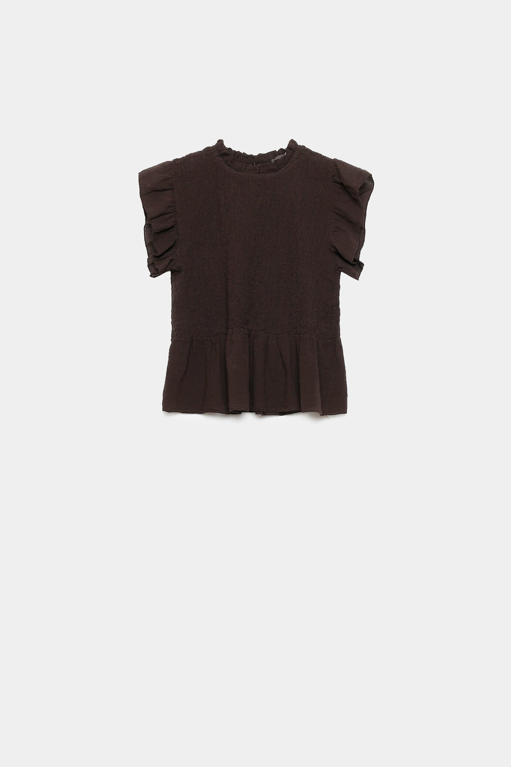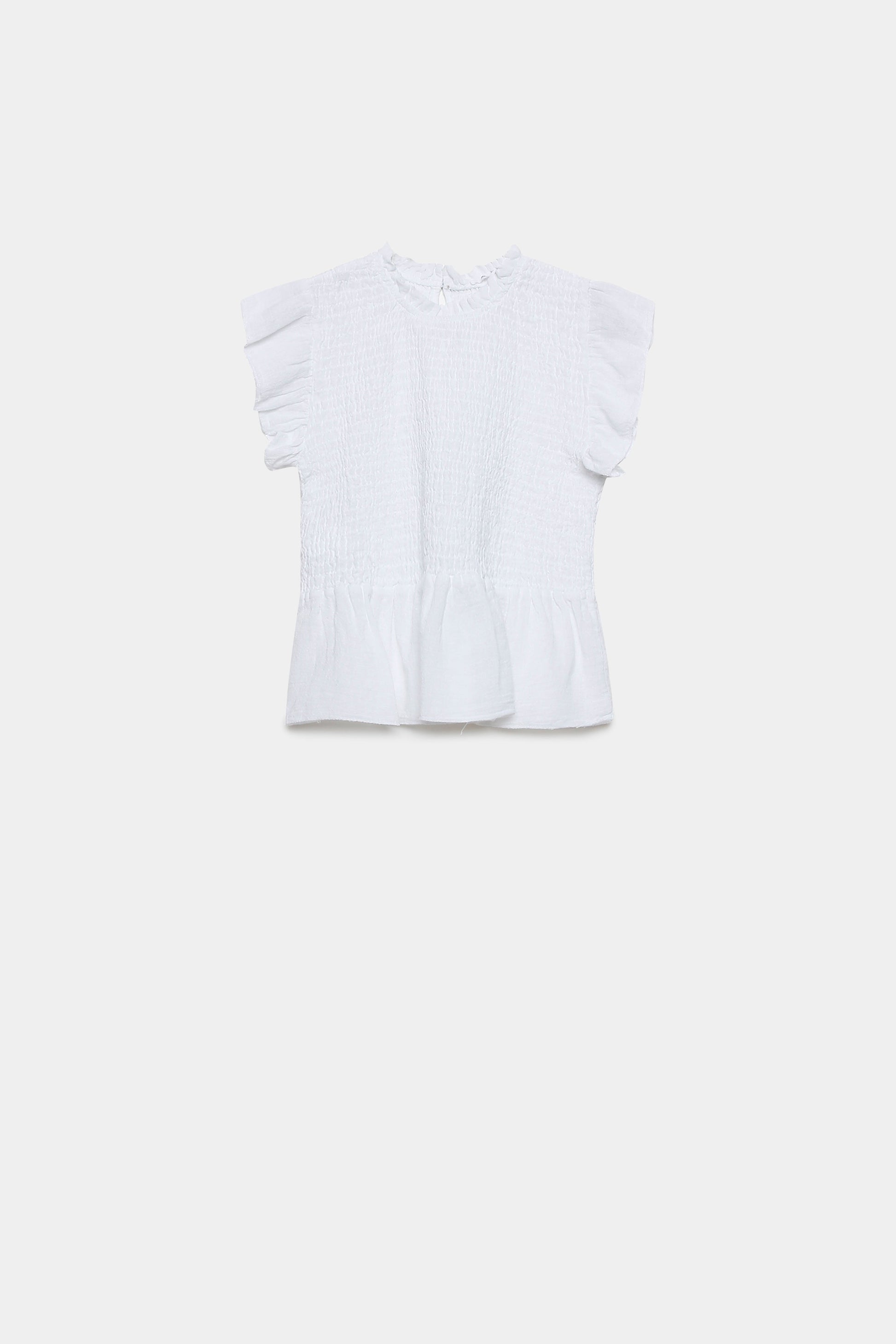 Tejido de algodón. Cuello redondo. Manga sisa. Cierre botón en la espalda.