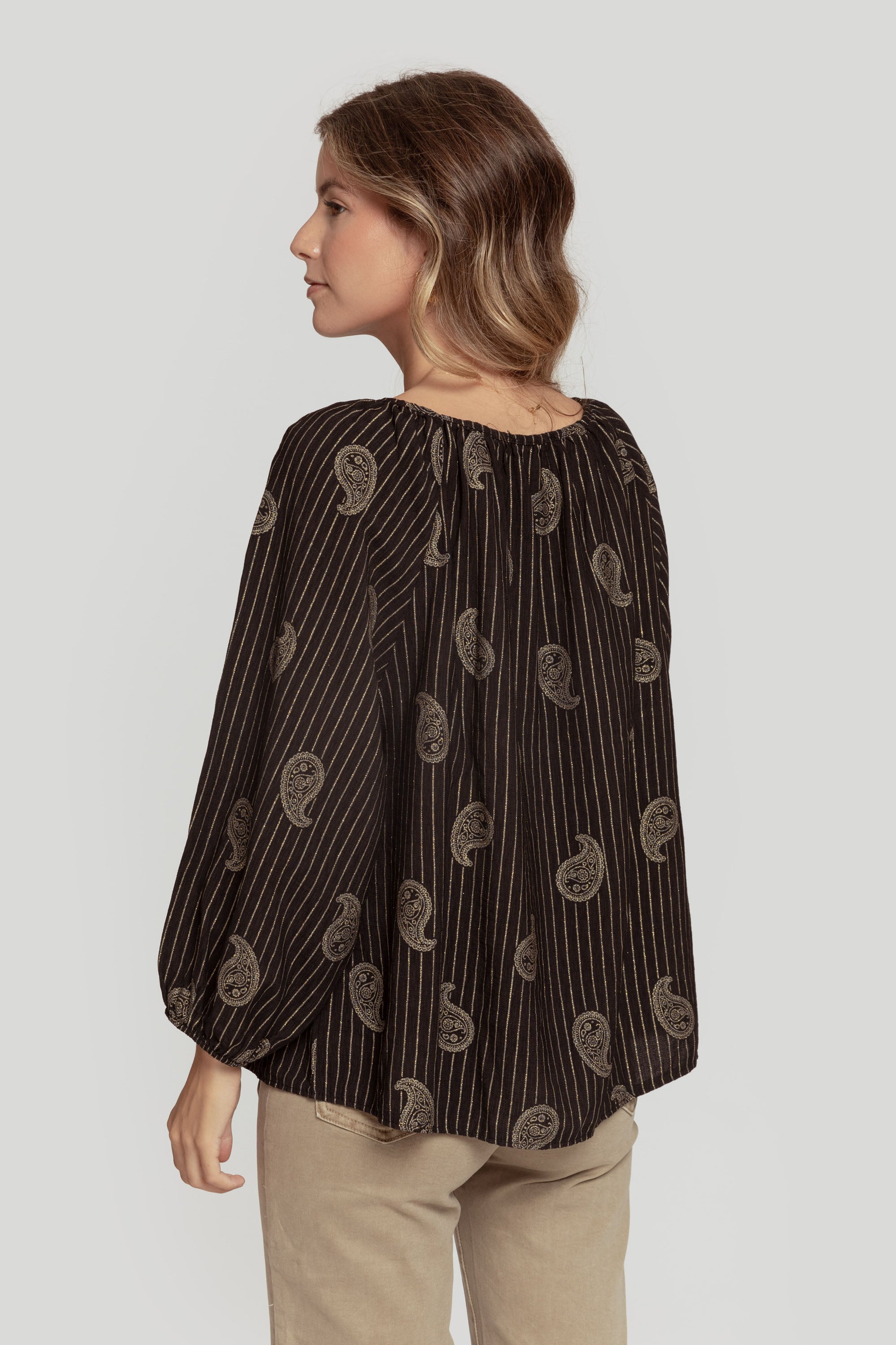 Tejido fluido. Diseño estampado. Diseño oversize. Cuello redondo. Manga larga. Puño elástico. Talla modelo: S. Altura modelo: 1.70 m