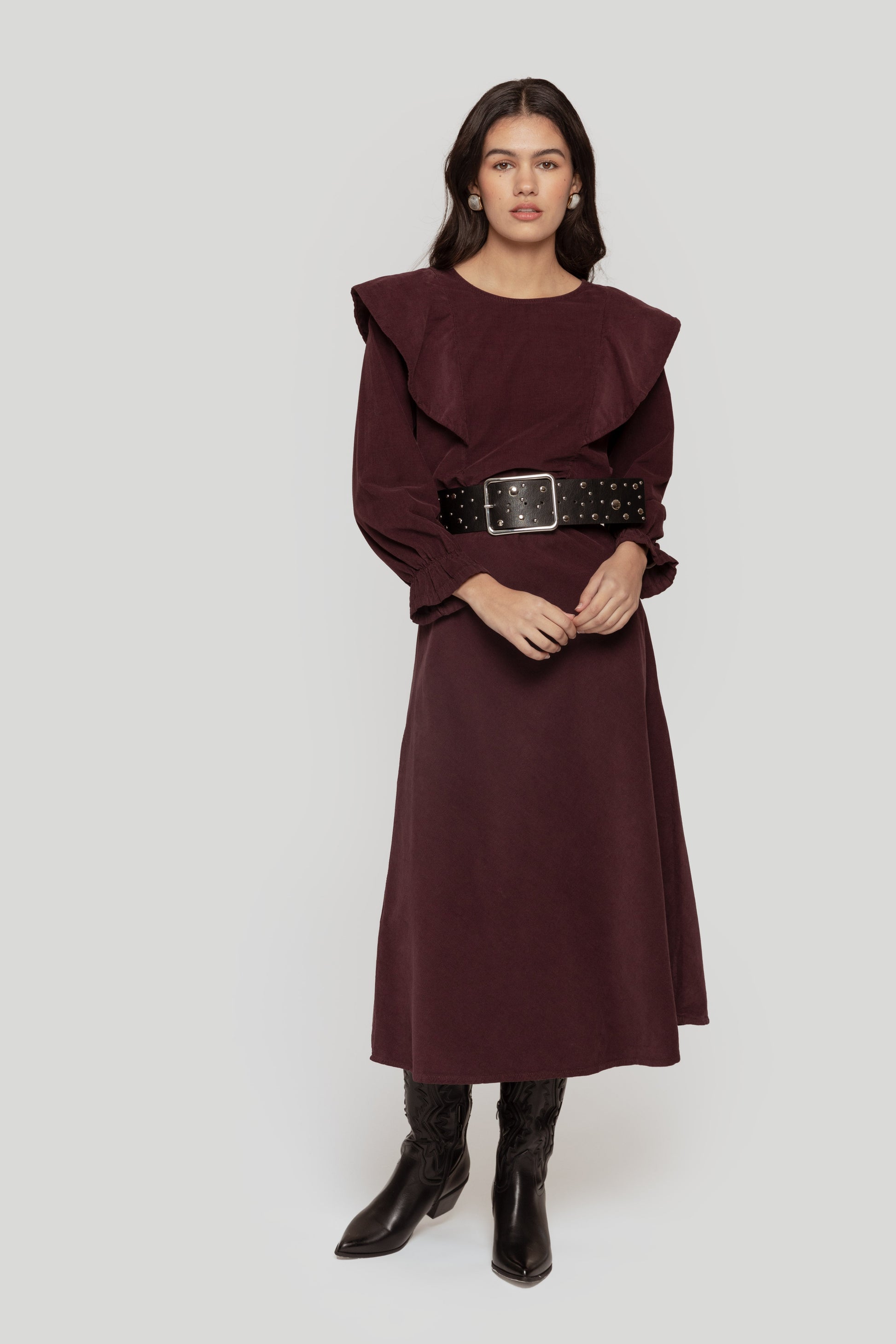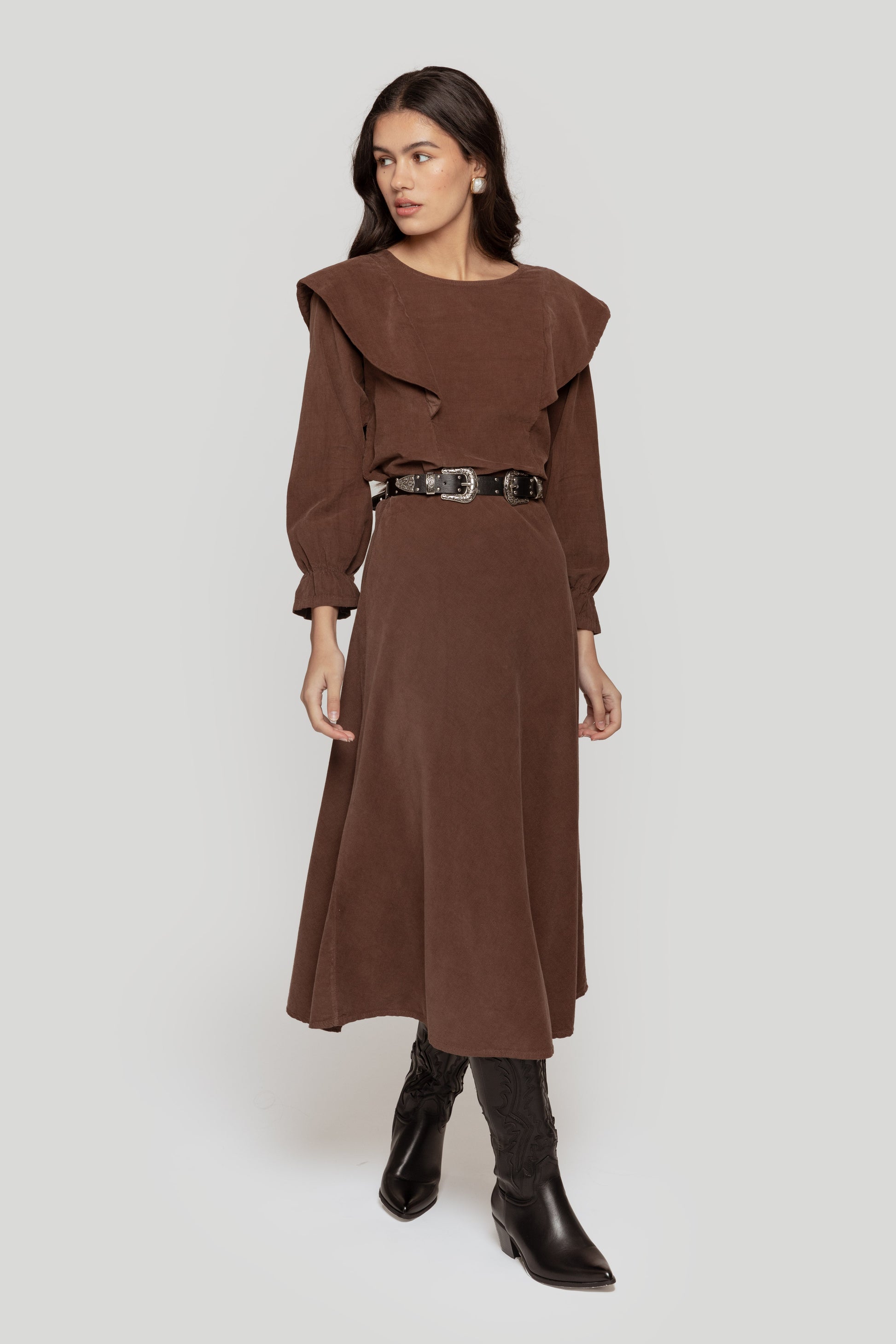 Tejido mezcla de algodón. Tejido pana. Diseño recto. Diseño cropped. Cuello amplio. Manga larga. Puños acampanados. Volante amplio. Talla modelo: S. Altura modelo: 1,70 m.
