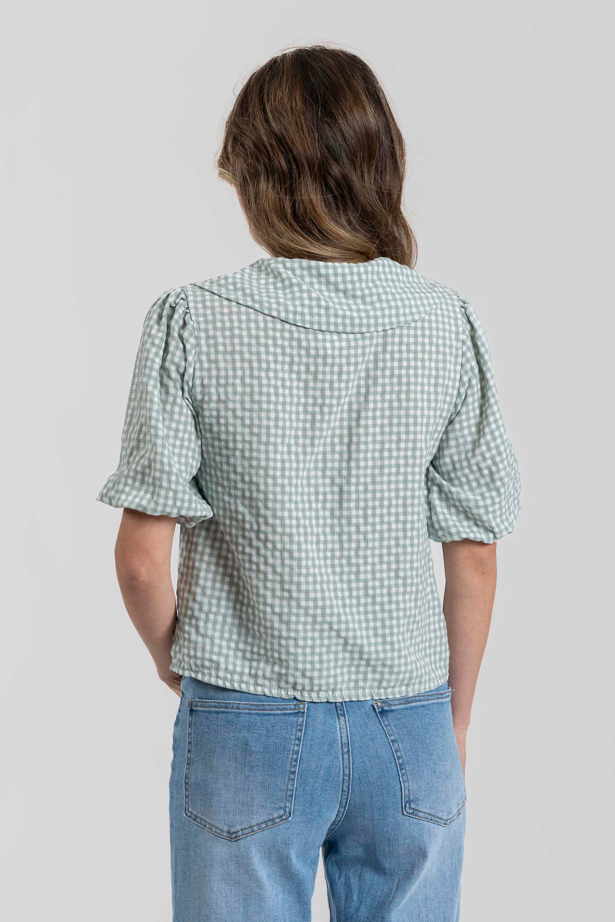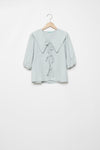 Tejido fluido. Diseño estampado. Diseño recto. Cuello bobo. Manga corta. Cierre lazos.