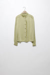 Tejido satinado. Diseño recto. Cuello pico. Manga larga. Puño elástico. Cierre de botones. Detalle volante. Talla modelo: S. Altura modelo: 1,66 m.