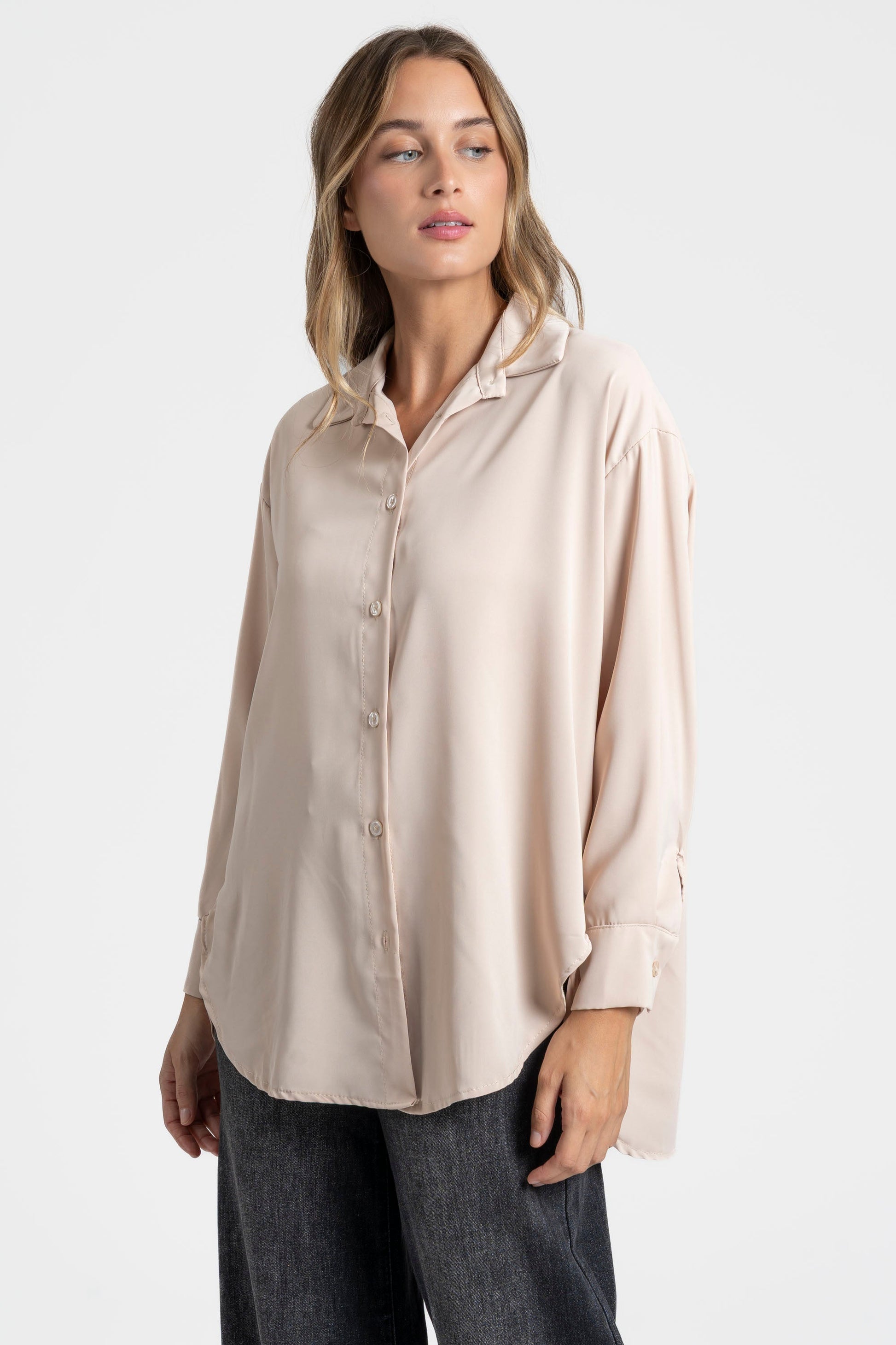 Tejido fluido. Diseño recto. Diseño amplio. Cuello solapa. Manga larga. Puños abotonados. Cierre de botones. Bajo redondeado.