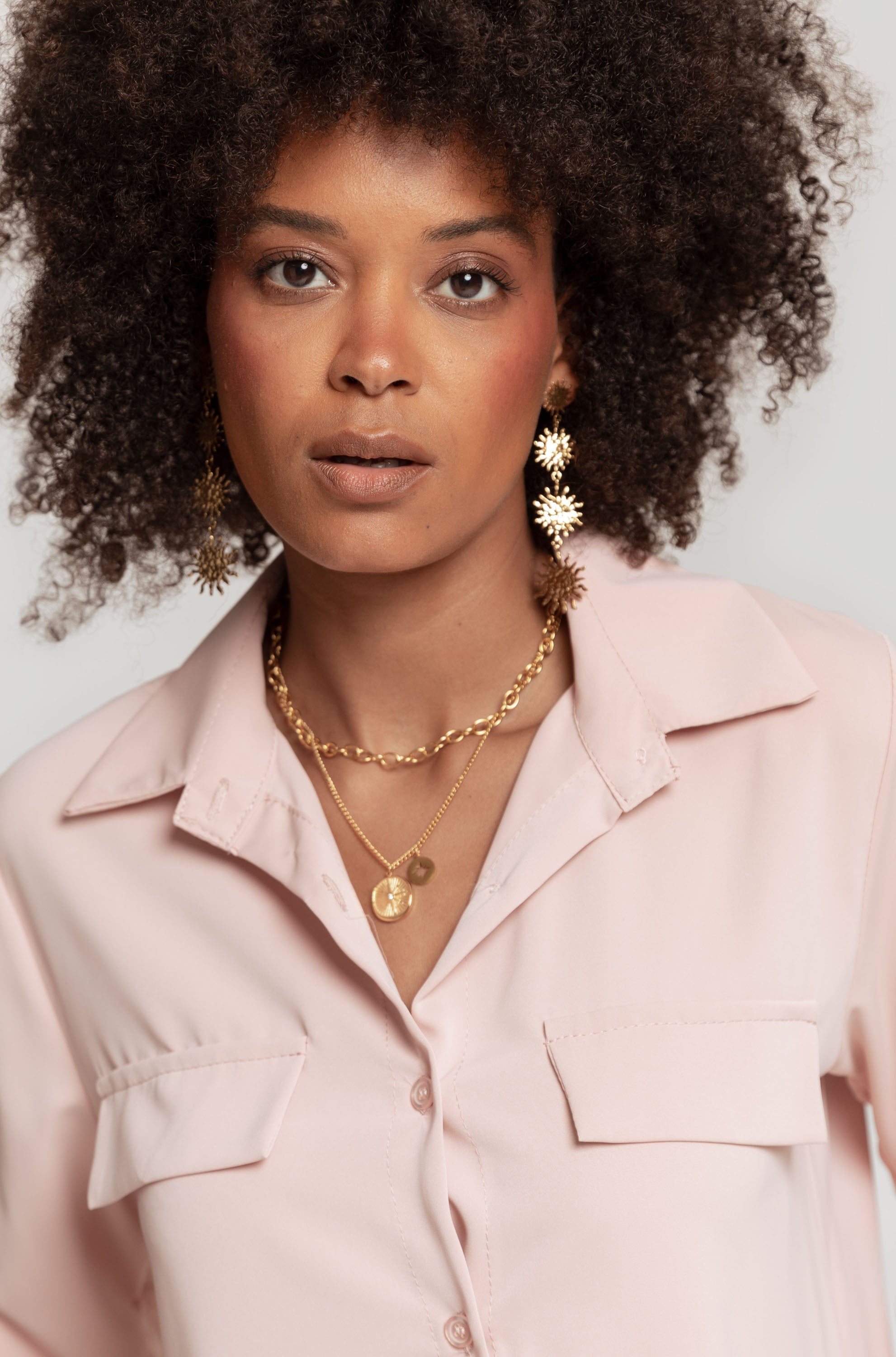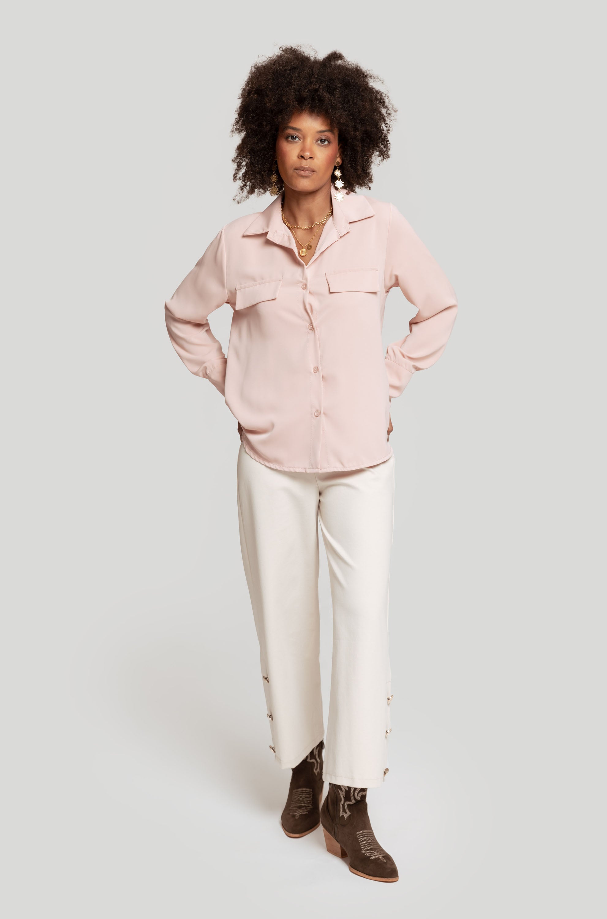 Tejido de gasa. Diseño largo. Diseño recto. Cuello solapa. Cuello pico. Manga larga. Puño abotonado. Cierre de botones. Parte de atrás ligeramente más larga. Talla modelo: S. Altura modelo: 1.66 m.