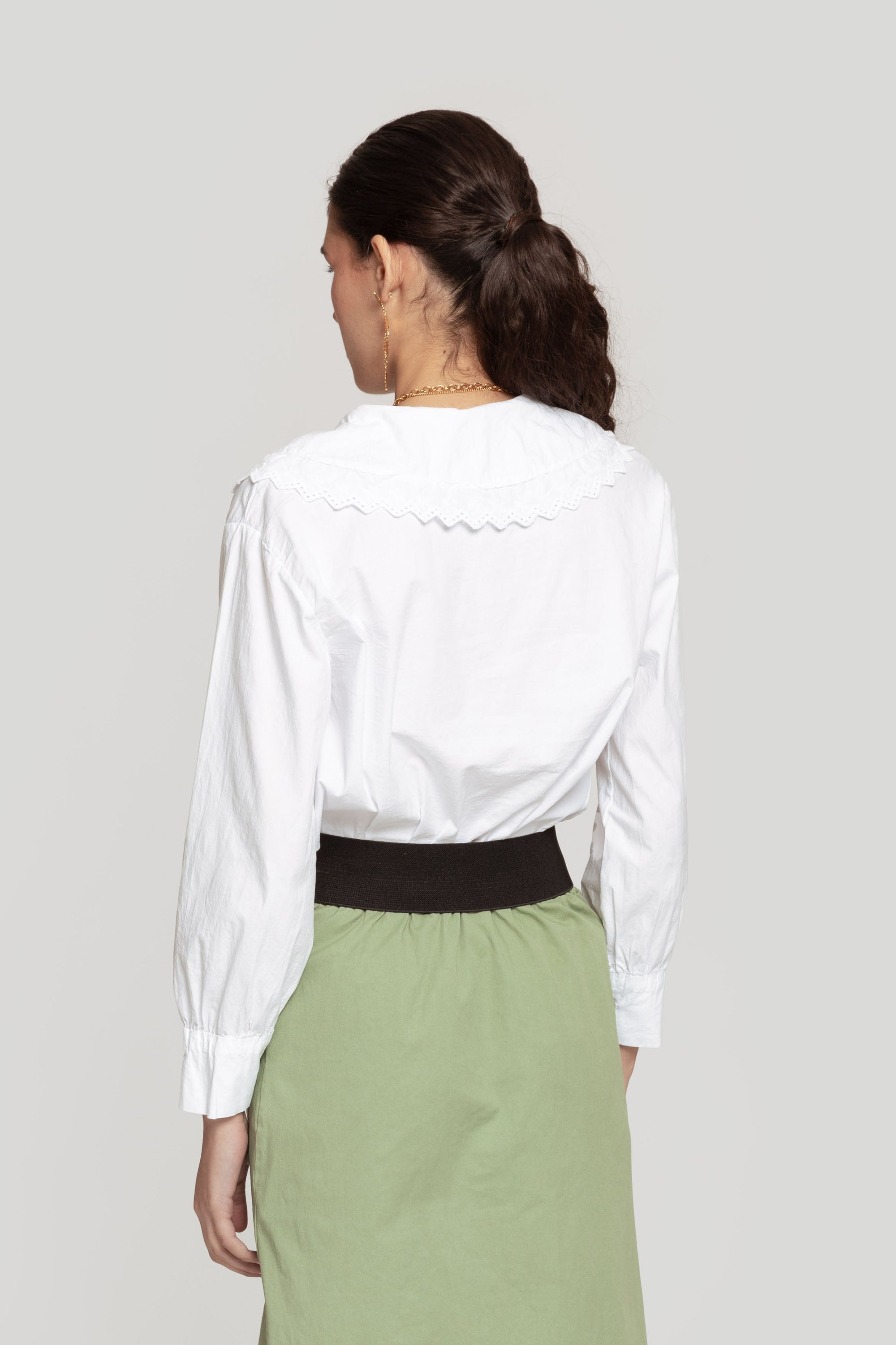 Tejido de algodón. Diseño cropped. Diseño recto. Cuello bobo. Manga larga. Puño abotonado. Cierre de botones. Detalle tiras. Talla modelo: S. Altura modelo: 1,75 m.