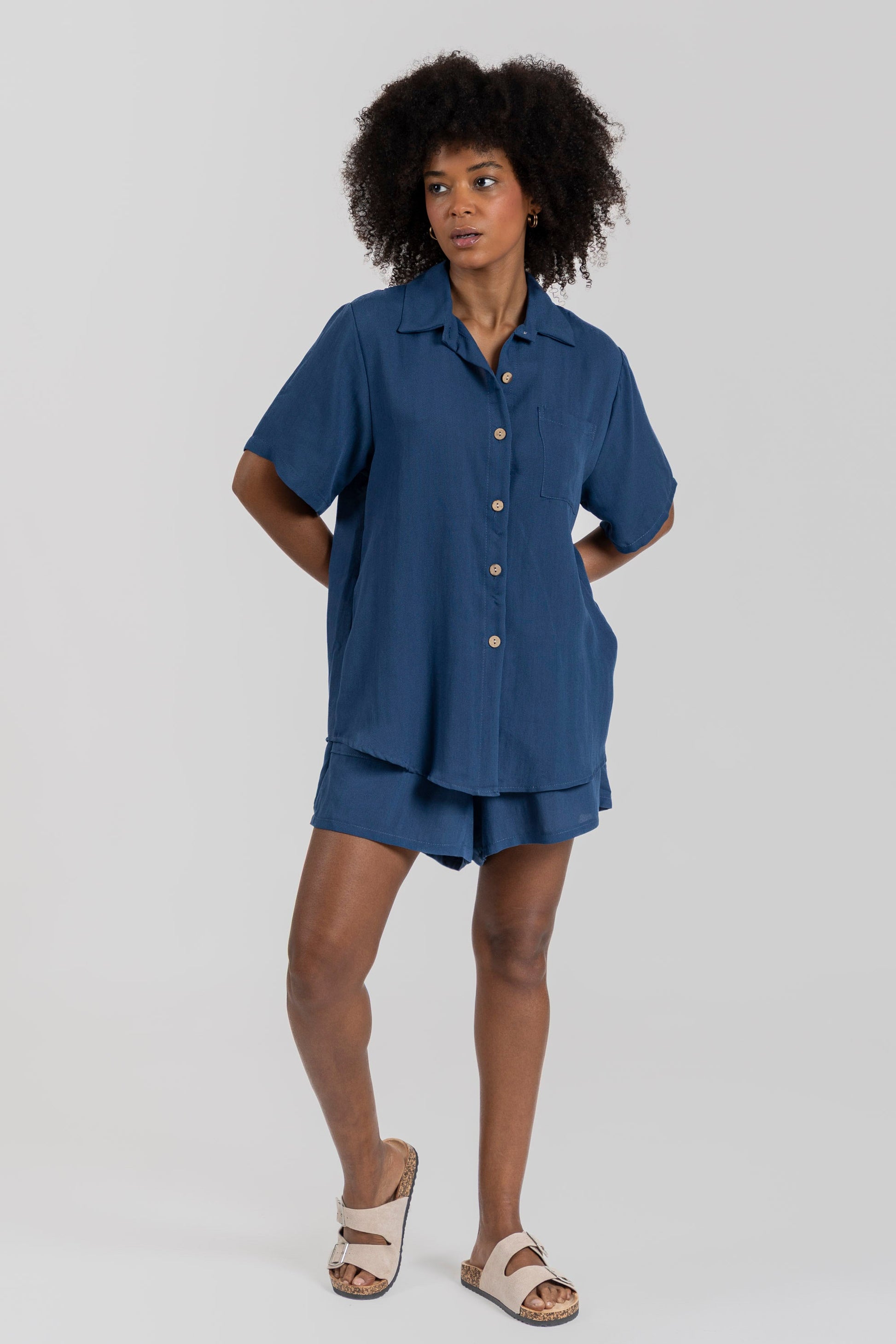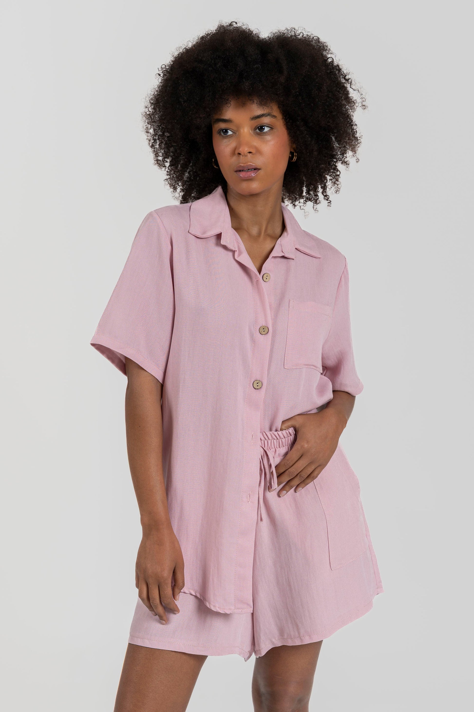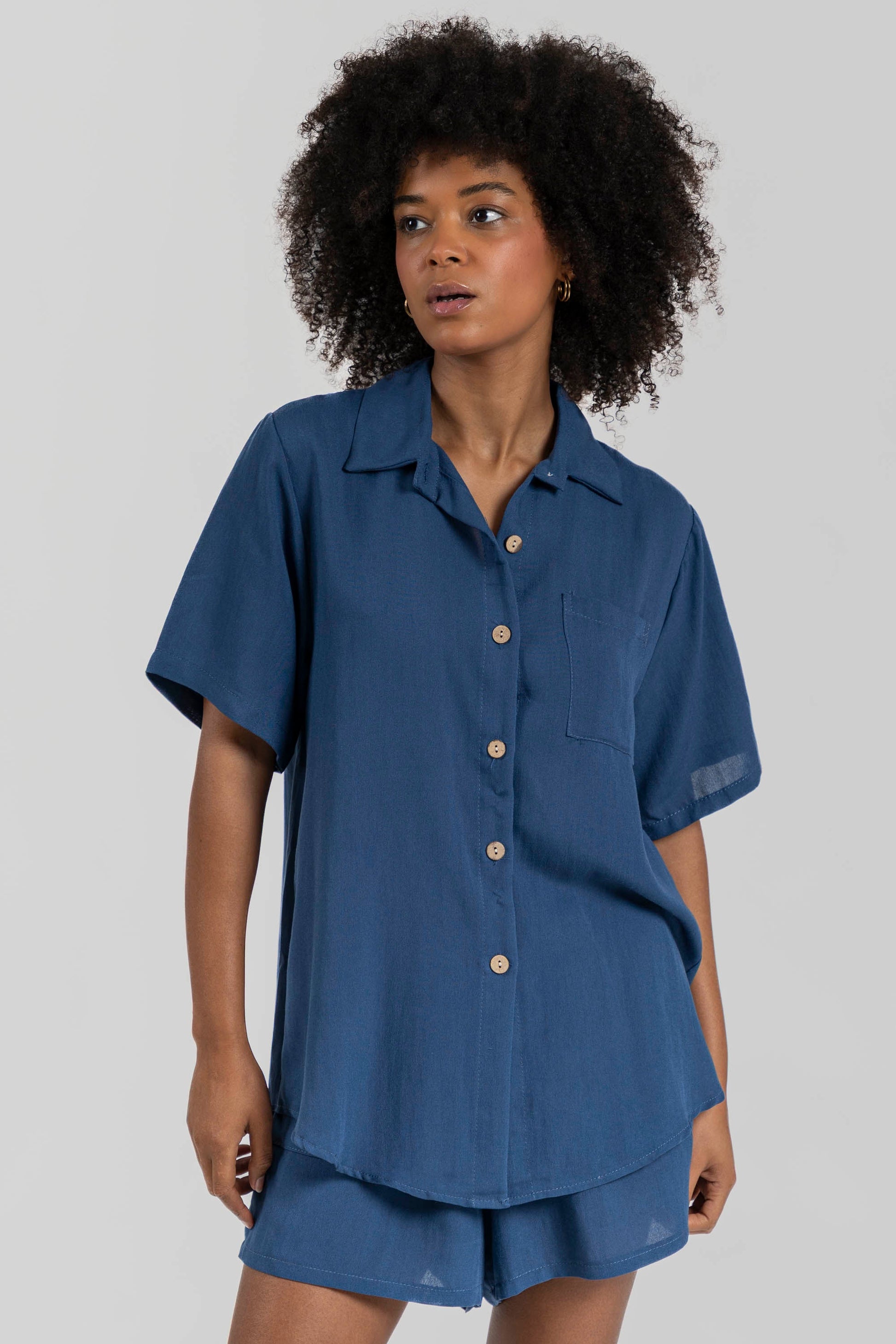 Camisa cuello solapa. Manga corta. Cierre de botones.