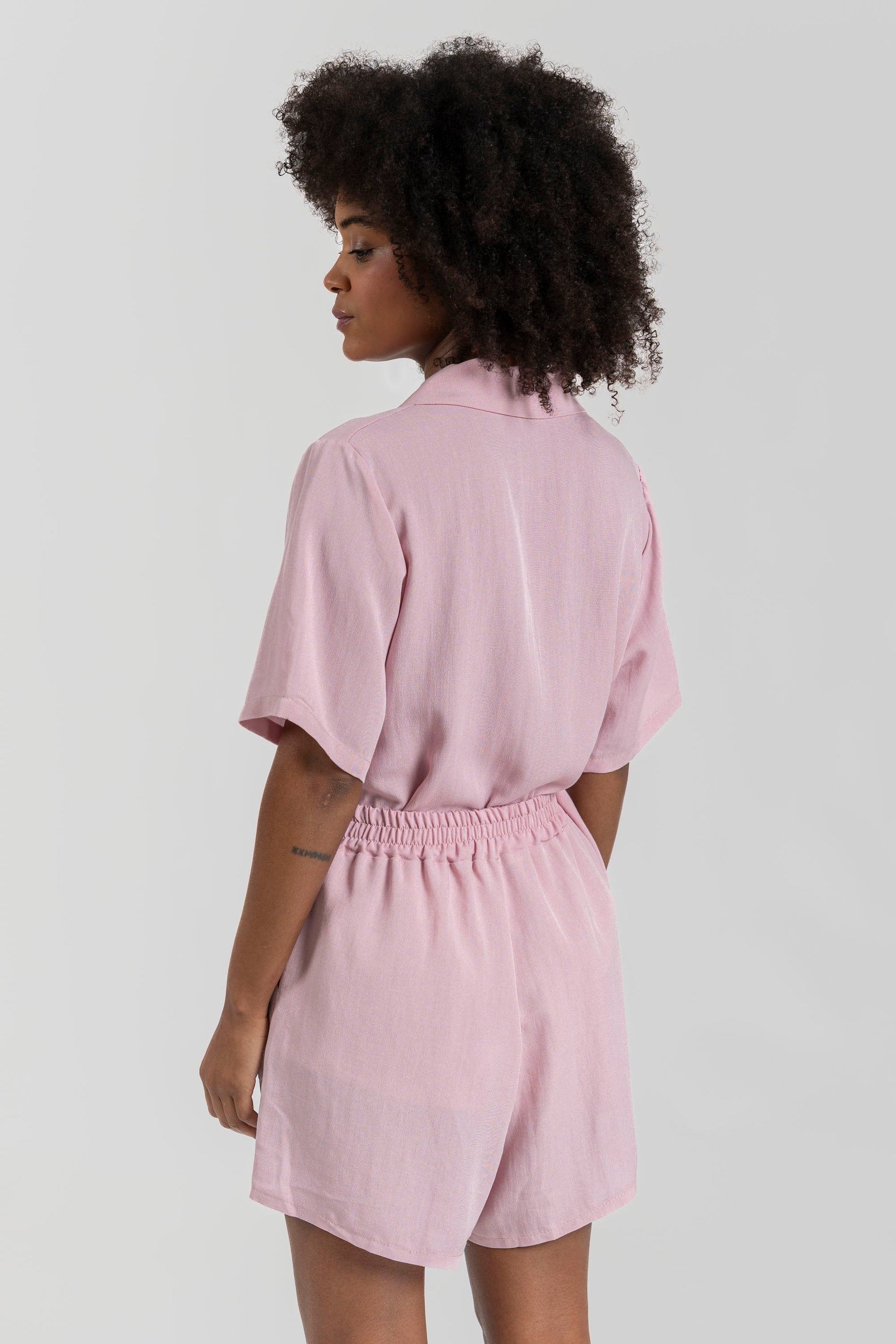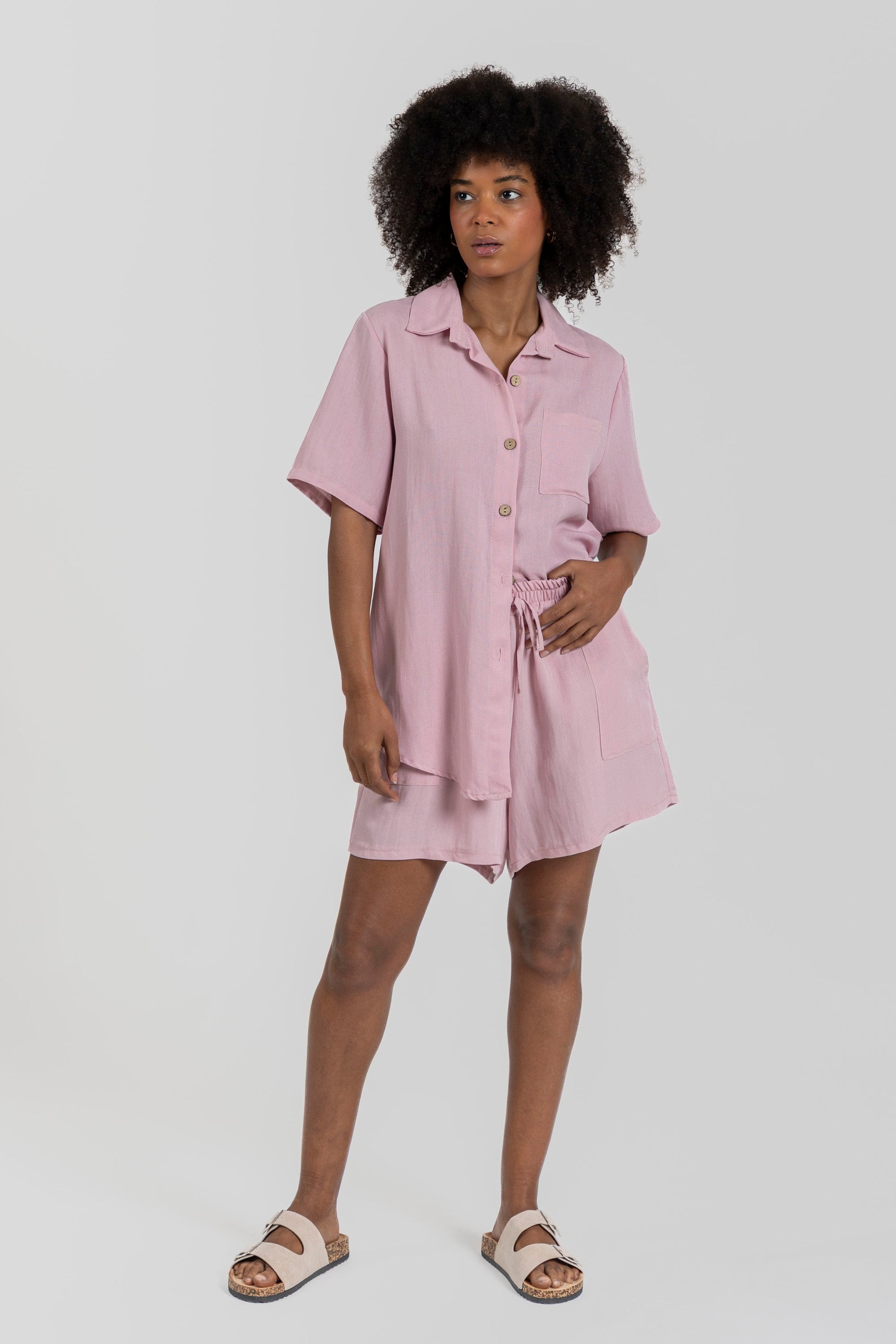 Shorts de cintura alta y elástica. Bolsillos laterales.