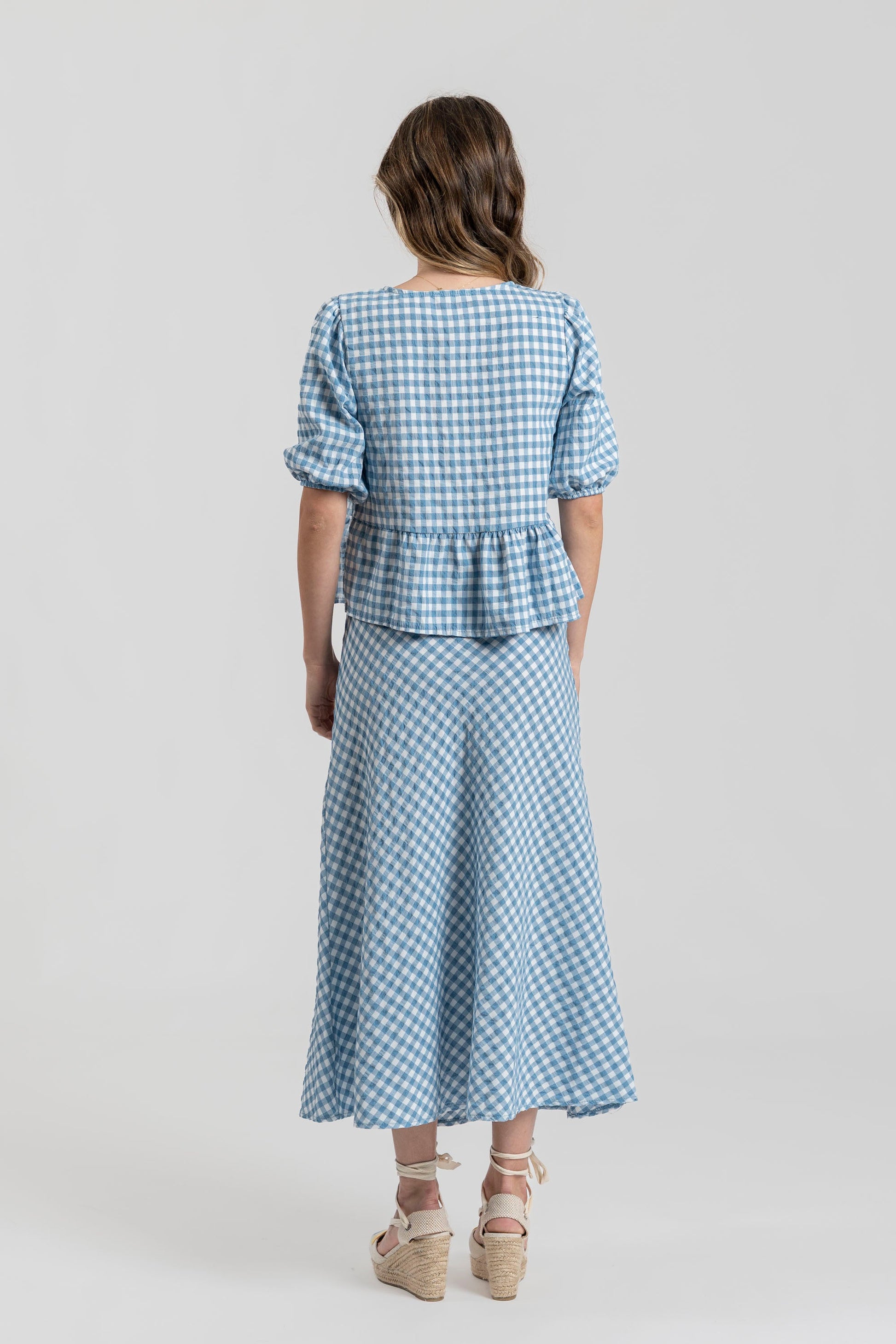 Blusa cuello redondo. Manga corta. Cierre lazos.