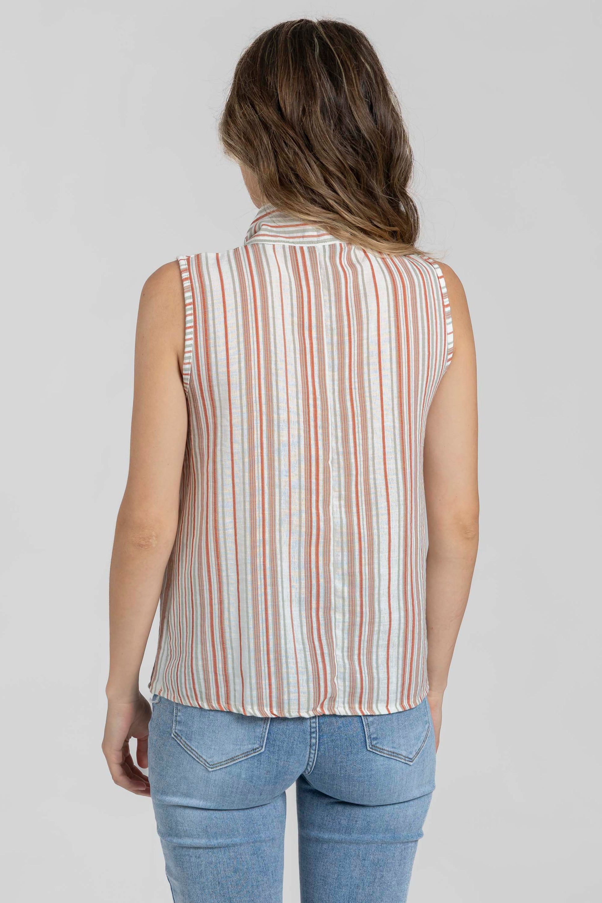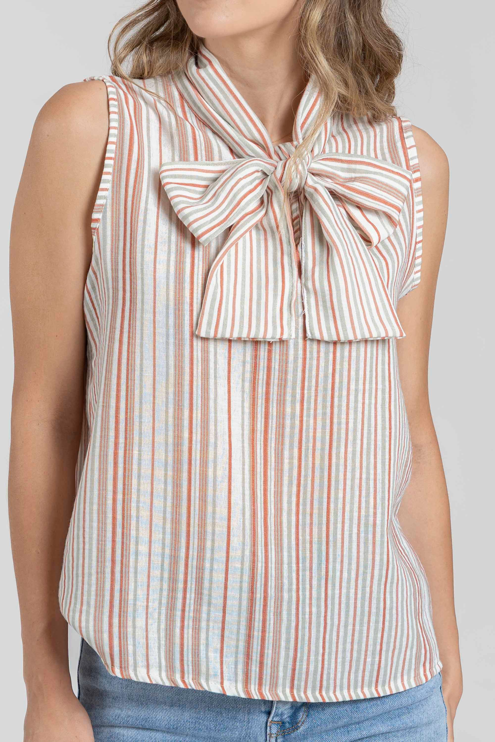 Tejido efecto lino. Manga sisa. Cuello pico con lazo. Talla S. Altura modelo: 1.70 m