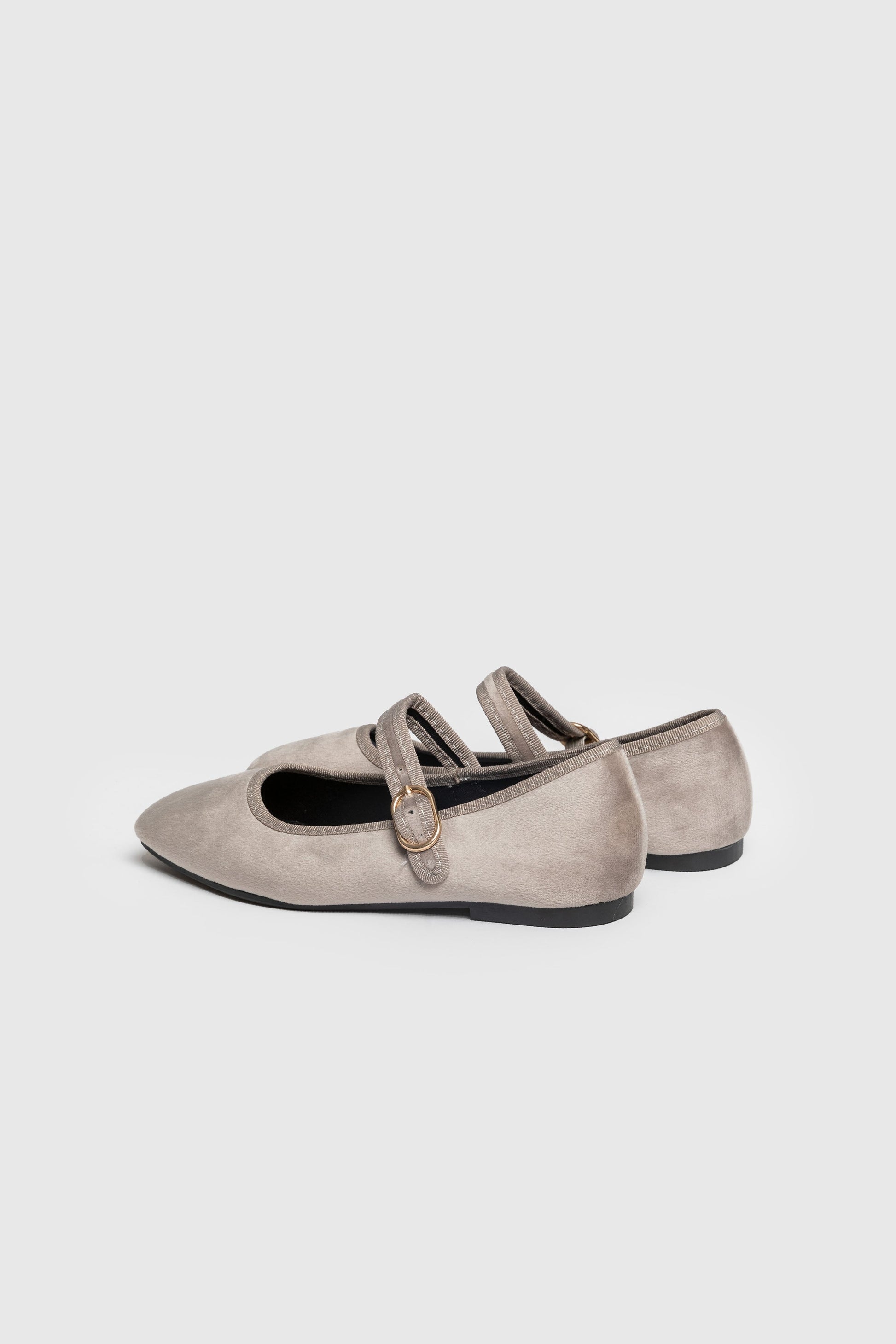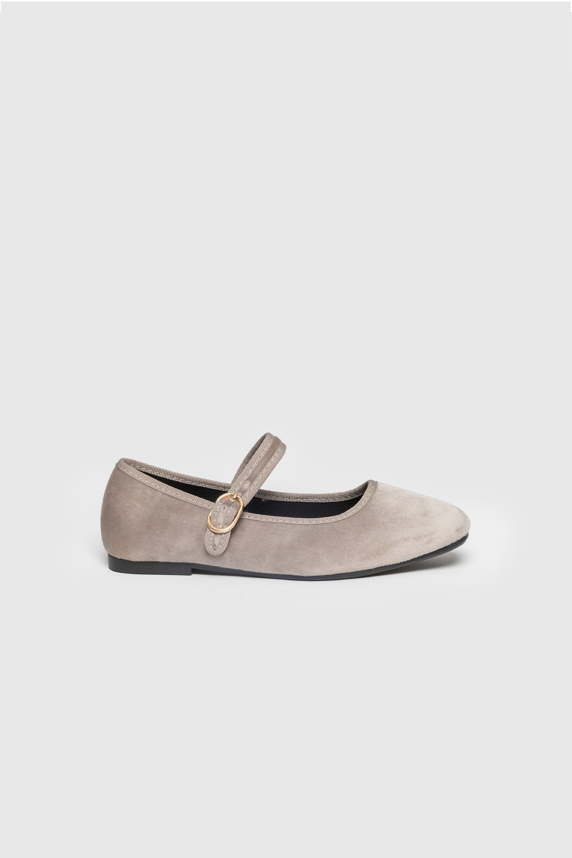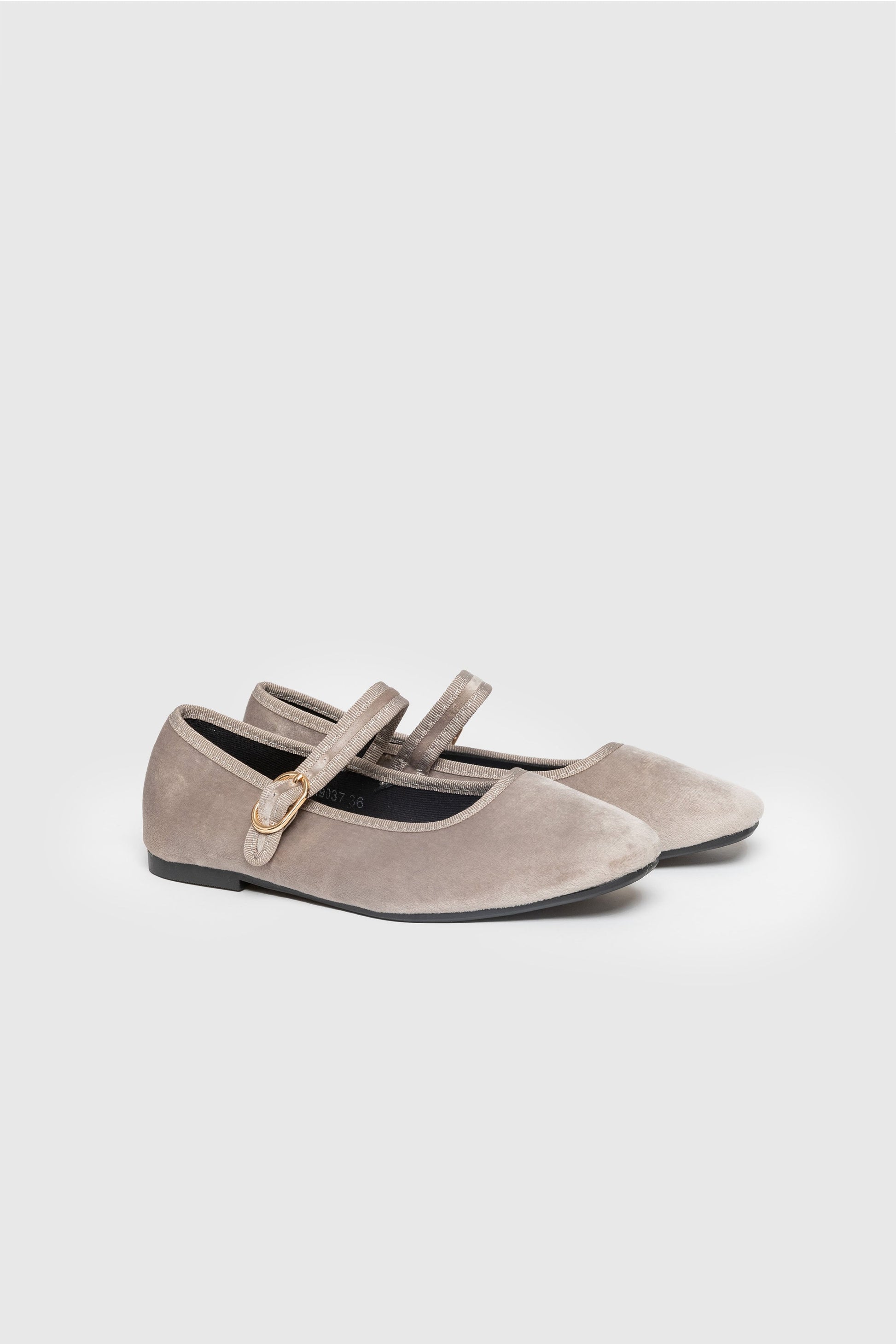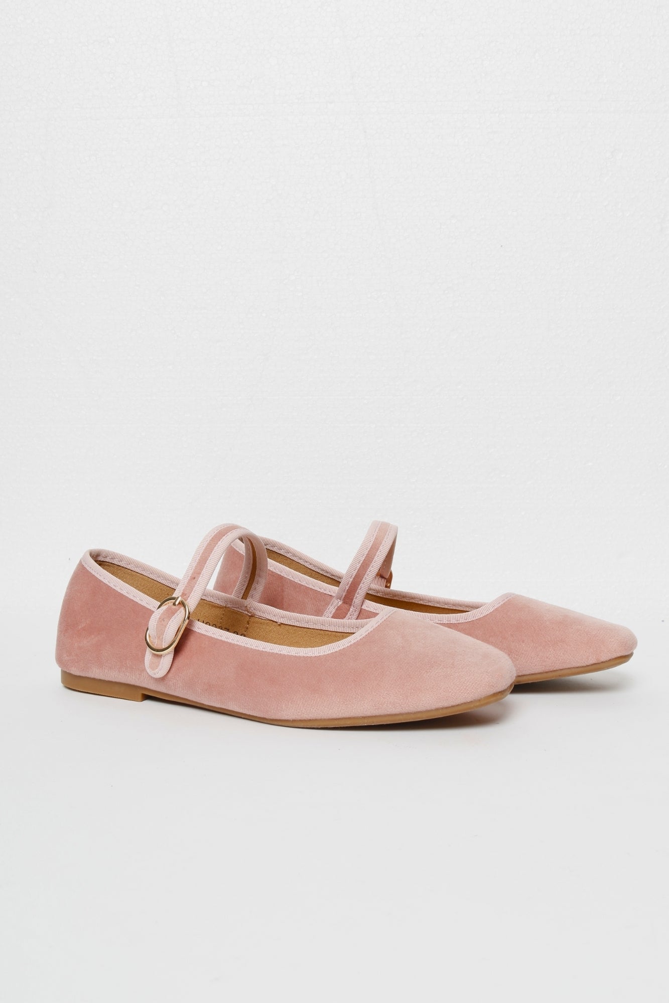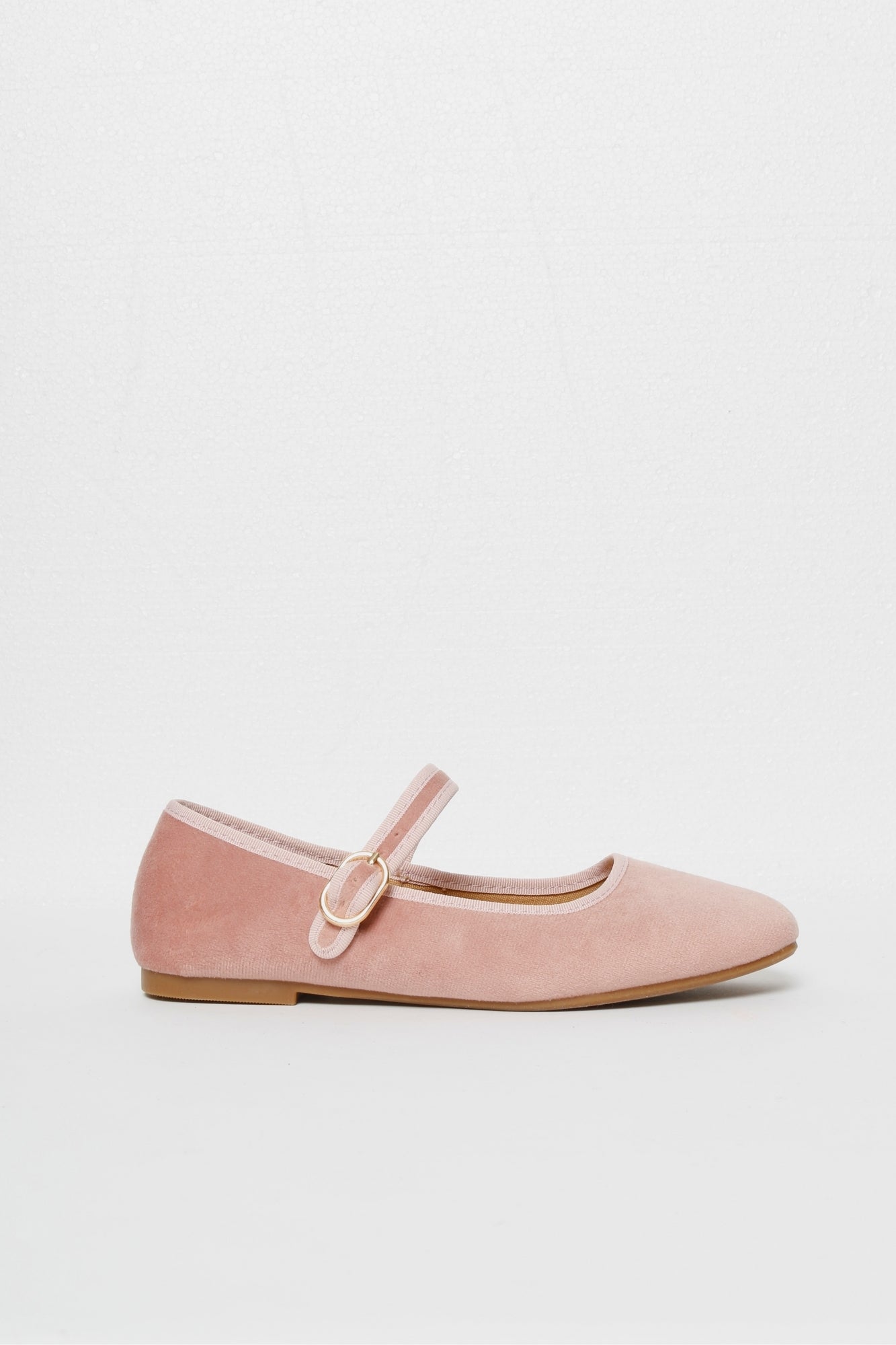Zapato plano. Tejido terciopelo. Diseño bailarina. Punta cuadrada. Suela plana. Cierre mediante tira con hebilla. Suela de contacto antideslizante. Altura piso: 1.0 cm