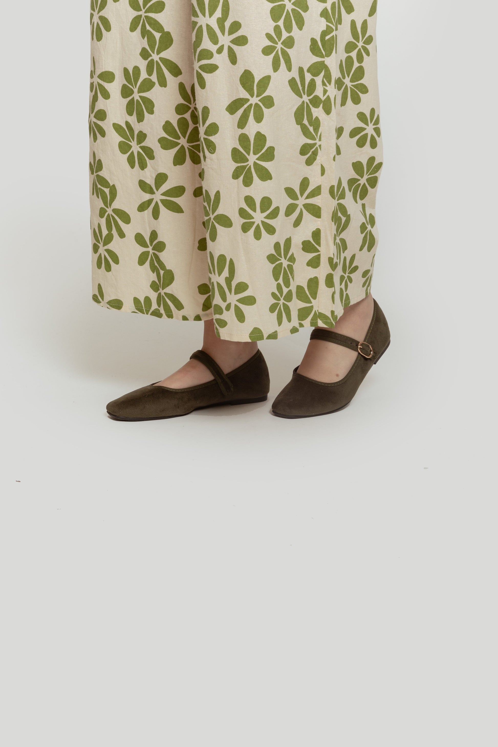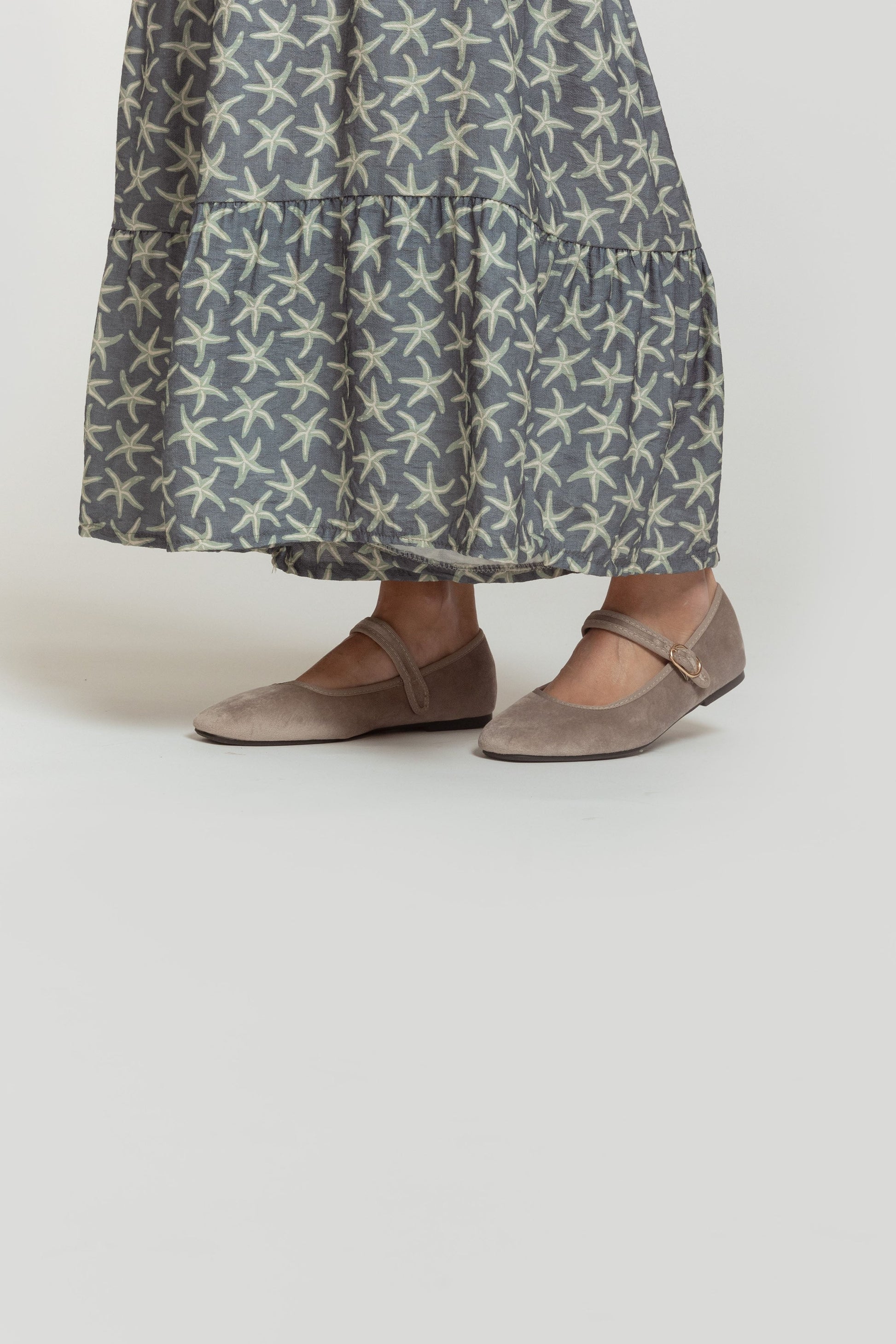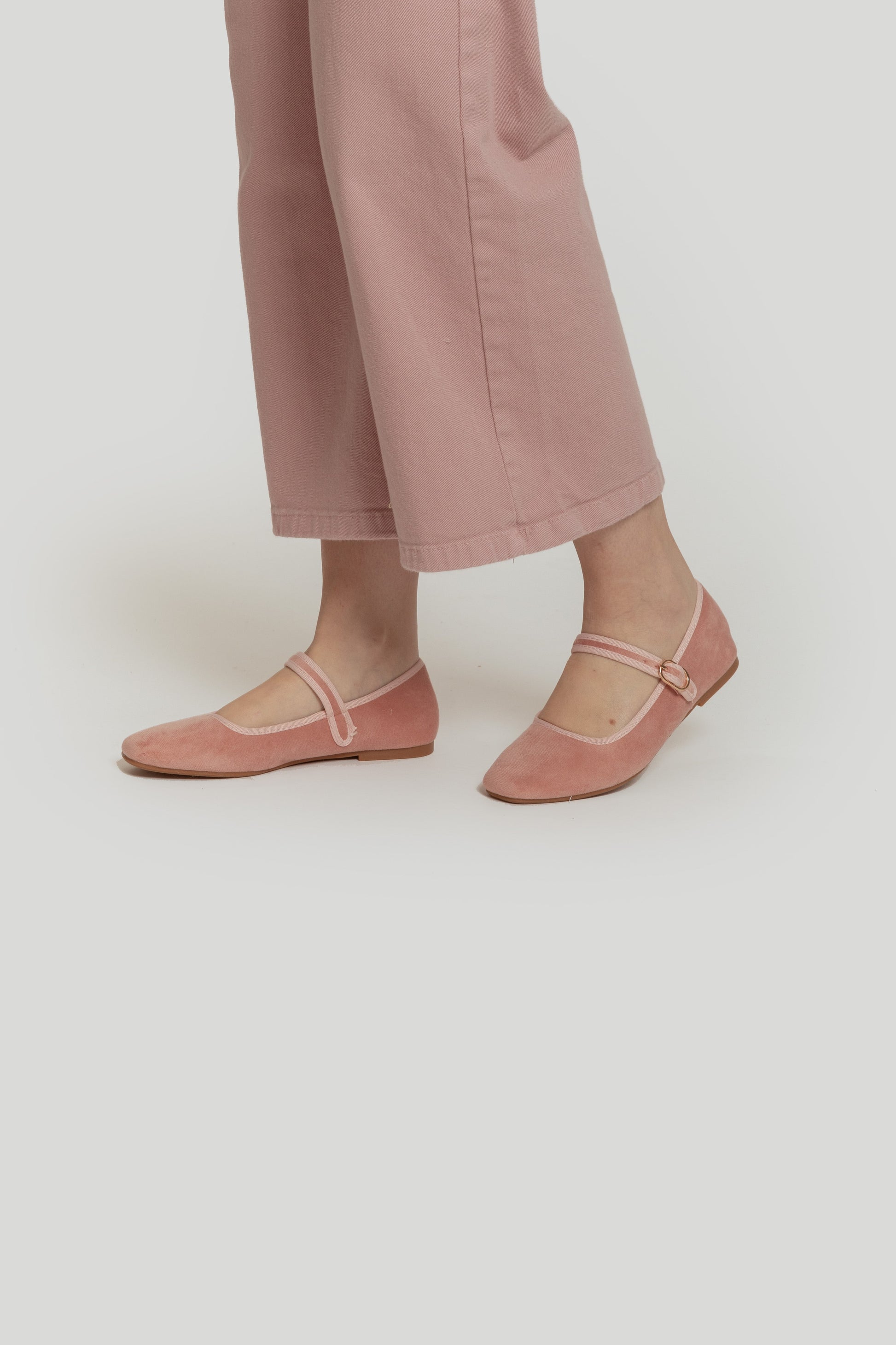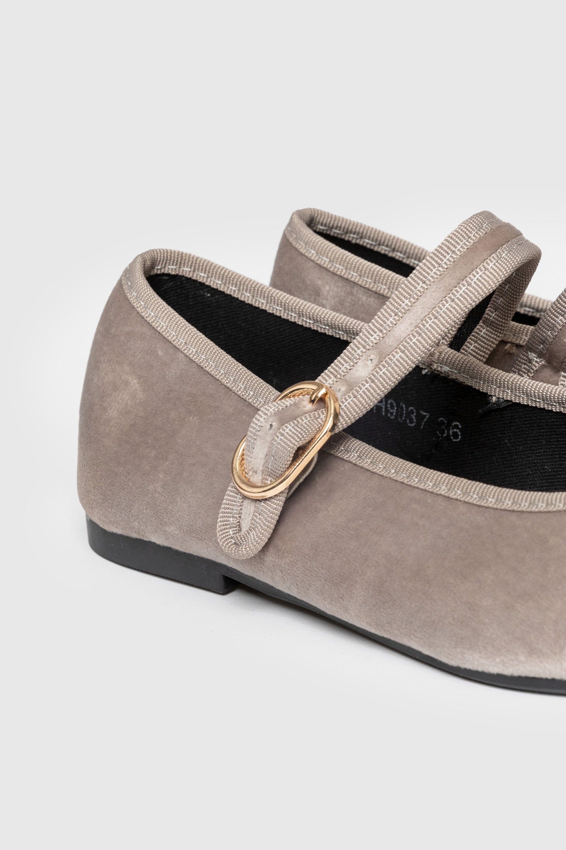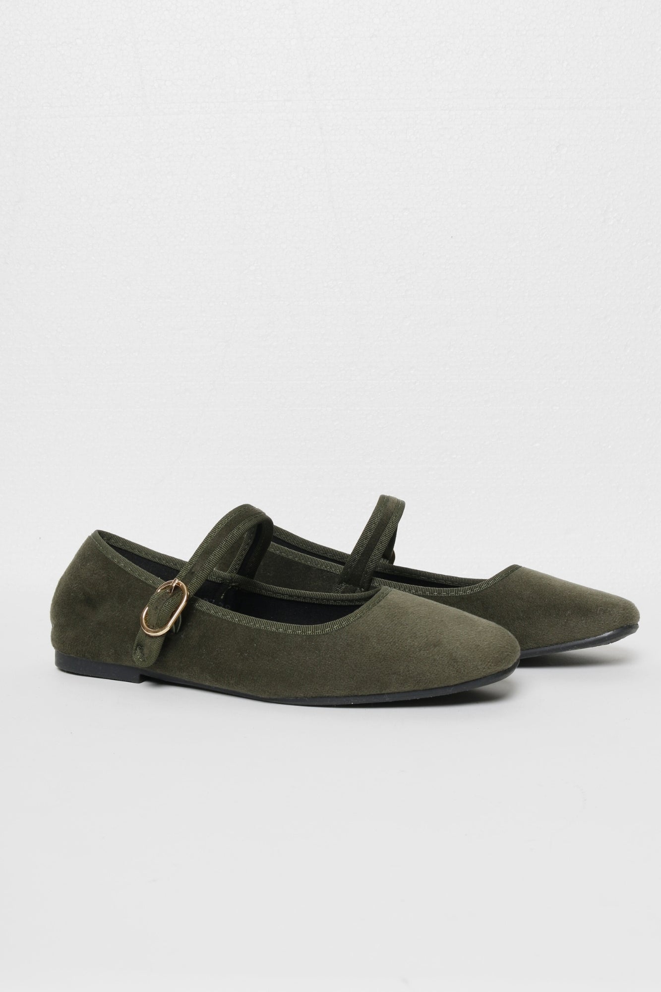 Zapato plano. Tejido terciopelo. Diseño bailarina. Punta cuadrada. Suela plana. Cierre mediante tira con hebilla. Suela de contacto antideslizante. Altura piso: 1.0 cm