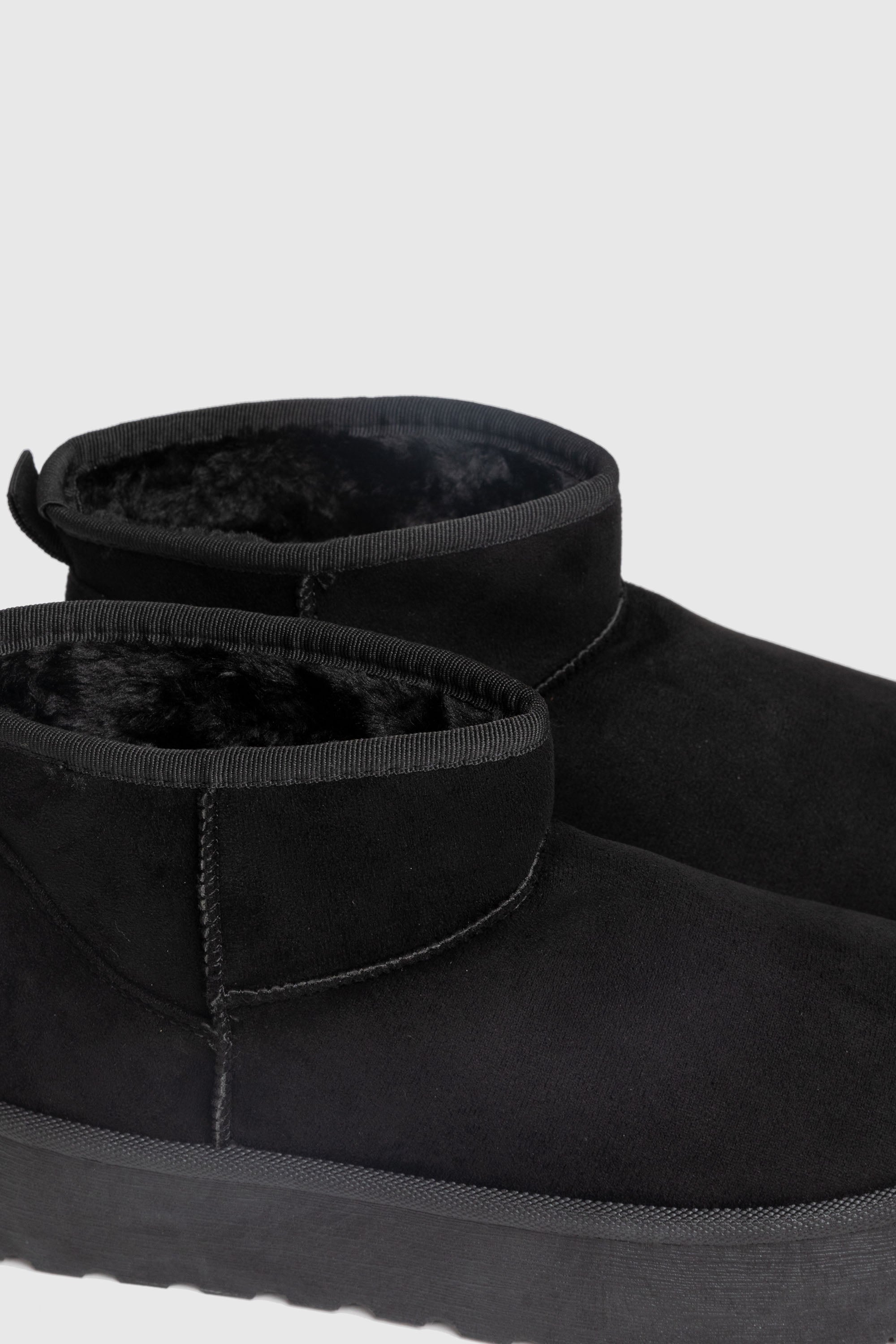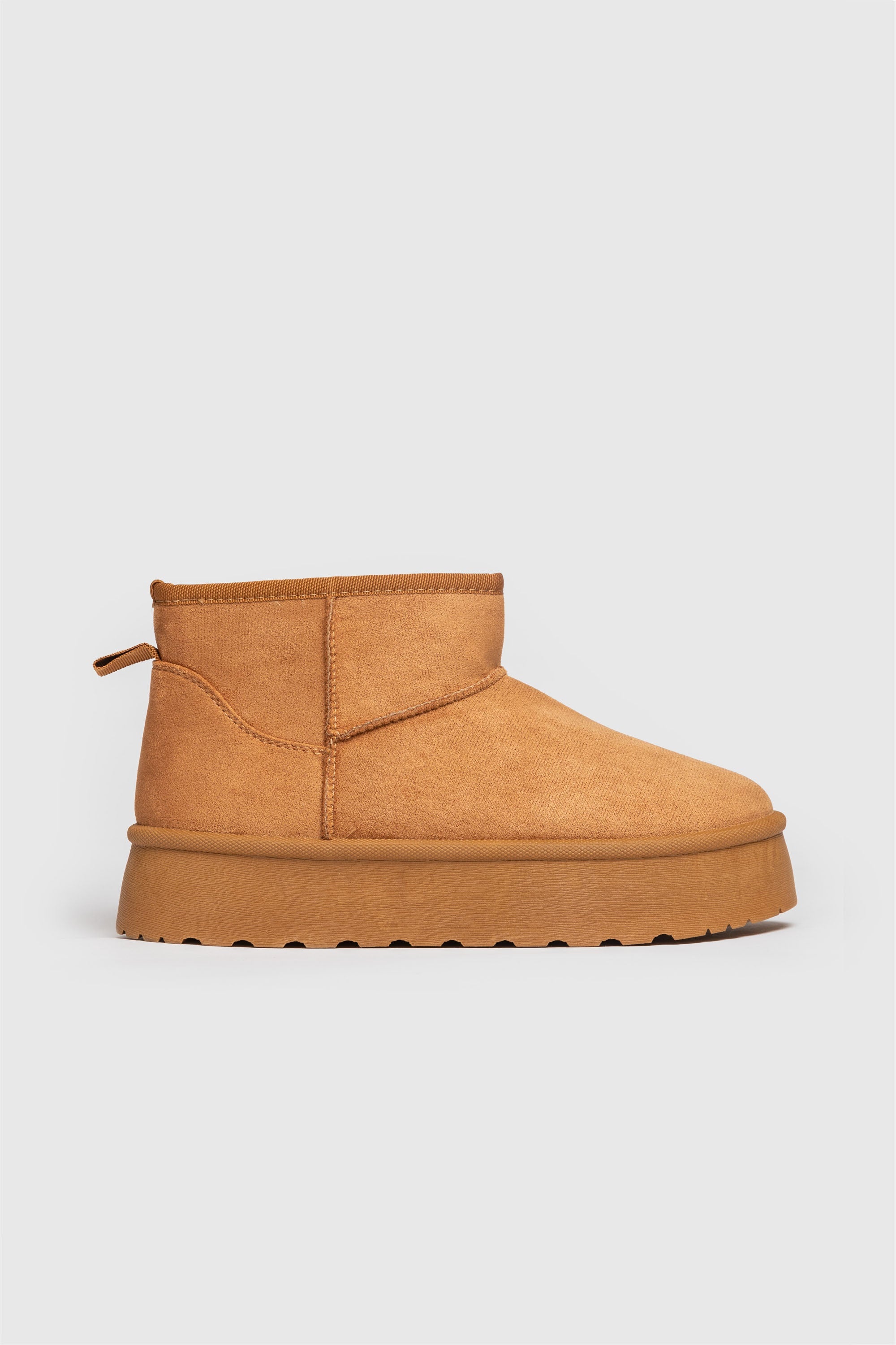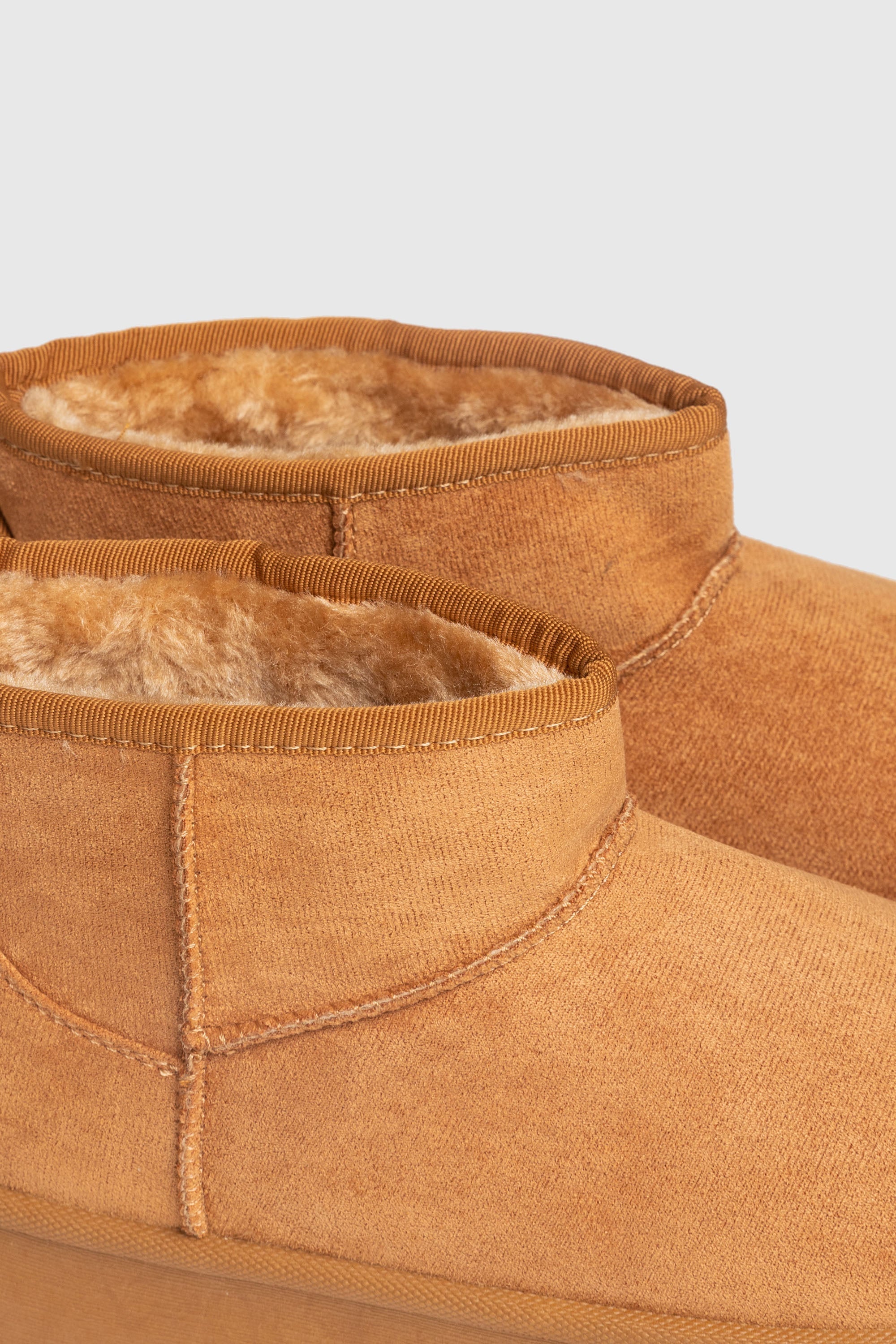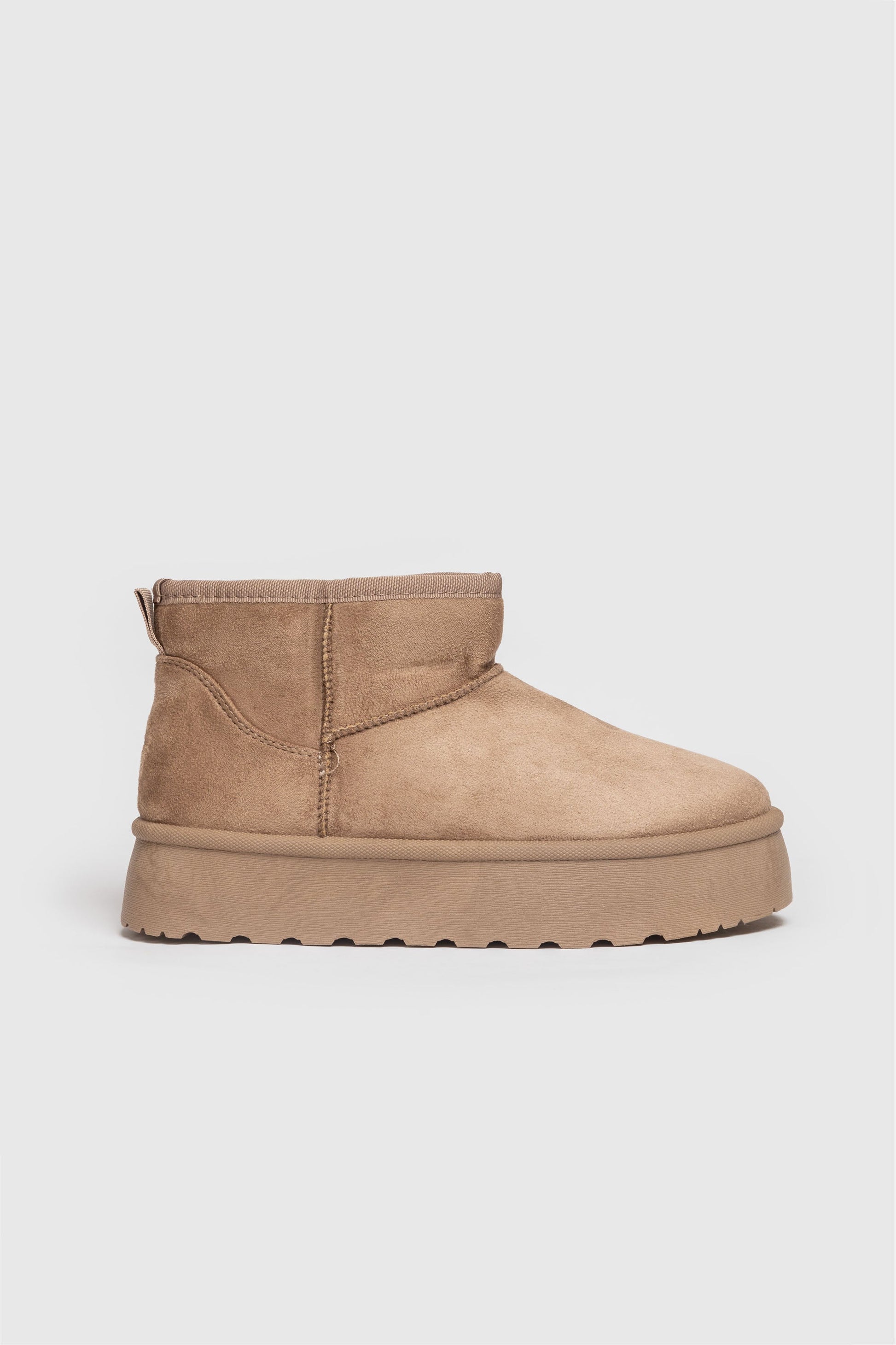 Zapato plano tipo botín. Tejido ante sintético. Punta redondeada. Suela tipo plataforma. Suela caucho. Detalles costuras. Interior forrado. Tirador trasero.