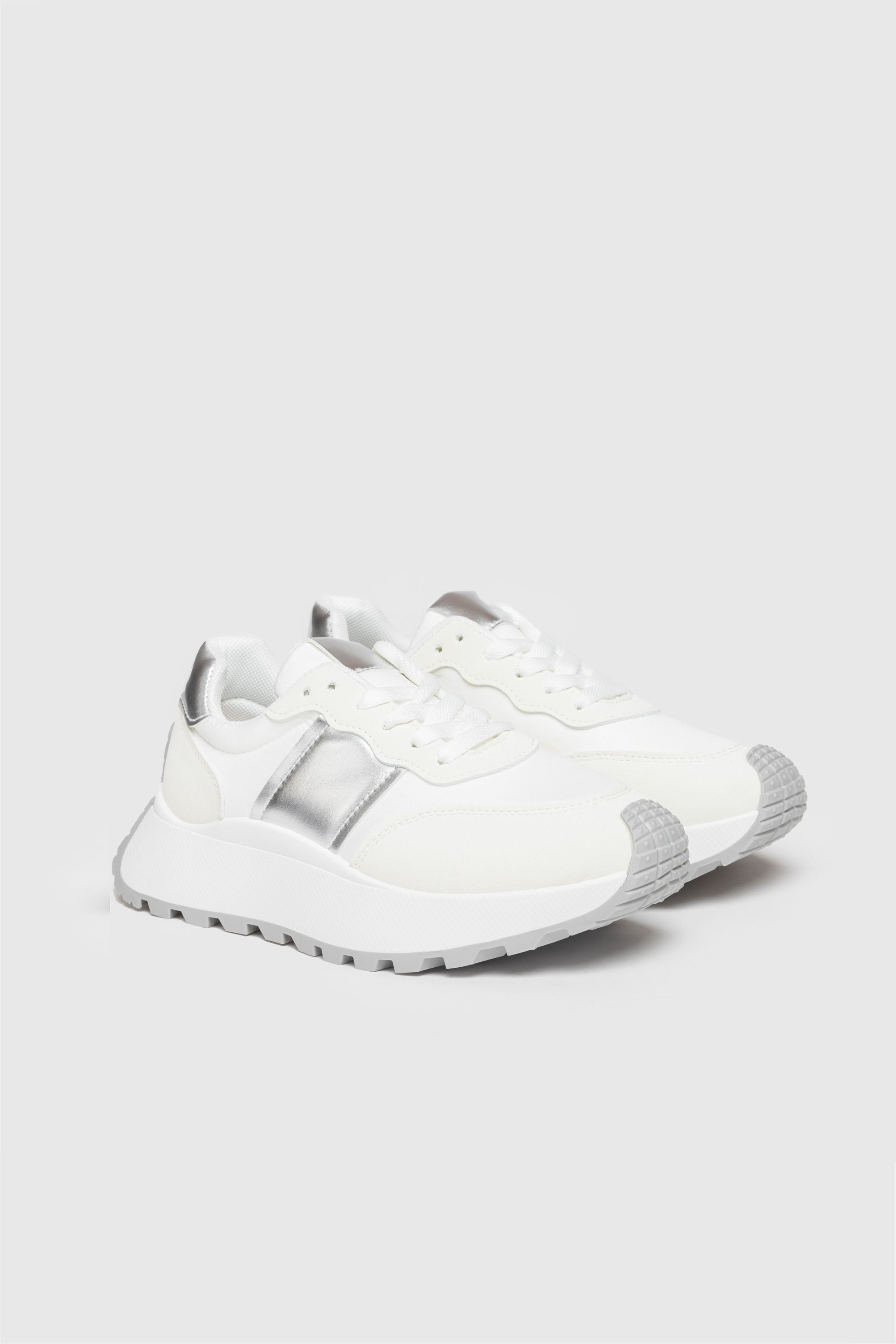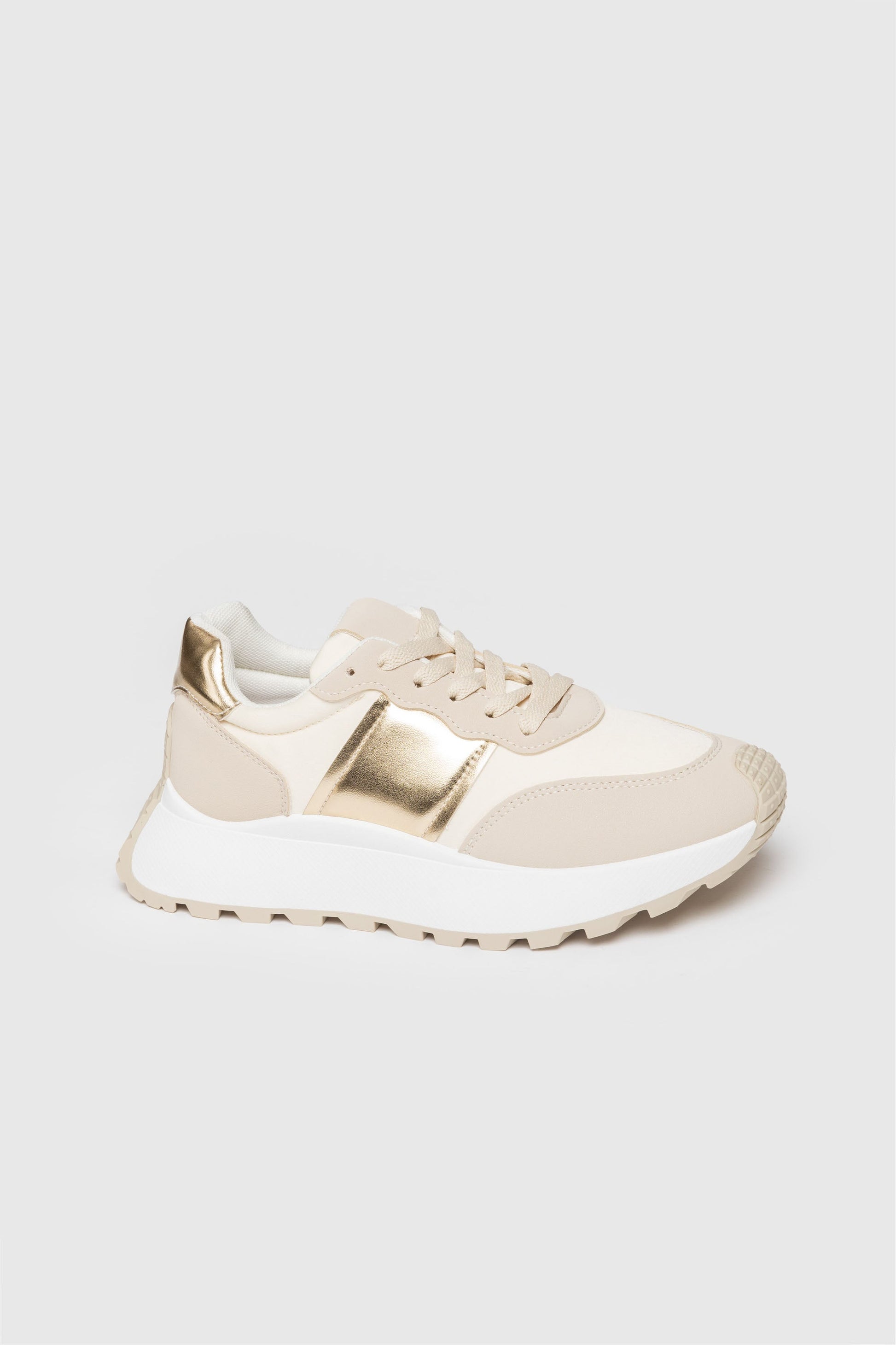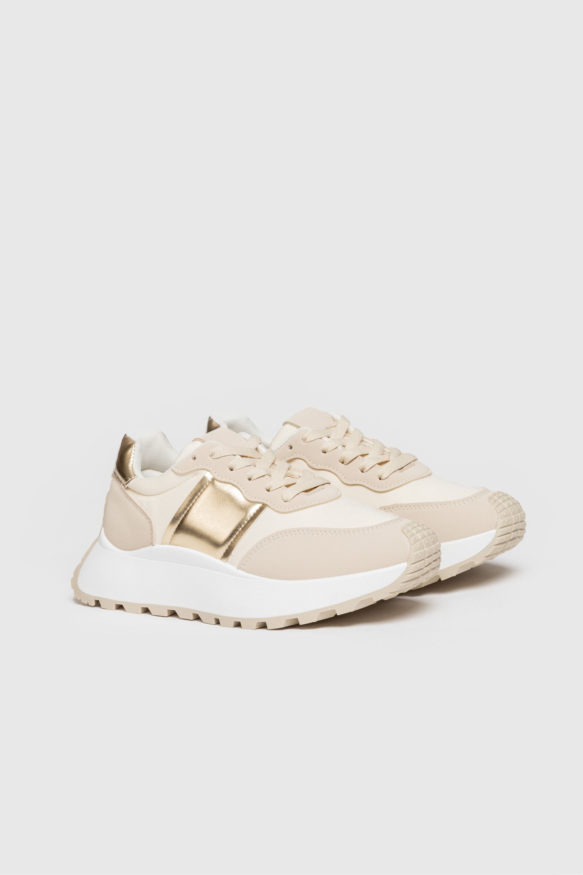 Zapato tipo deportiva. Tejido combinado. Diseño flat. Cierre de cordones. Suela track. Altura plataforma: 3.0 cm.