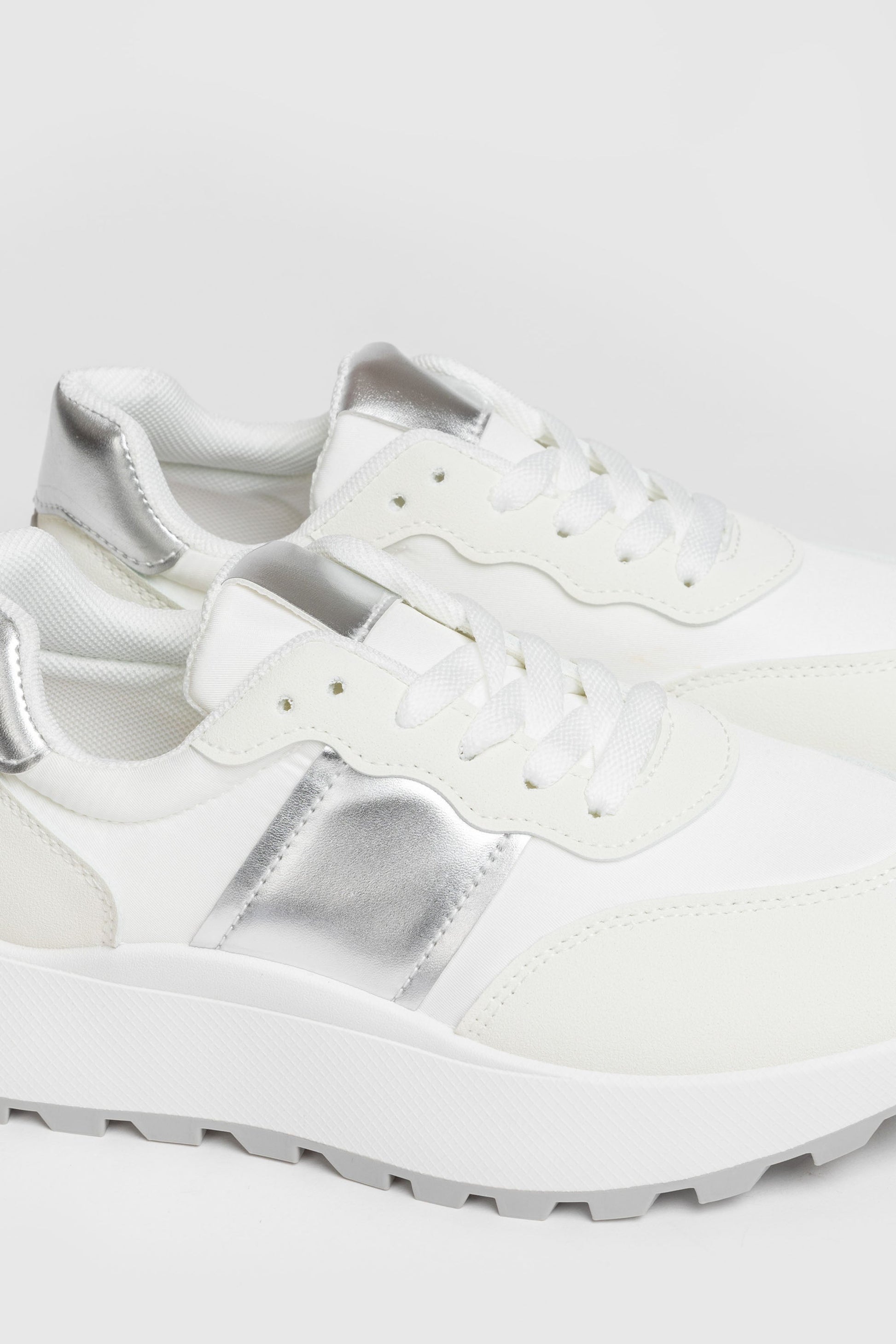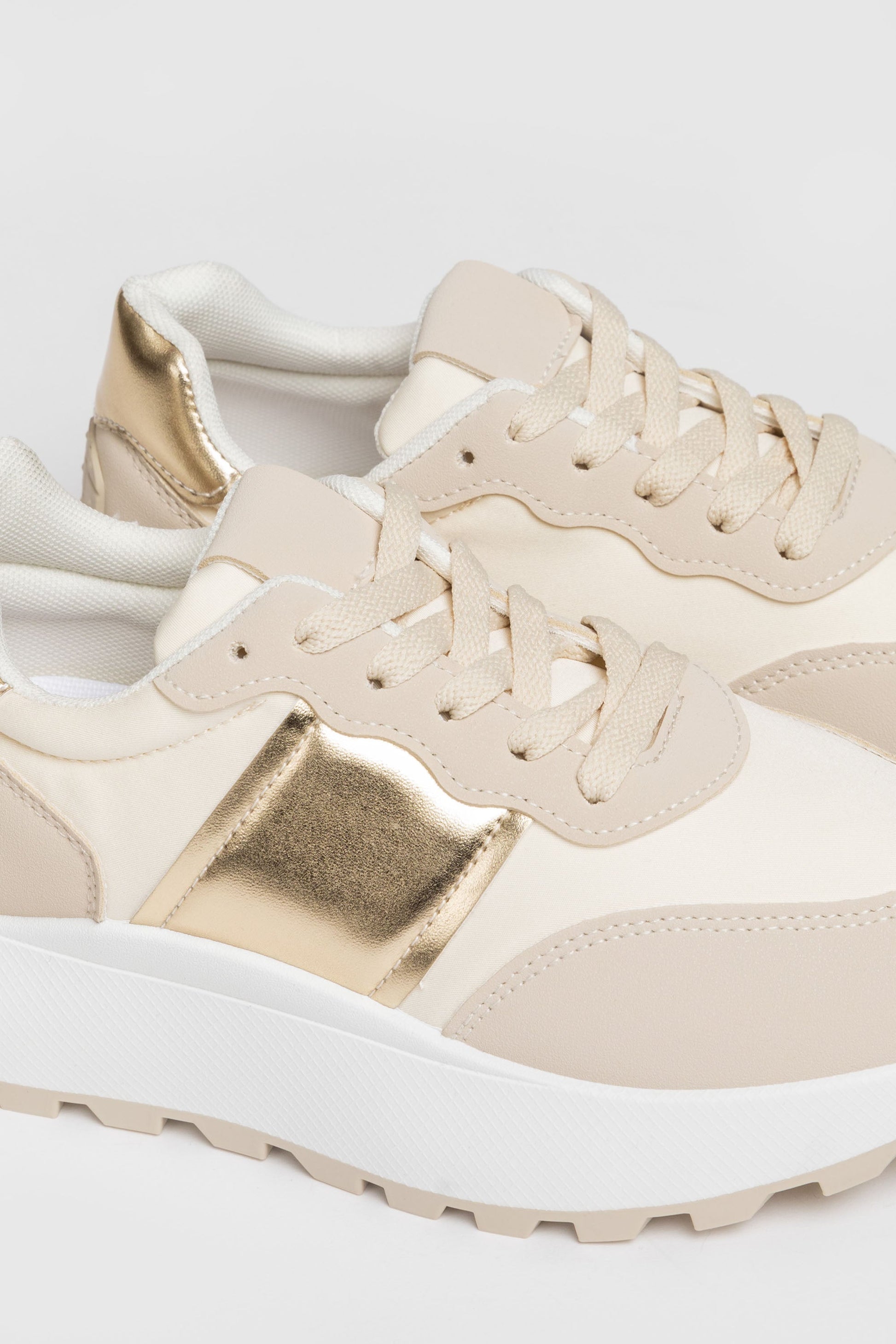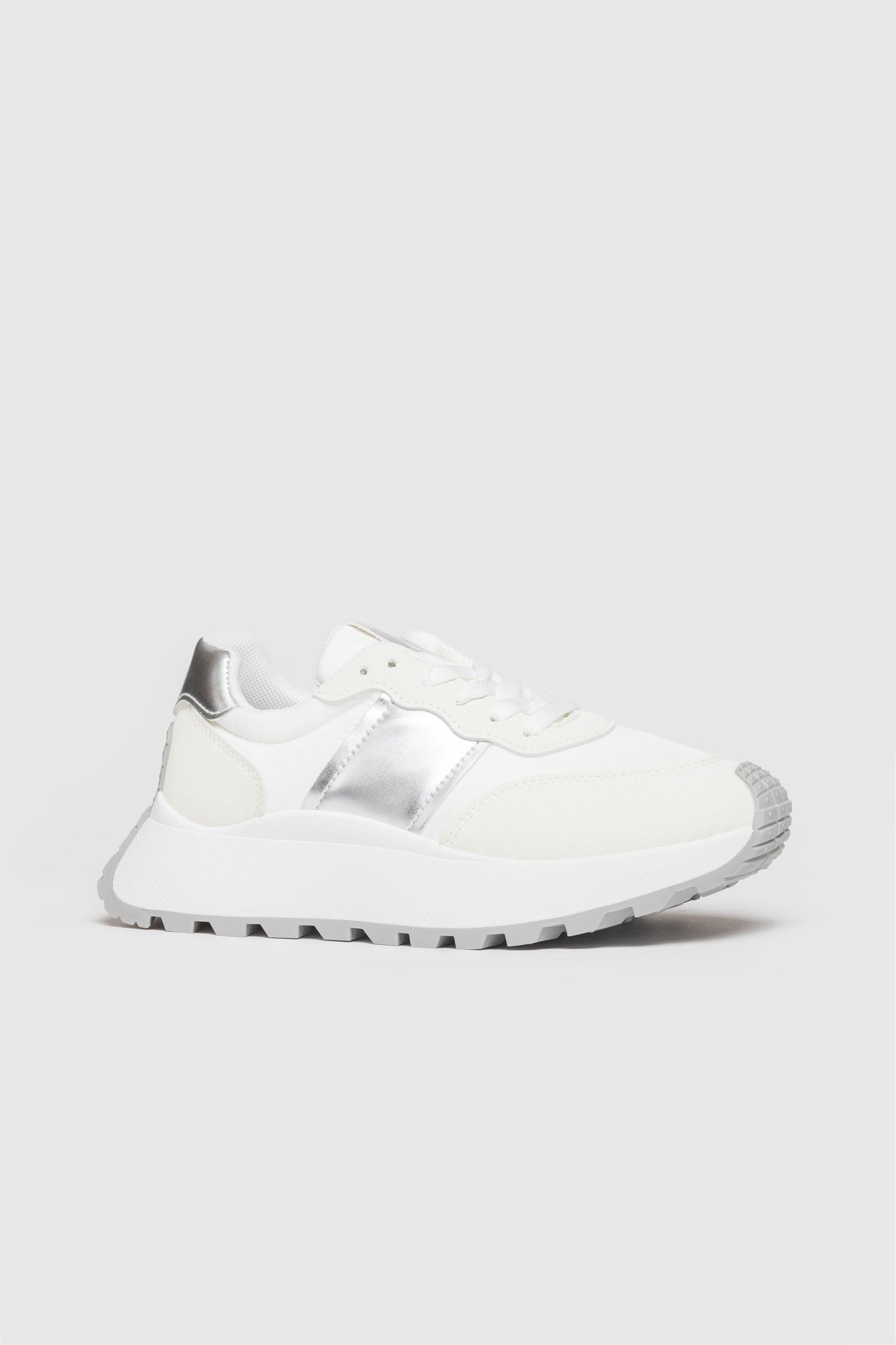 Zapato tipo deportiva. Tejido combinado. Diseño flat. Cierre de cordones. Suela track. Altura plataforma: 3.0 cm.