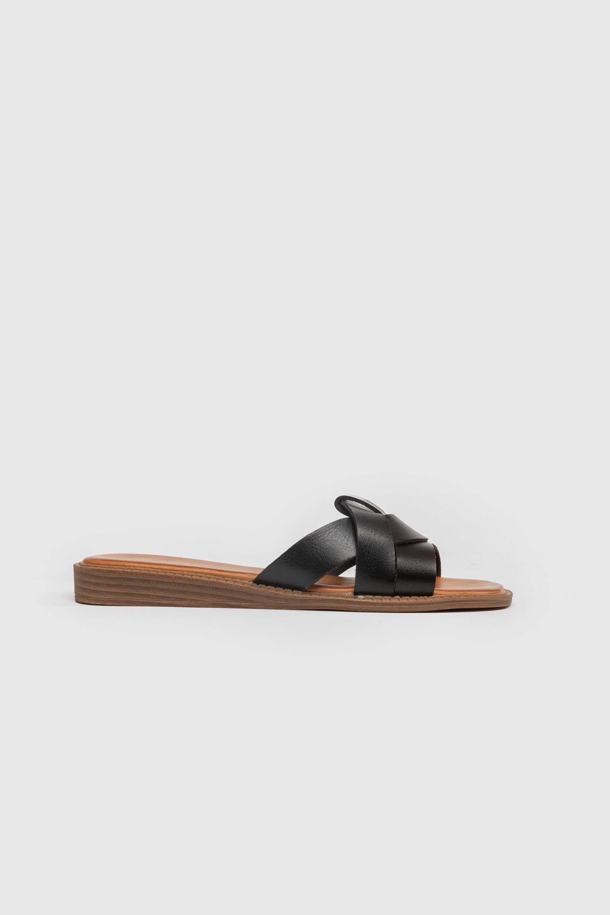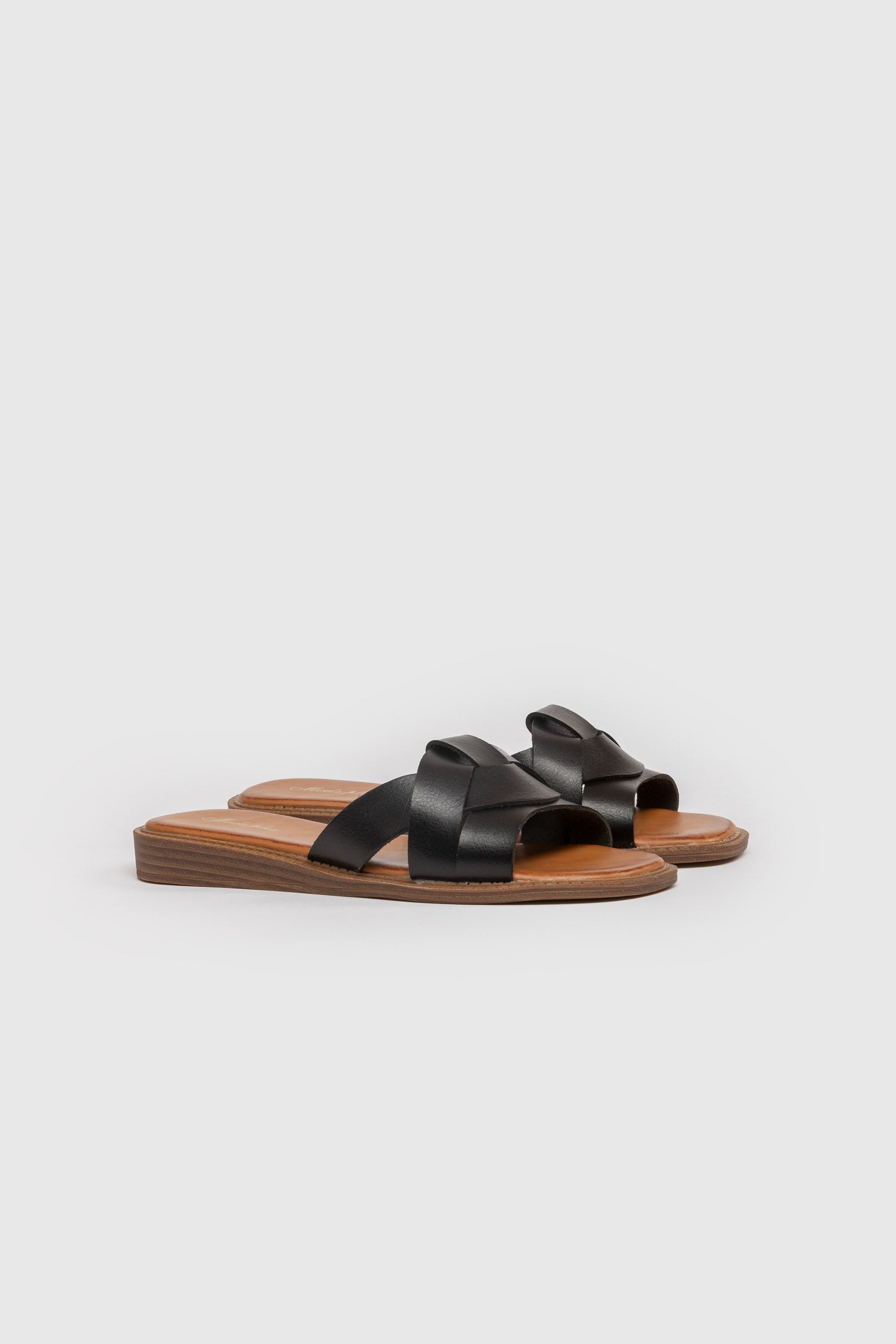 Zapato tipo sandalias. Diseño pala. Polipiel. Diseño de tiras. Destalonas. Suela caucho. Suela plana y antideslizante.