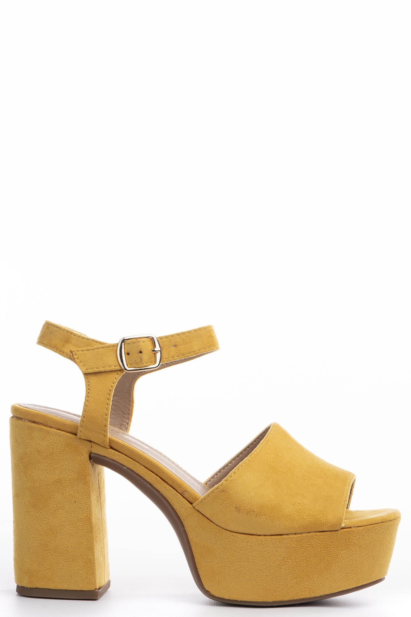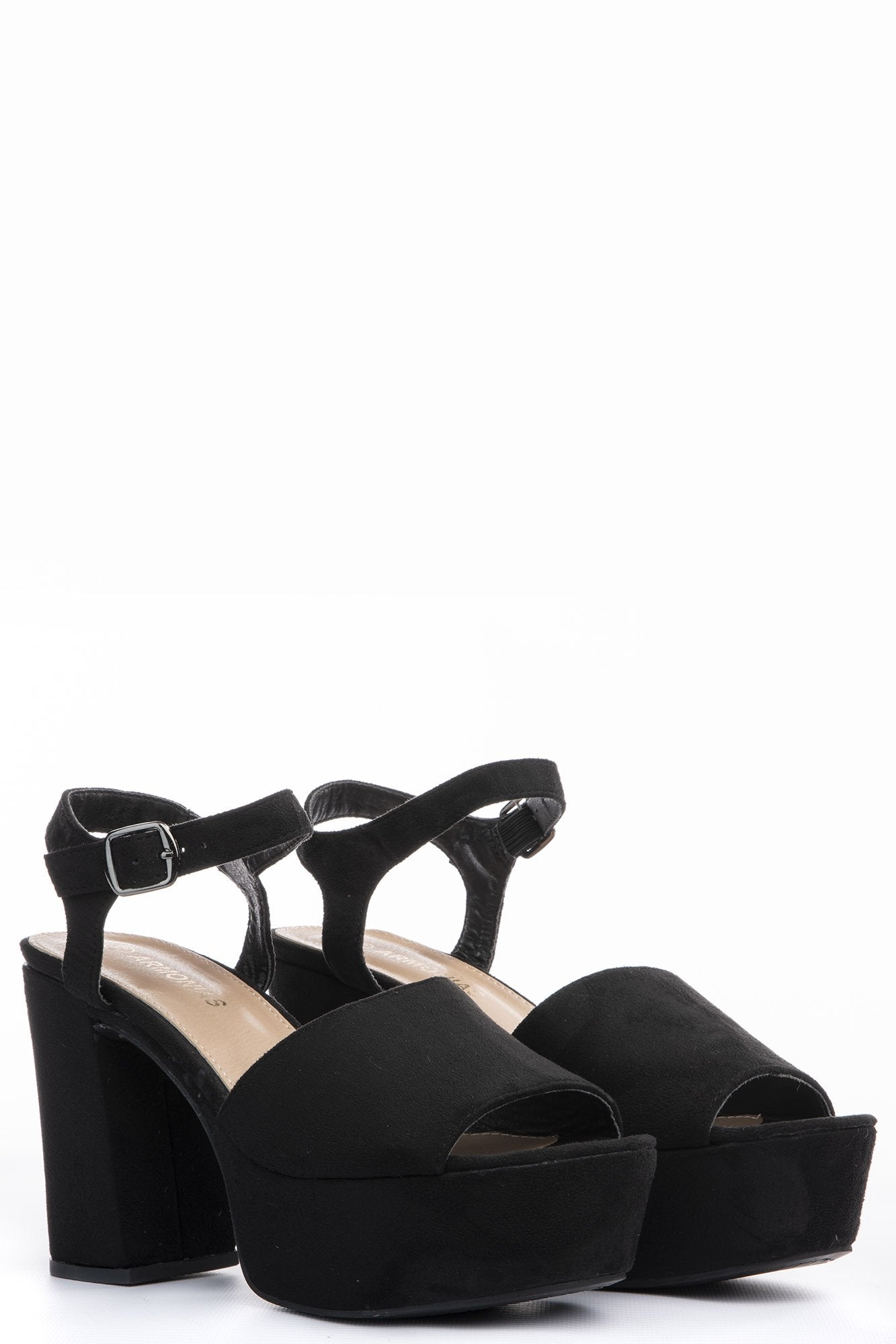 Sandalia de tacón bloque, tirante ancho, cierre ajustable y tacón revestido, forro y plantillas en piel sintética. Altura plataforma 5 cm. Altura tacón 12 cm.