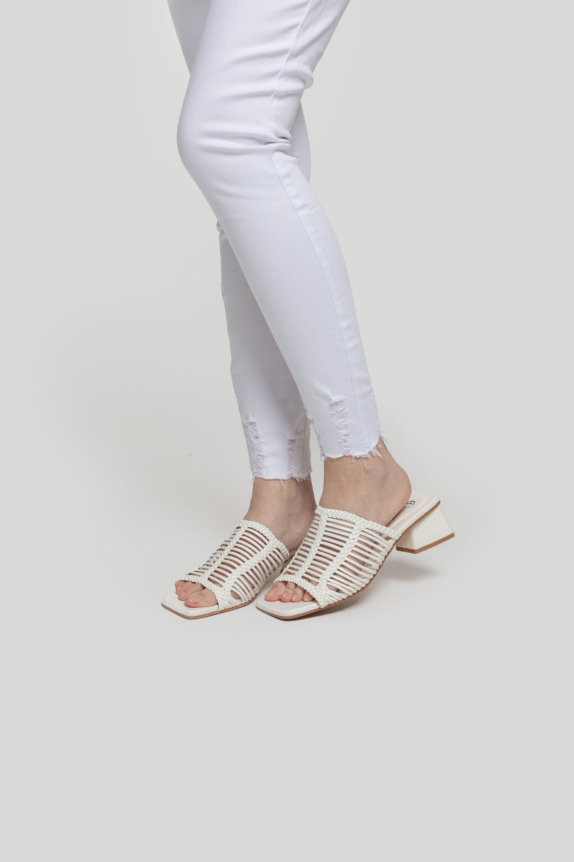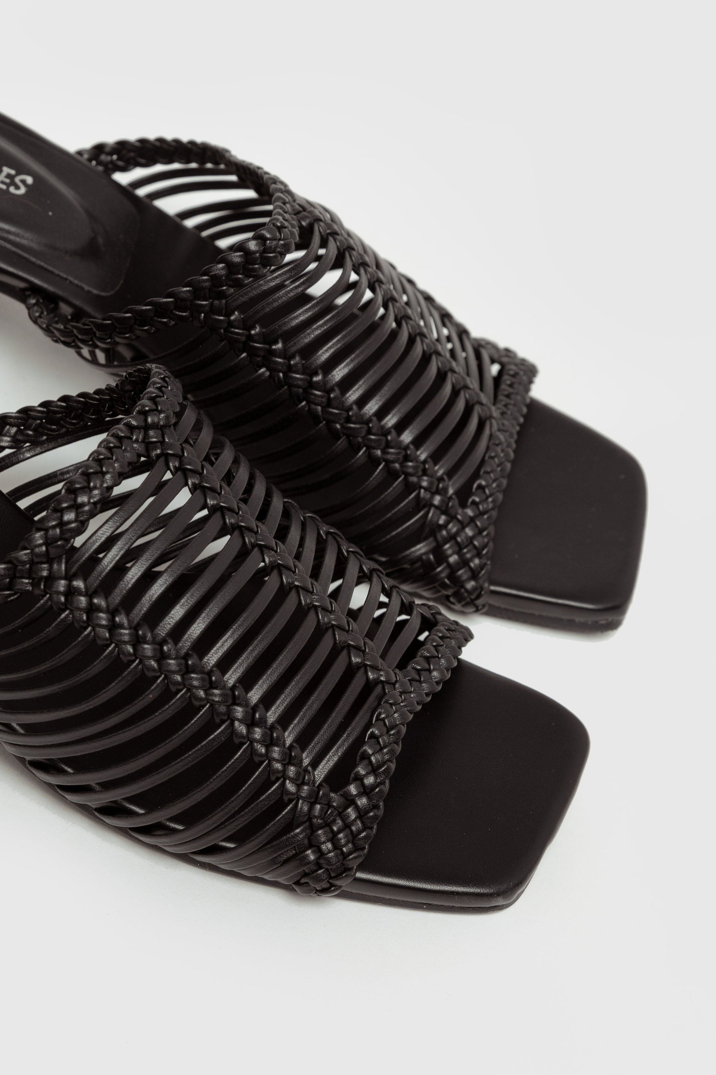 Sandalia de tacón. Tejido piel sintética. Punta cuadrada. Diseño destalonado. Diseño multi-tiras. Tacón bloque. Altura tacón: 4.5 cm Selecciona tu talla habitual.