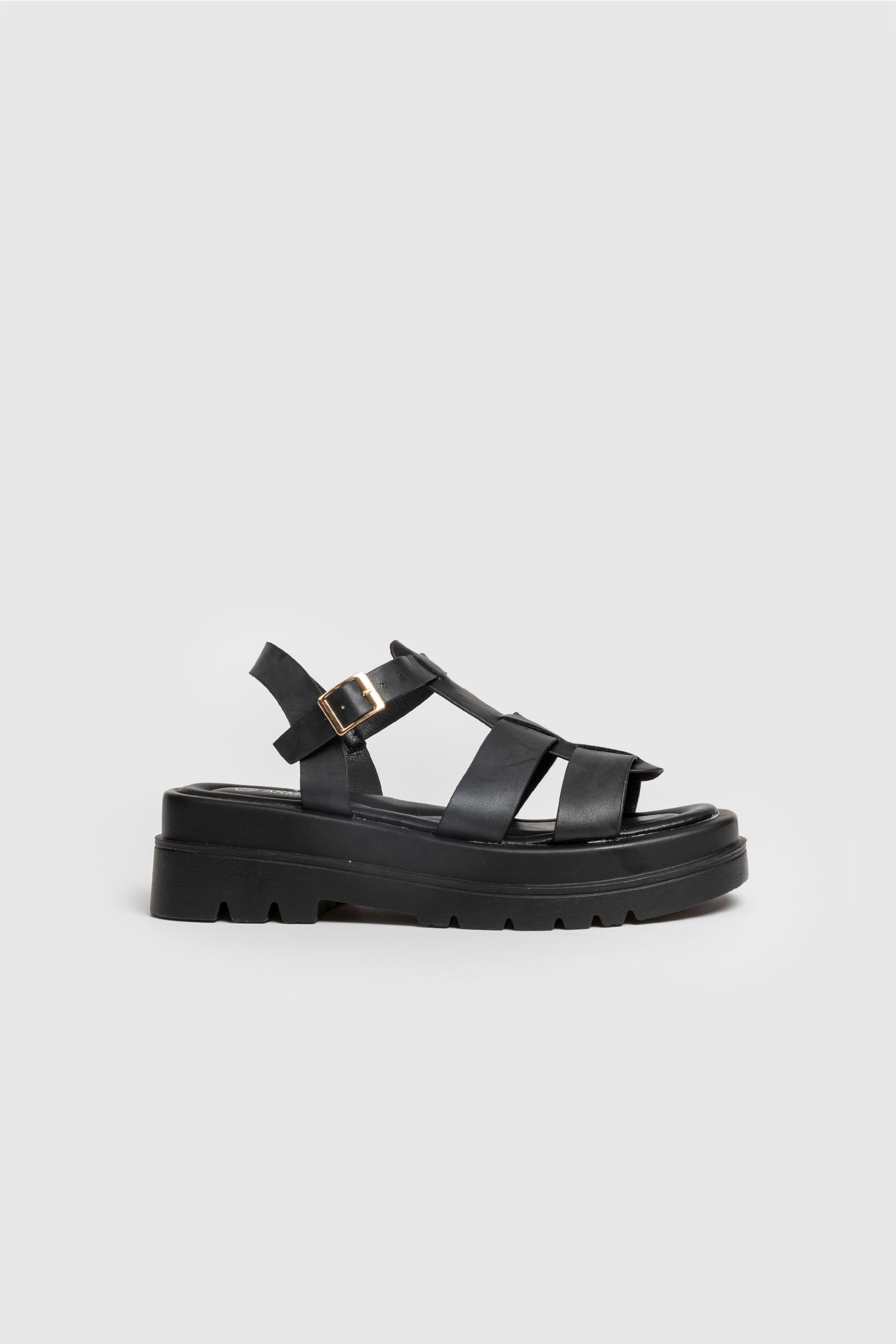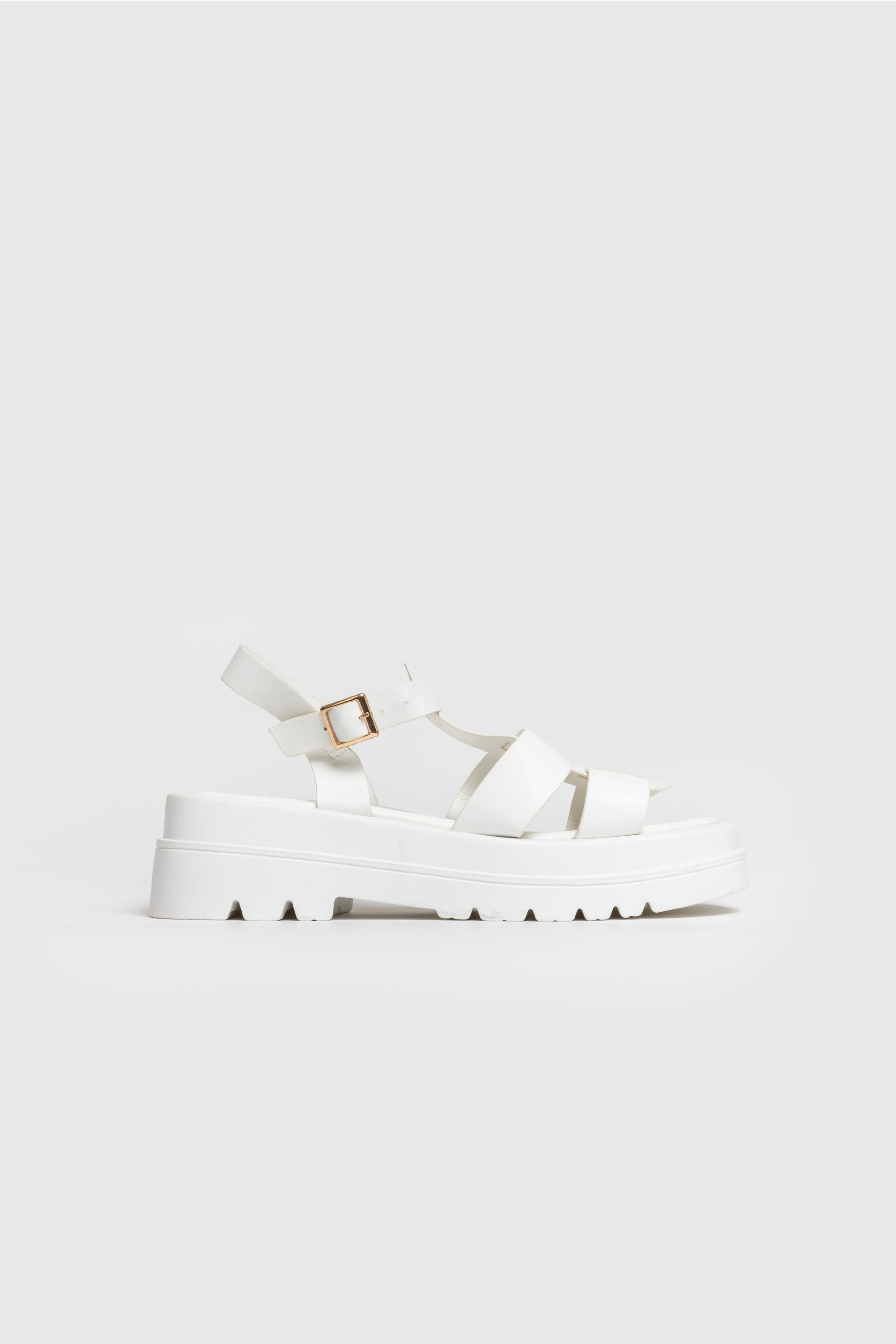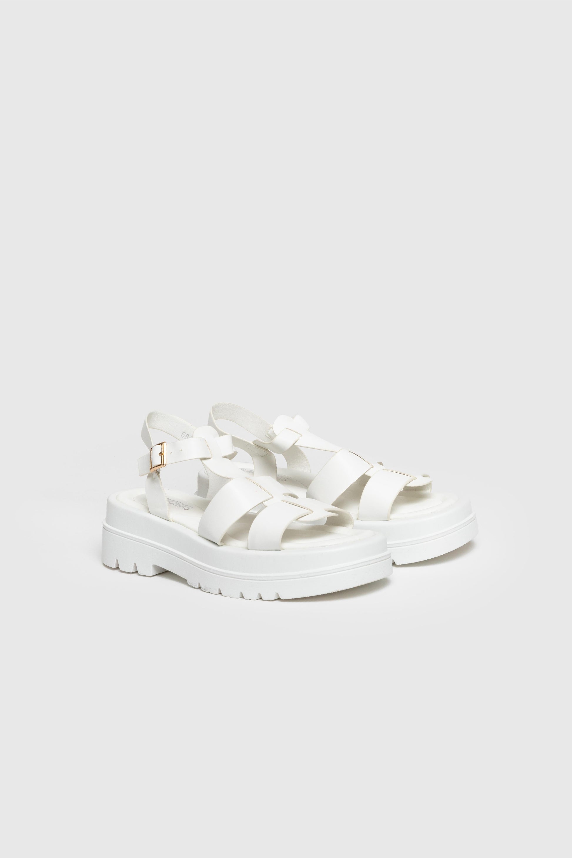 Diseño cangrejeras. Diseño tirantes. Punta redondeada, Suela gruesa. Cierre de hebilla atado al tobillo. Plantilla sintética. Suela antideslizante. . Altura plataforma 5.00 cm.