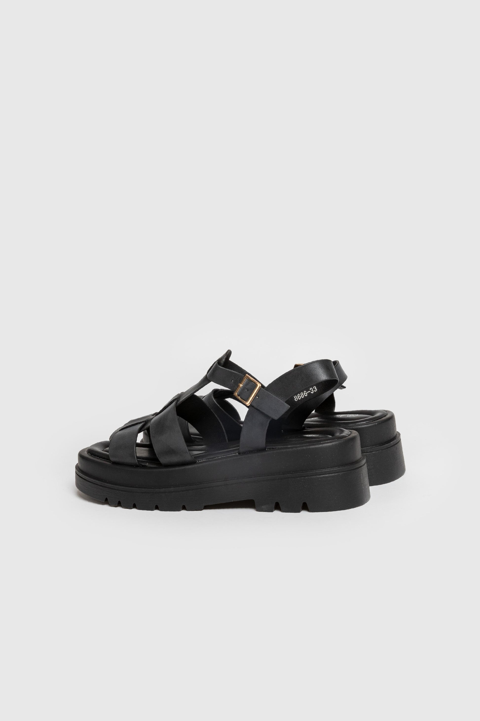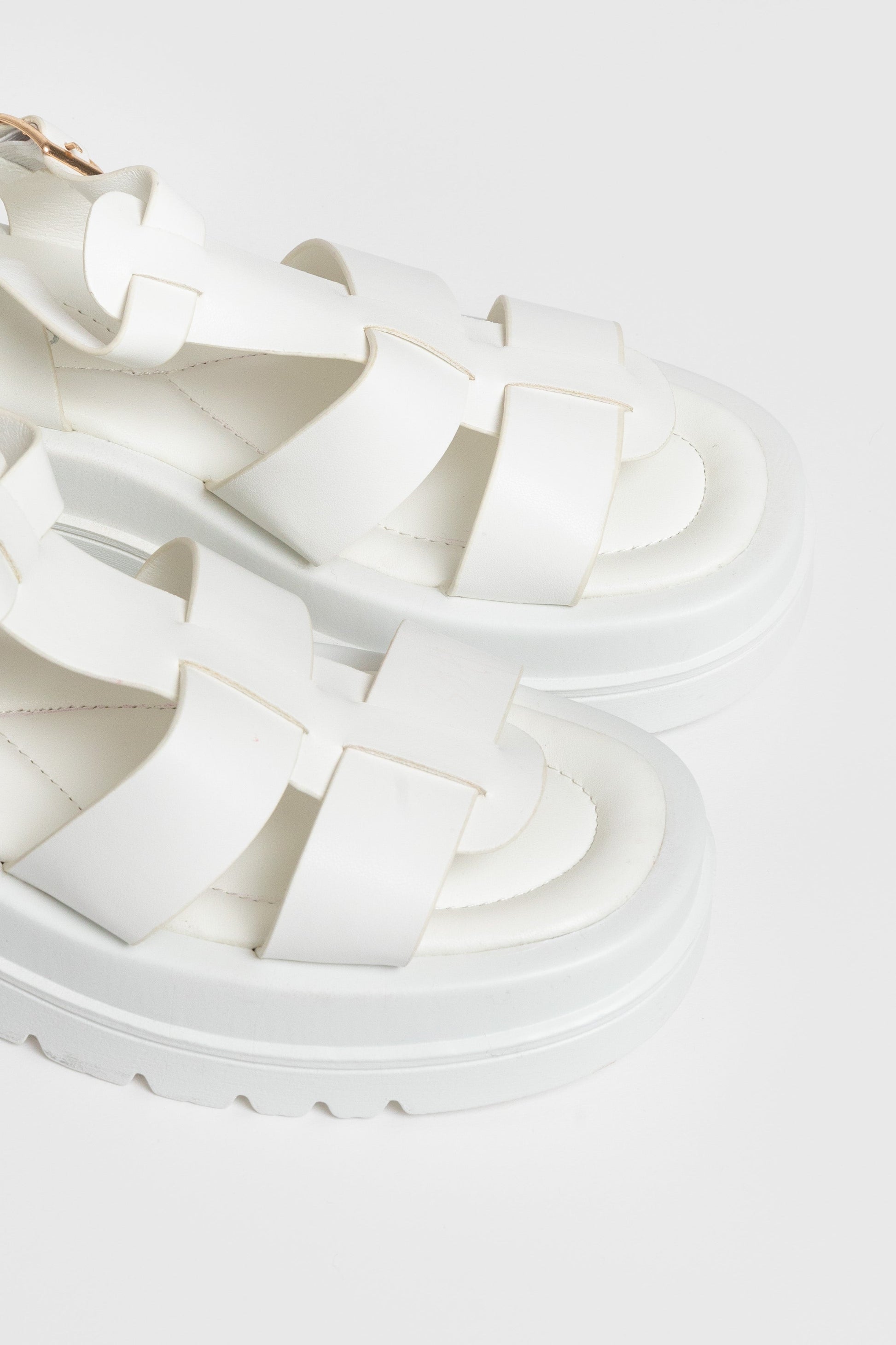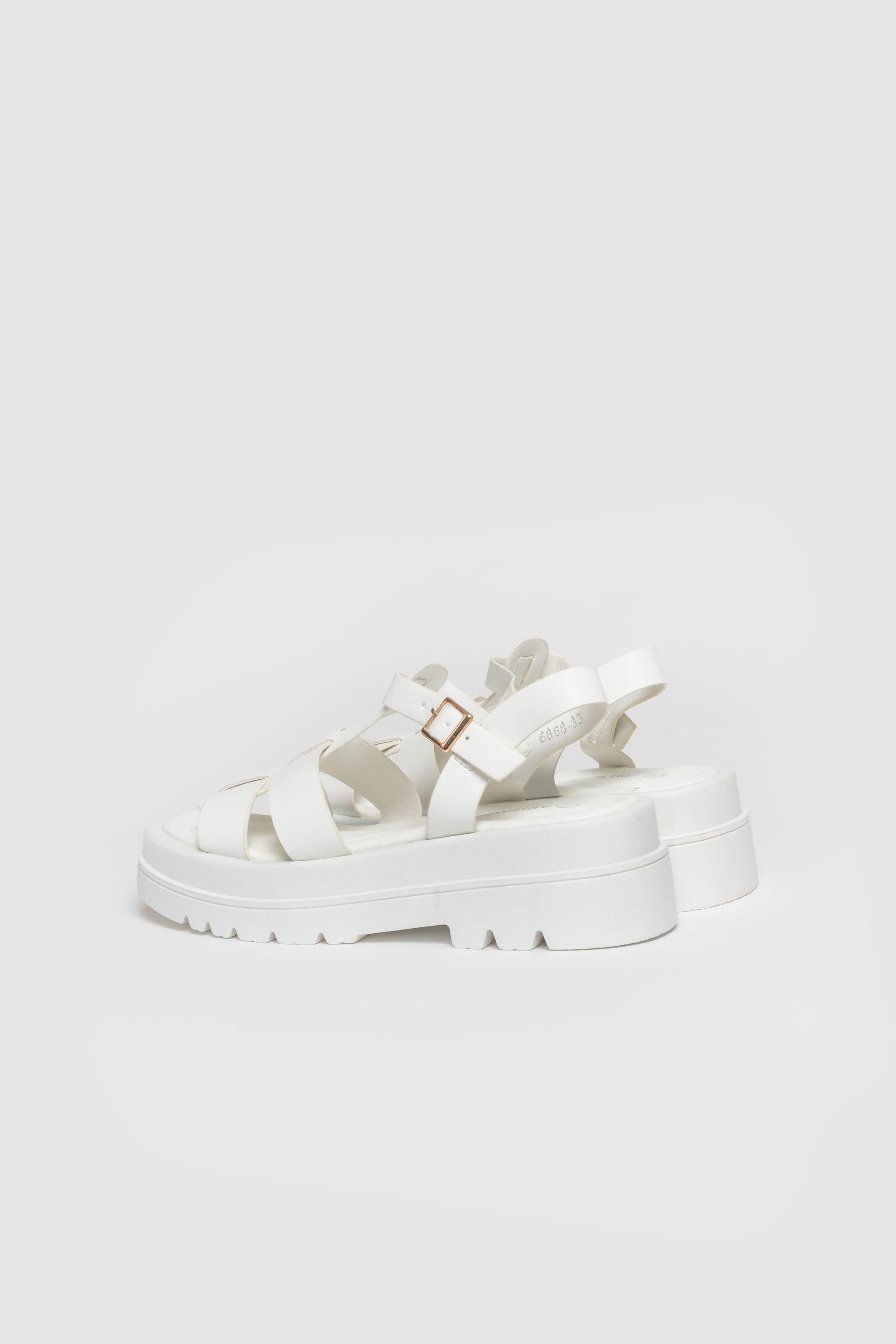 Diseño cangrejeras. Diseño tirantes. Punta redondeada, Suela gruesa. Cierre de hebilla atado al tobillo. Plantilla sintética. Suela antideslizante. . Altura plataforma 5.00 cm.