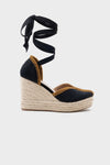 Sandalia tipo sandalia. Punta redondeada. Cuña. Suela de esparto. Tira en el tobillo. Cierre de cordón. Suela de contacto antideslizante.