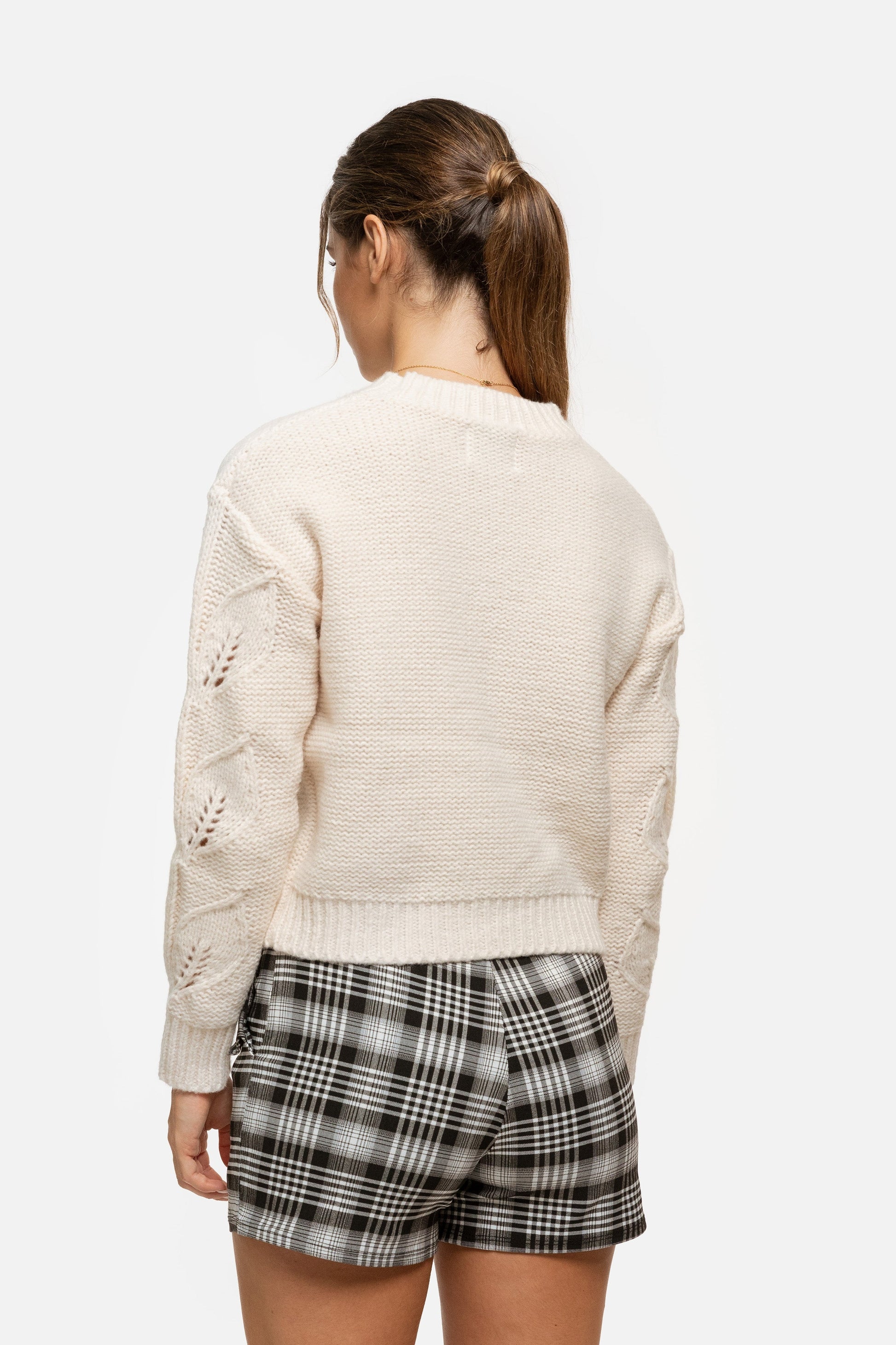 Shorts estampado pata de gallo, tiro medio, bolsillos laterales con solapa y botón joya decorativo. Tejido elástico. Cintura elástica. Cinturón con lazada. Largo: 38 cm. Talla modelo: S. Altura modelo: 1,76 m.