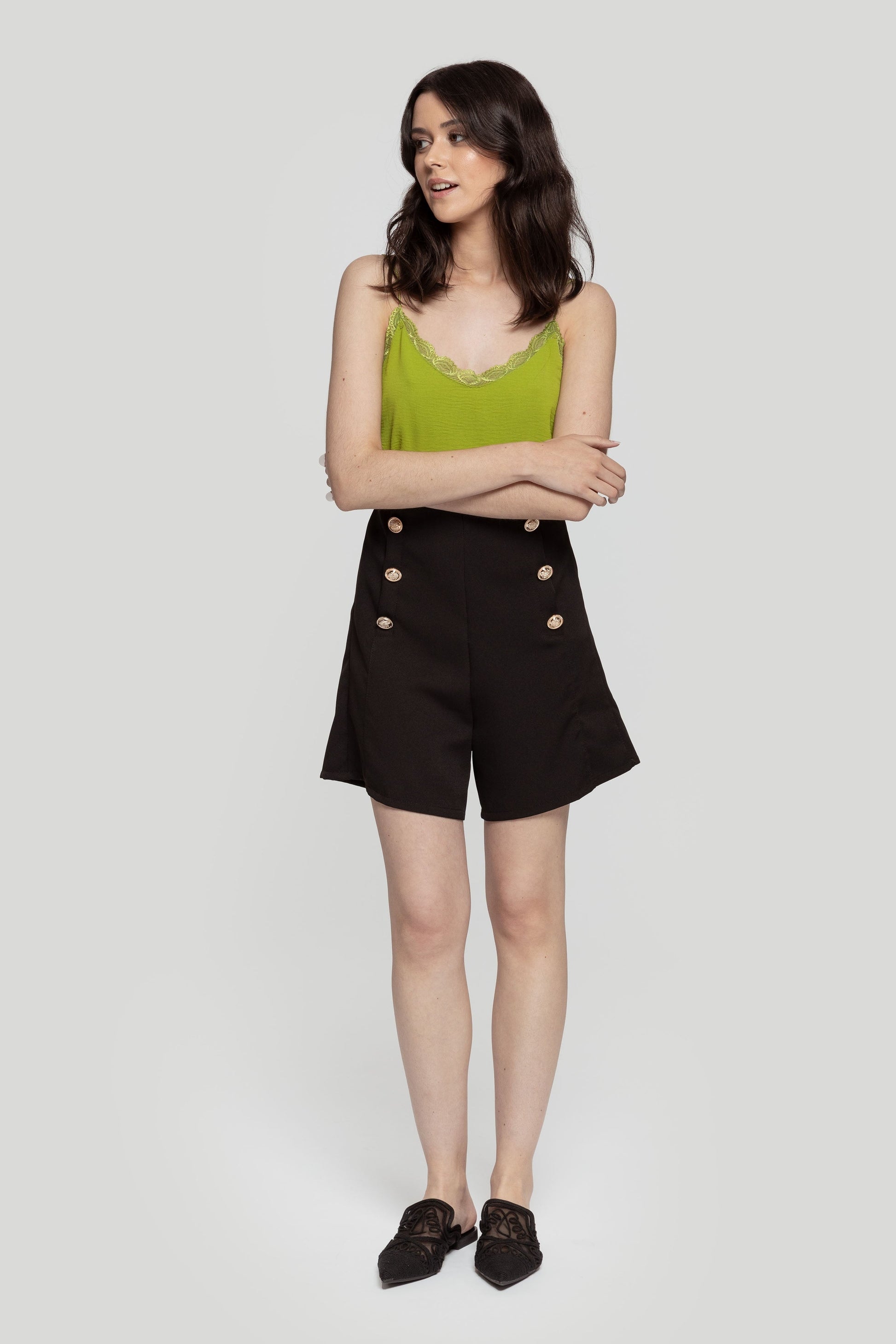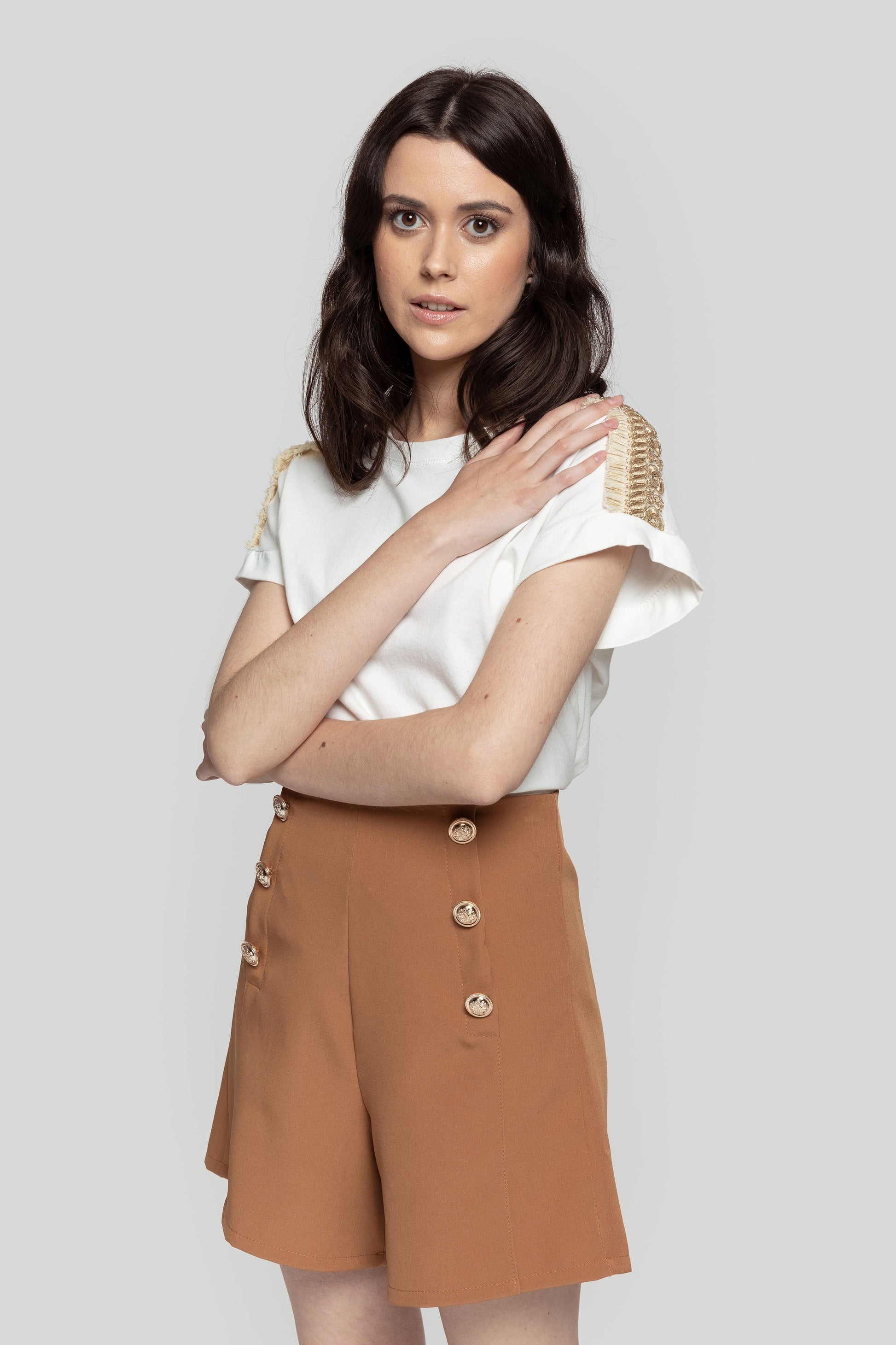 Shorts de vestir. Diseño corto. Estilo traje. Tiro medio. Cierre oculto de cremallera. Detalle pinzas. Botones decorativos. Talla modelo: S. Altura modelo: 1,67 m.