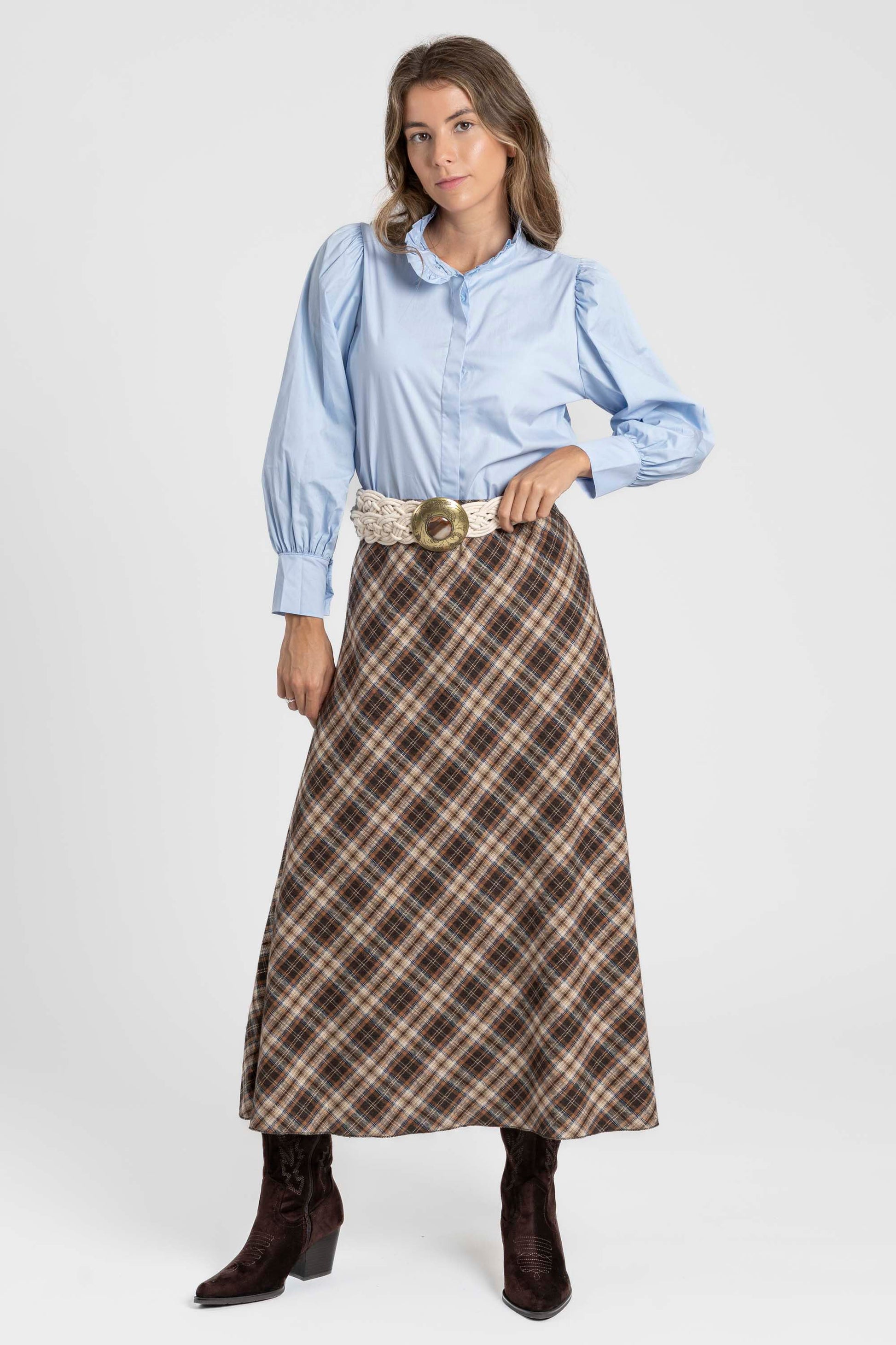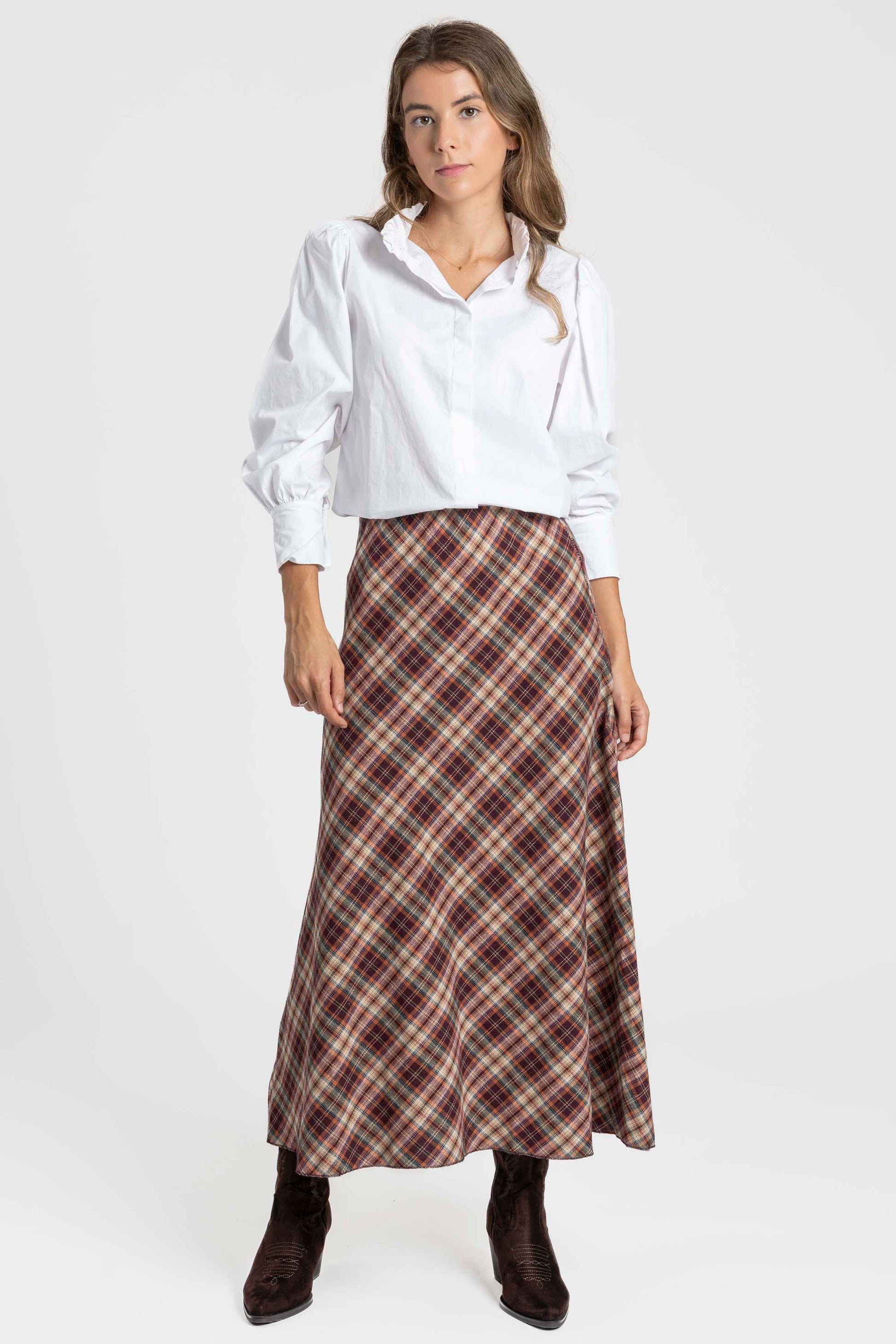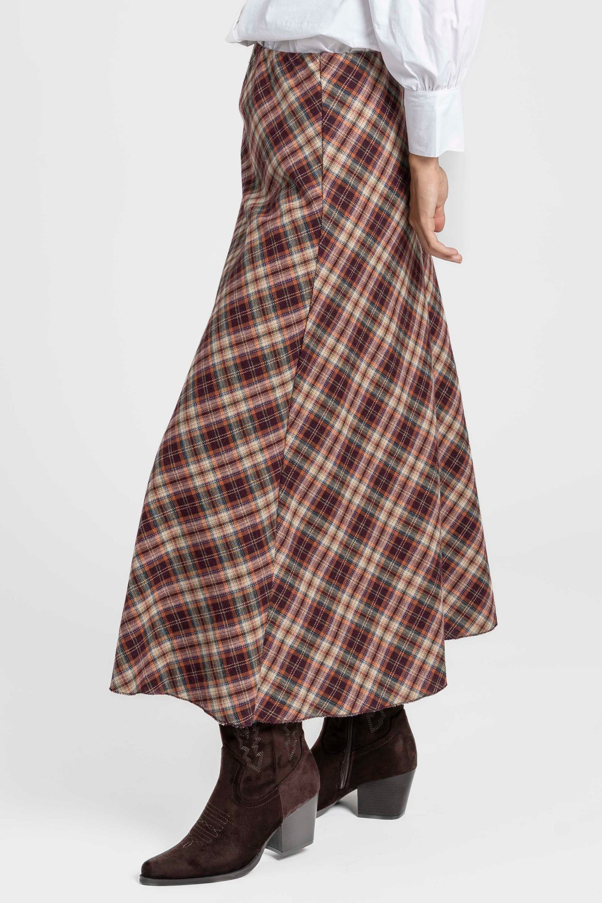 Tejido mezcla de algodón. Diseño cuadros. Diseño midi. Cintura elástica.