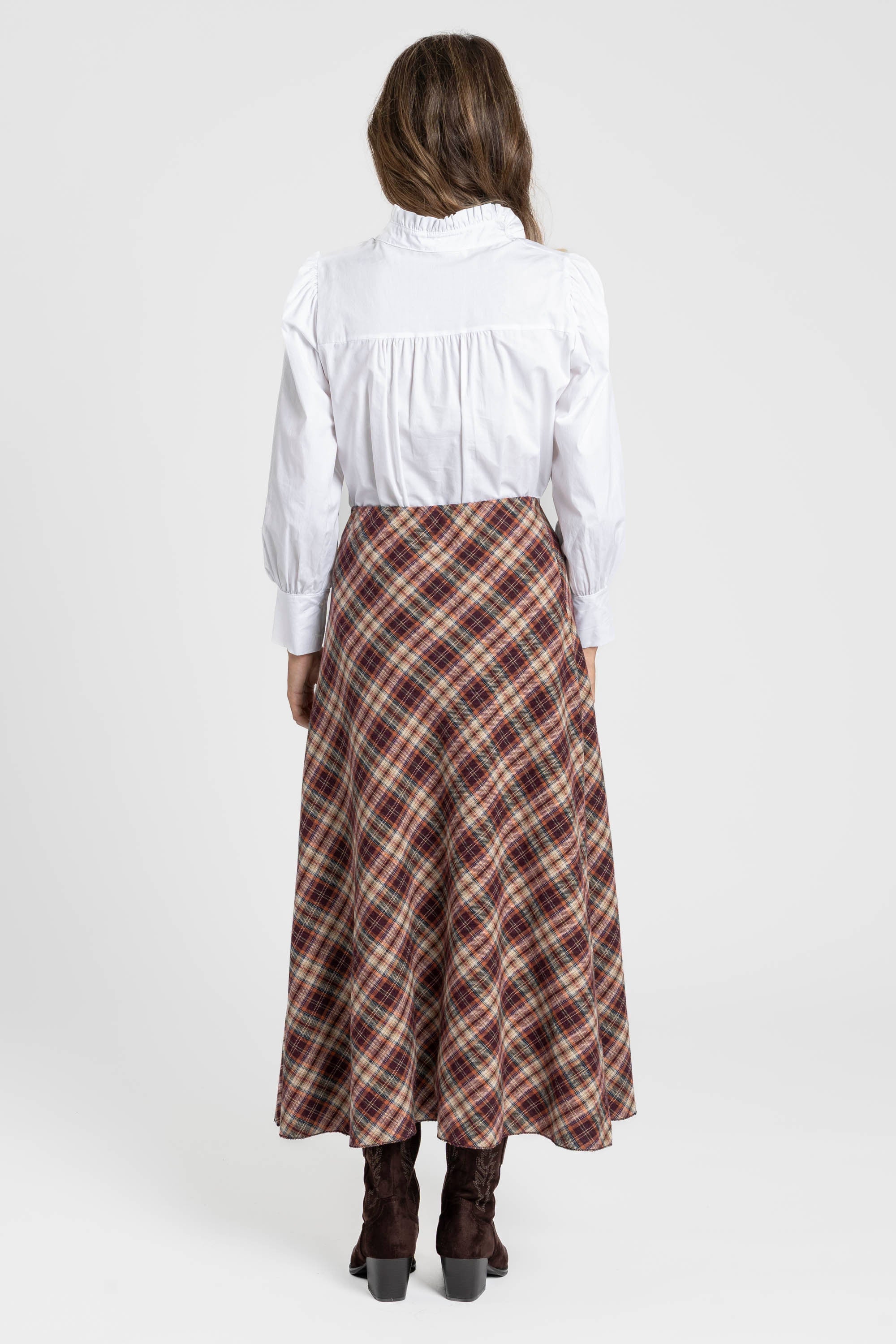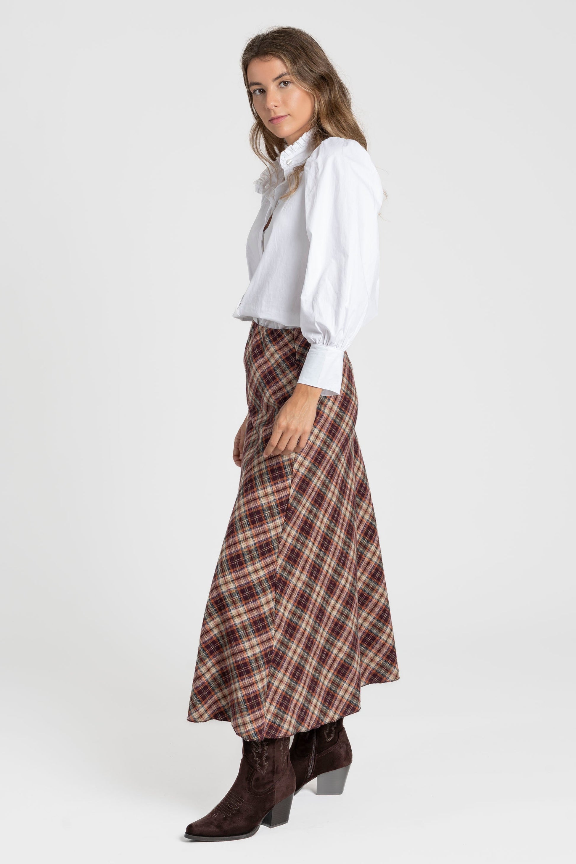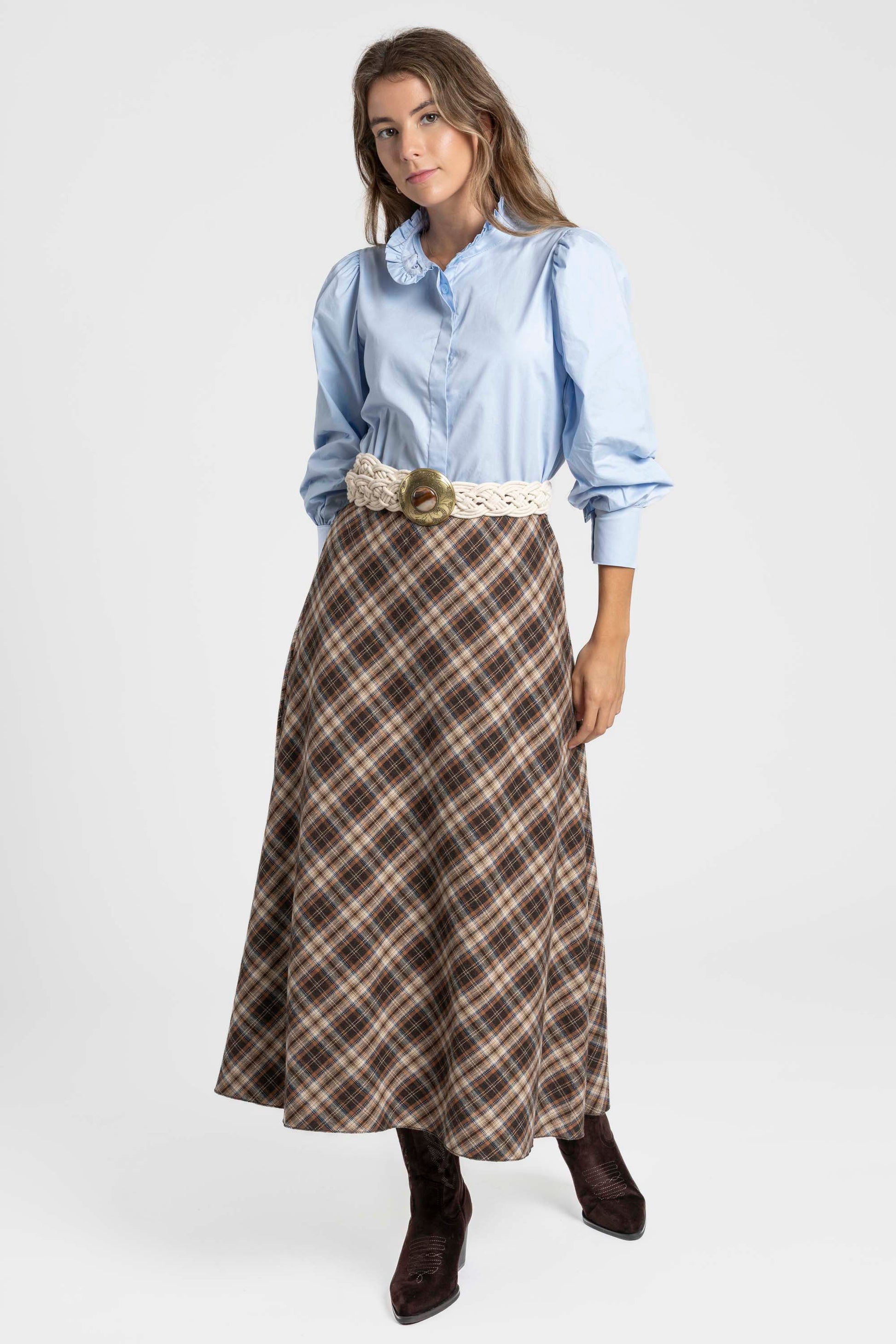 Tejido mezcla de algodón. Diseño cuadros. Diseño midi. Cintura elástica.