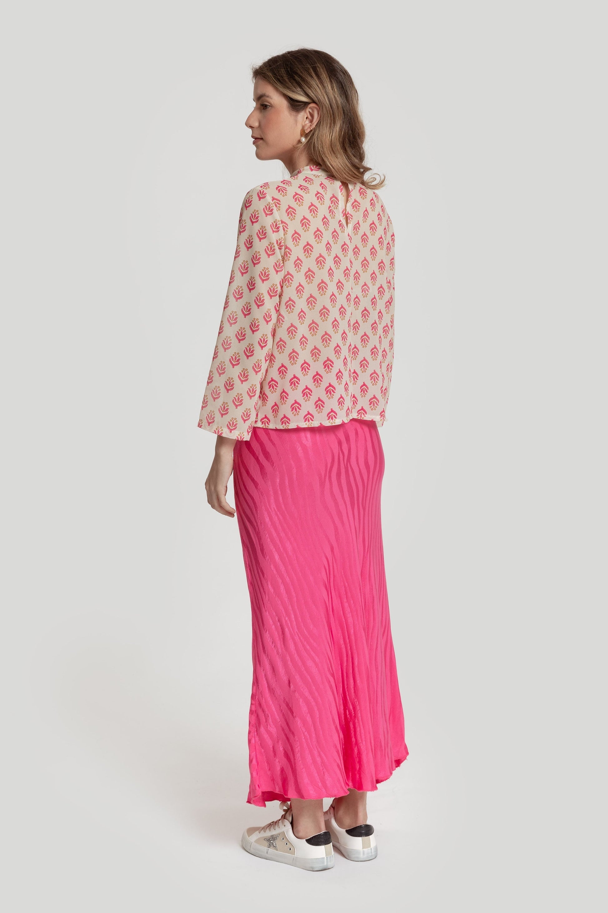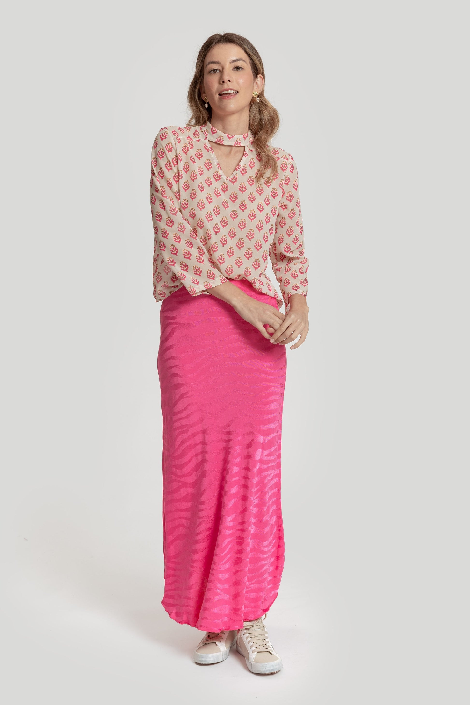 Tejido fluido. Diseño midi. Diseño estampado. Diseño recto. Cintura elástica. Talla modelo: S. Altura modelo 1,70 m.