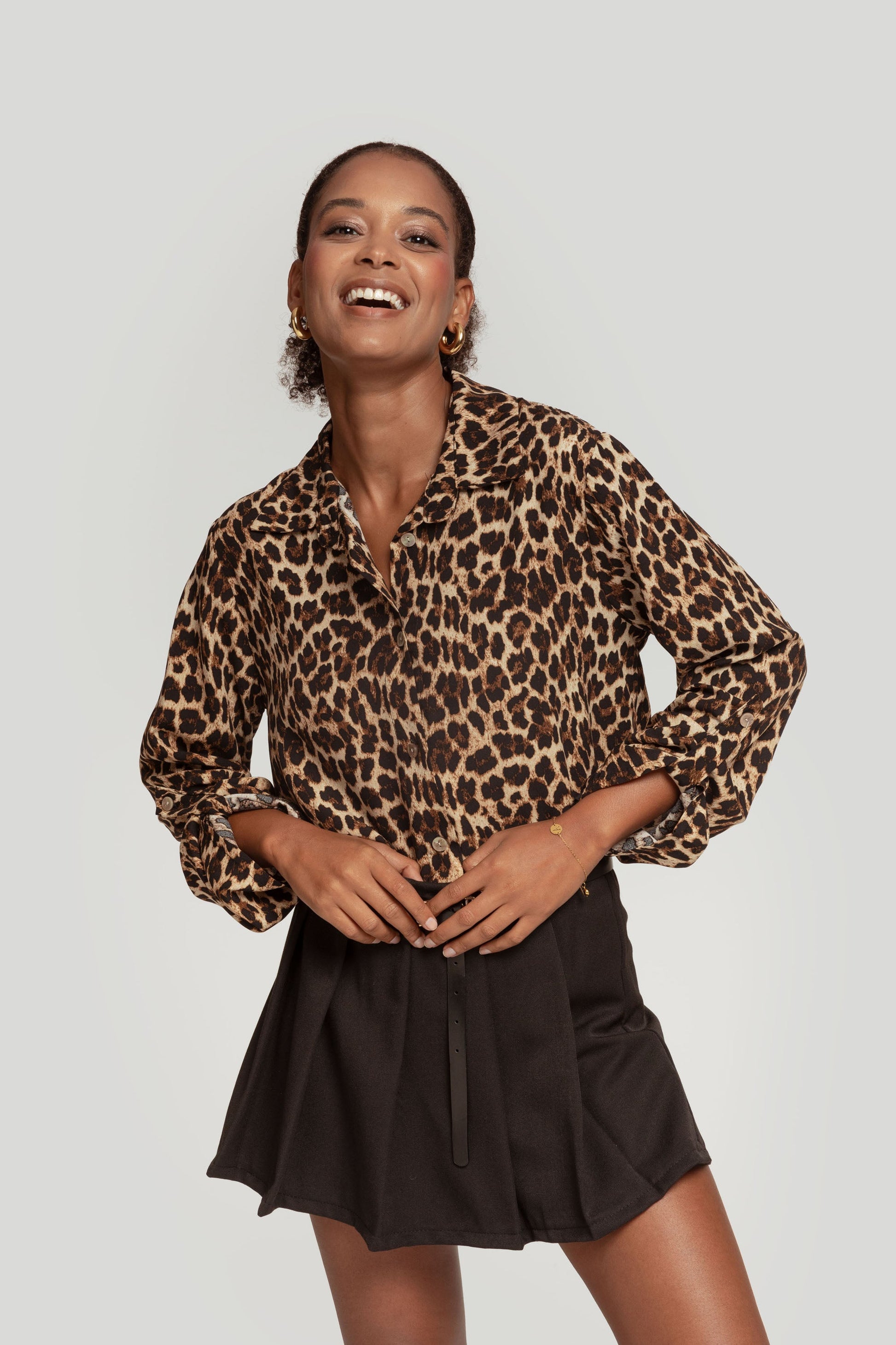 Tejido fluido. Diseño falda pantalón. Tiro alto. Cierre trasero con cremallera invisible. Detalles pinzas. Con cinturón. Talla modelo: S. Altura modelo 1,66 m.