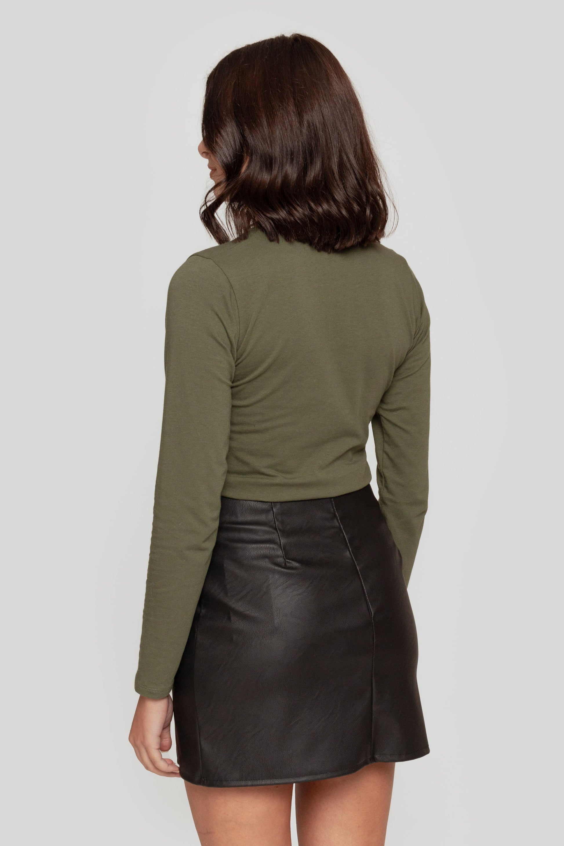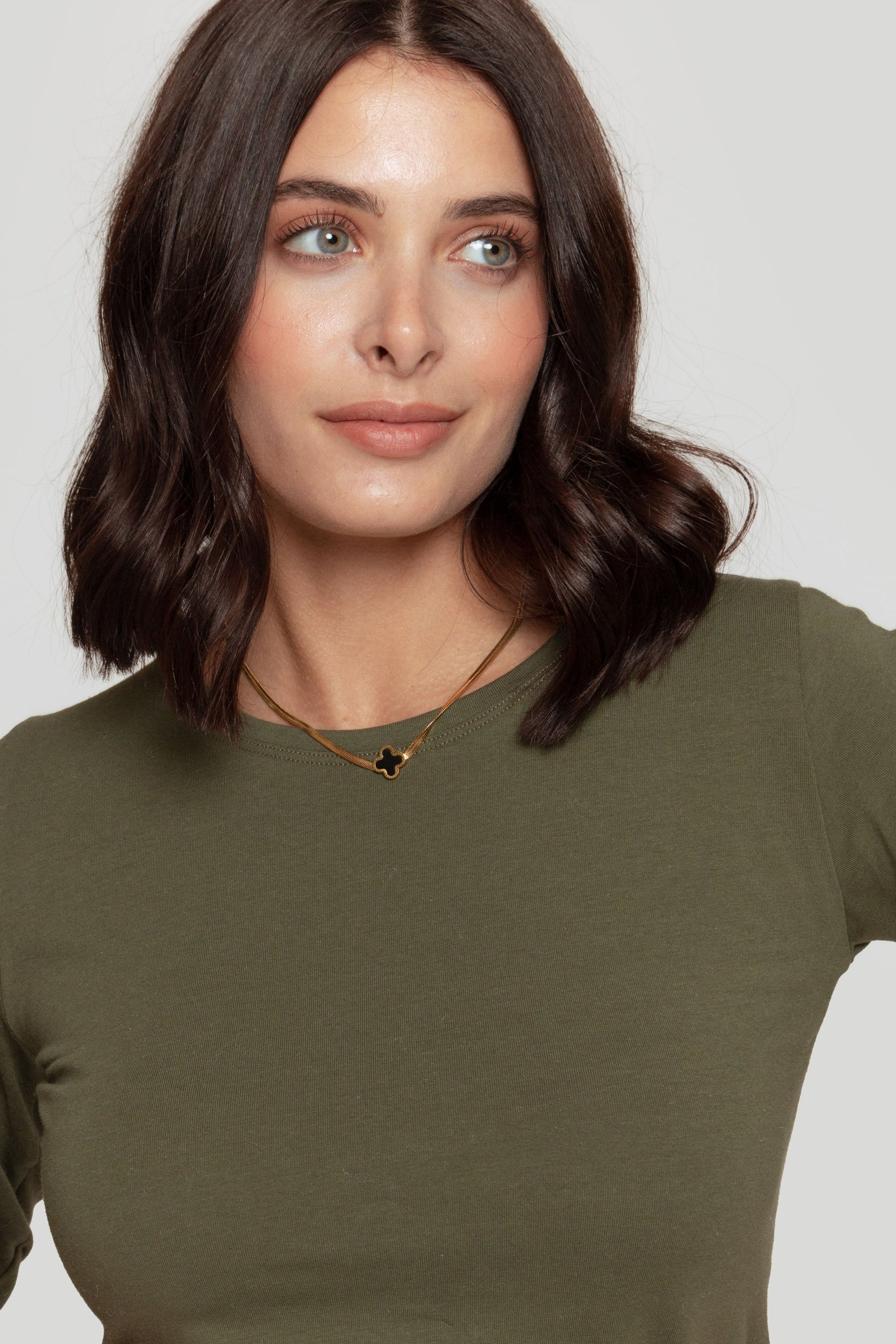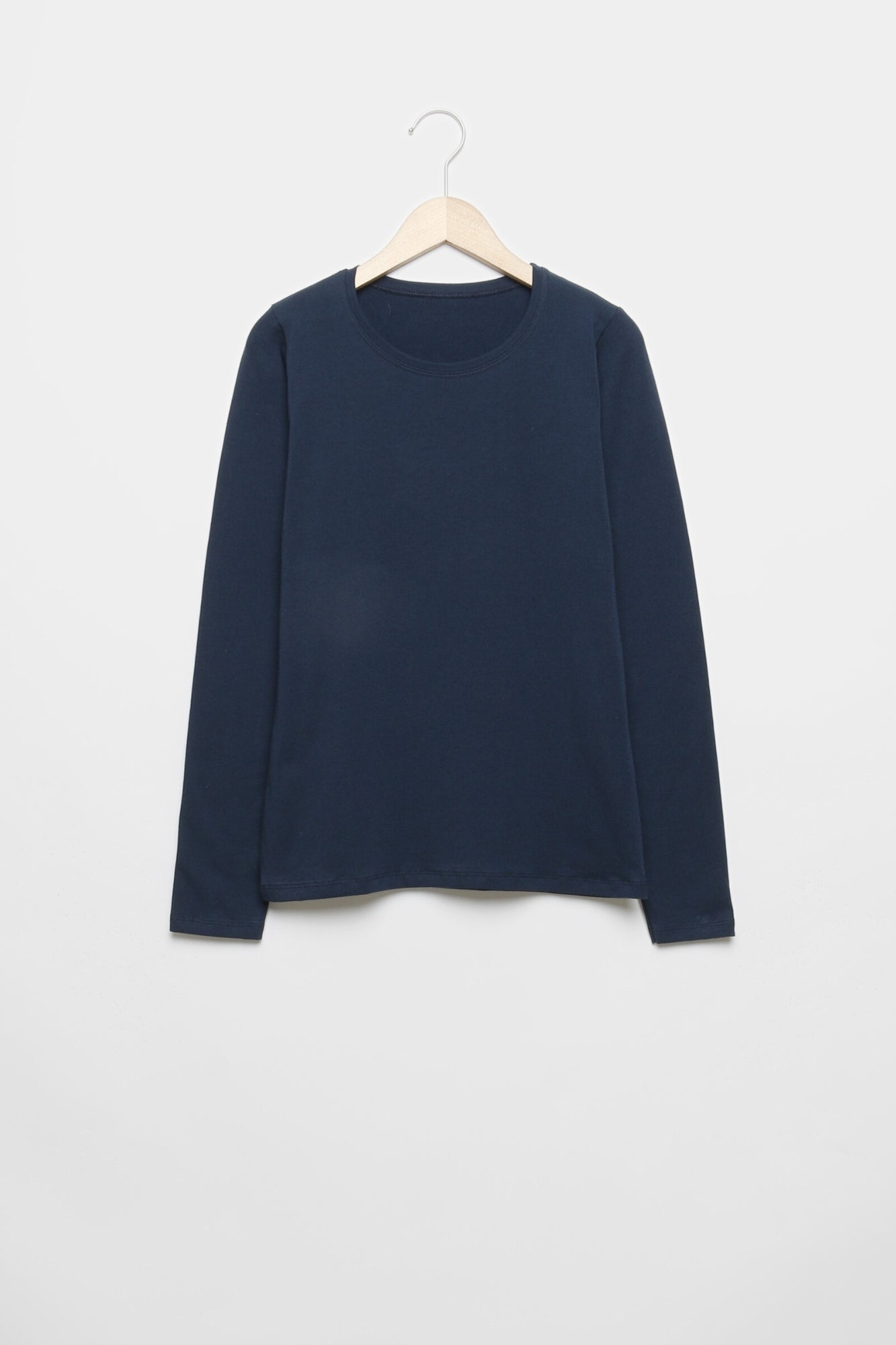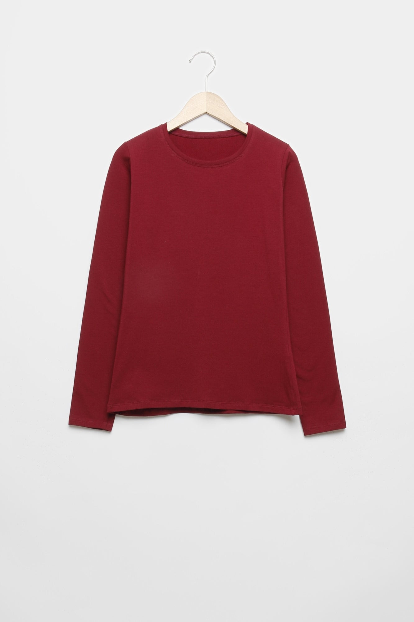 Tejido mezcla de algodón. Diseño recto. Diseño básico. Cuello redondo. Manga larga. Talla modelo: S. Altura modelo: 1.66 m.