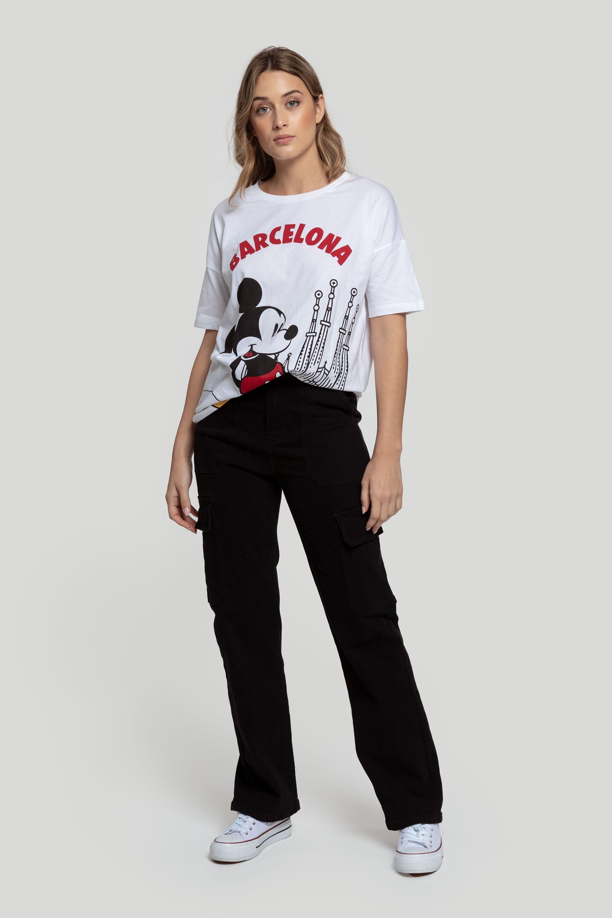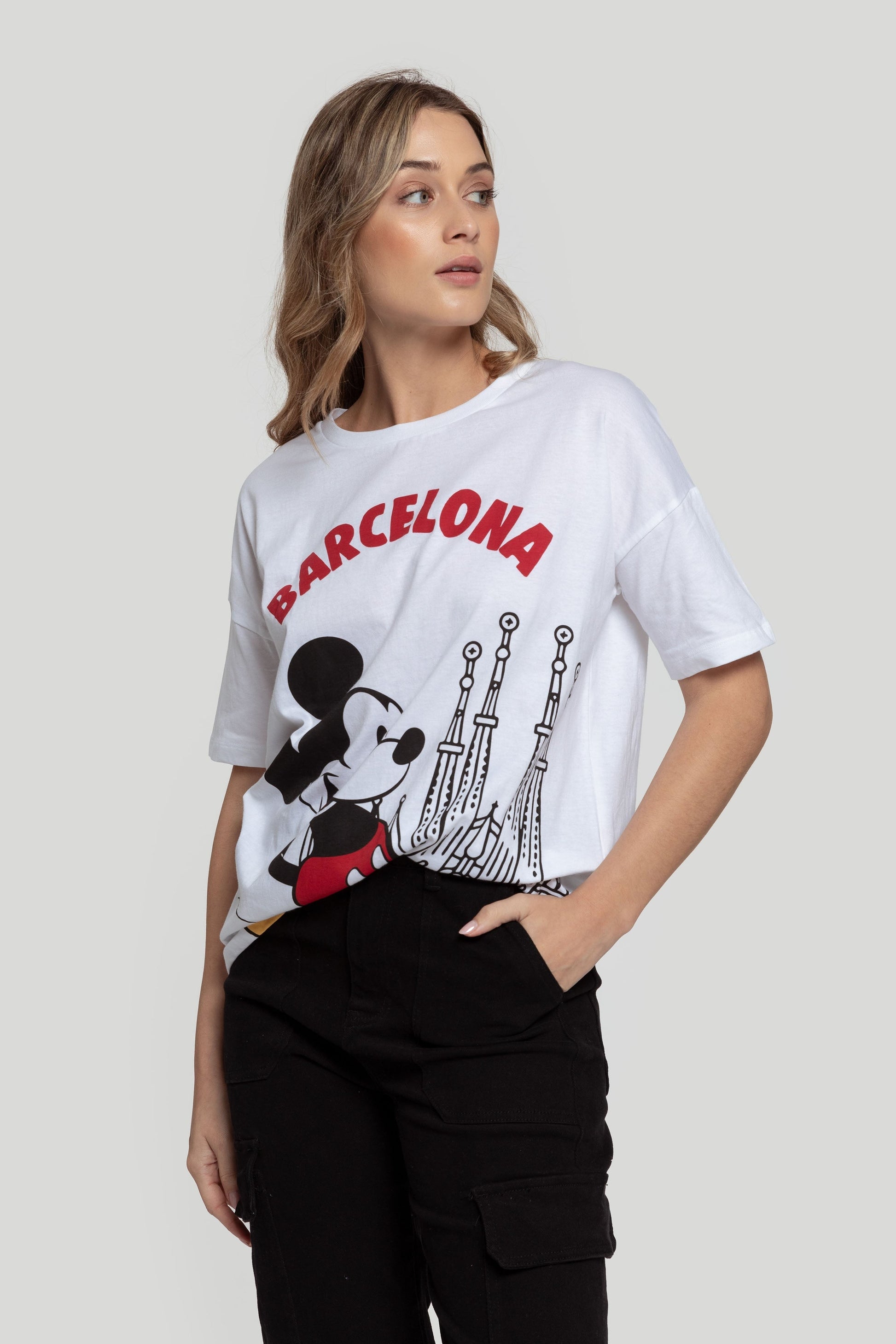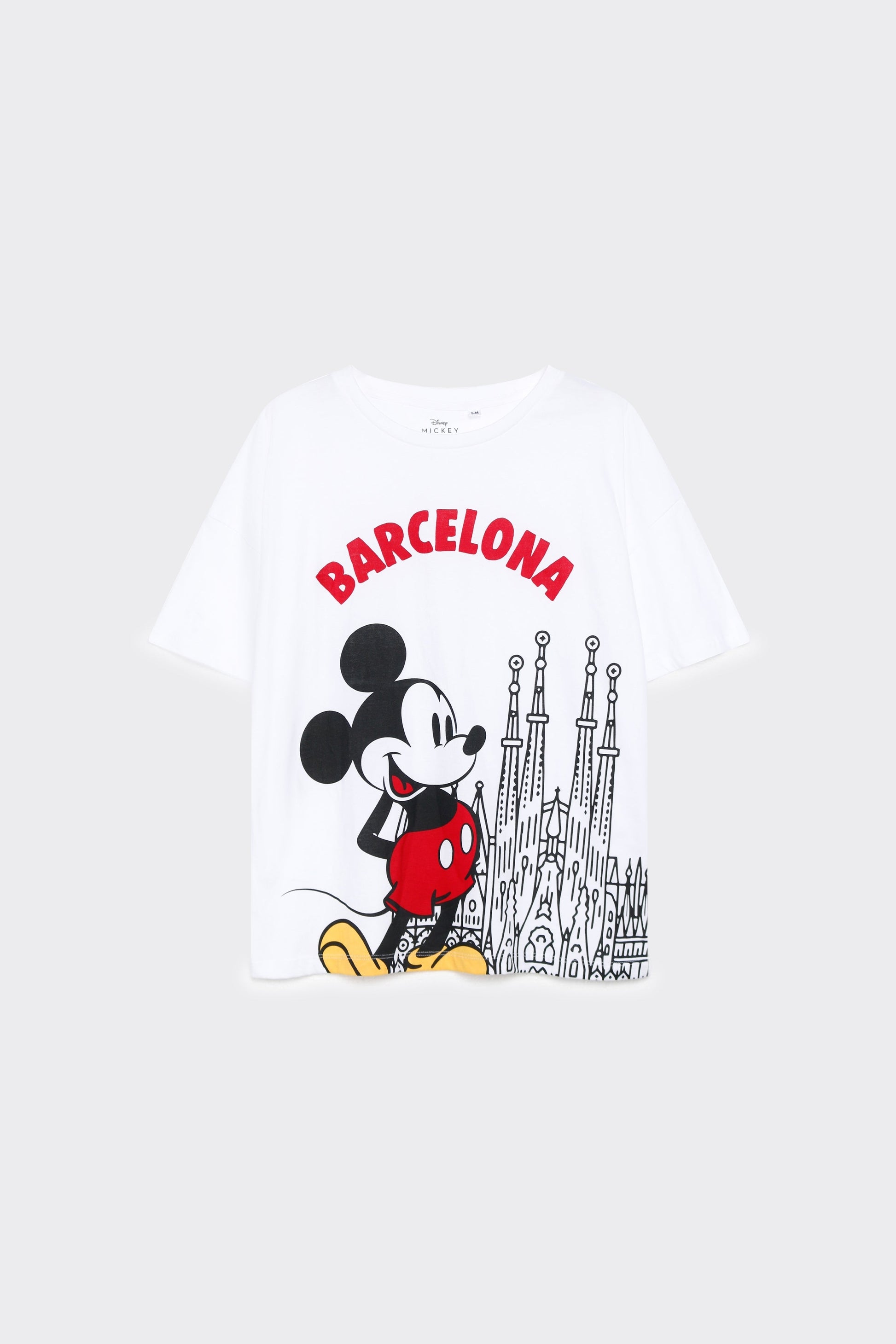 Camiseta de algodón. Estampado de Mickey Mouse. Diseño oversize. Cuello redondo. Manga corta. Diseño recto. Licencia autorizada. Talla modelo: S. Altura modelo 1.66 m