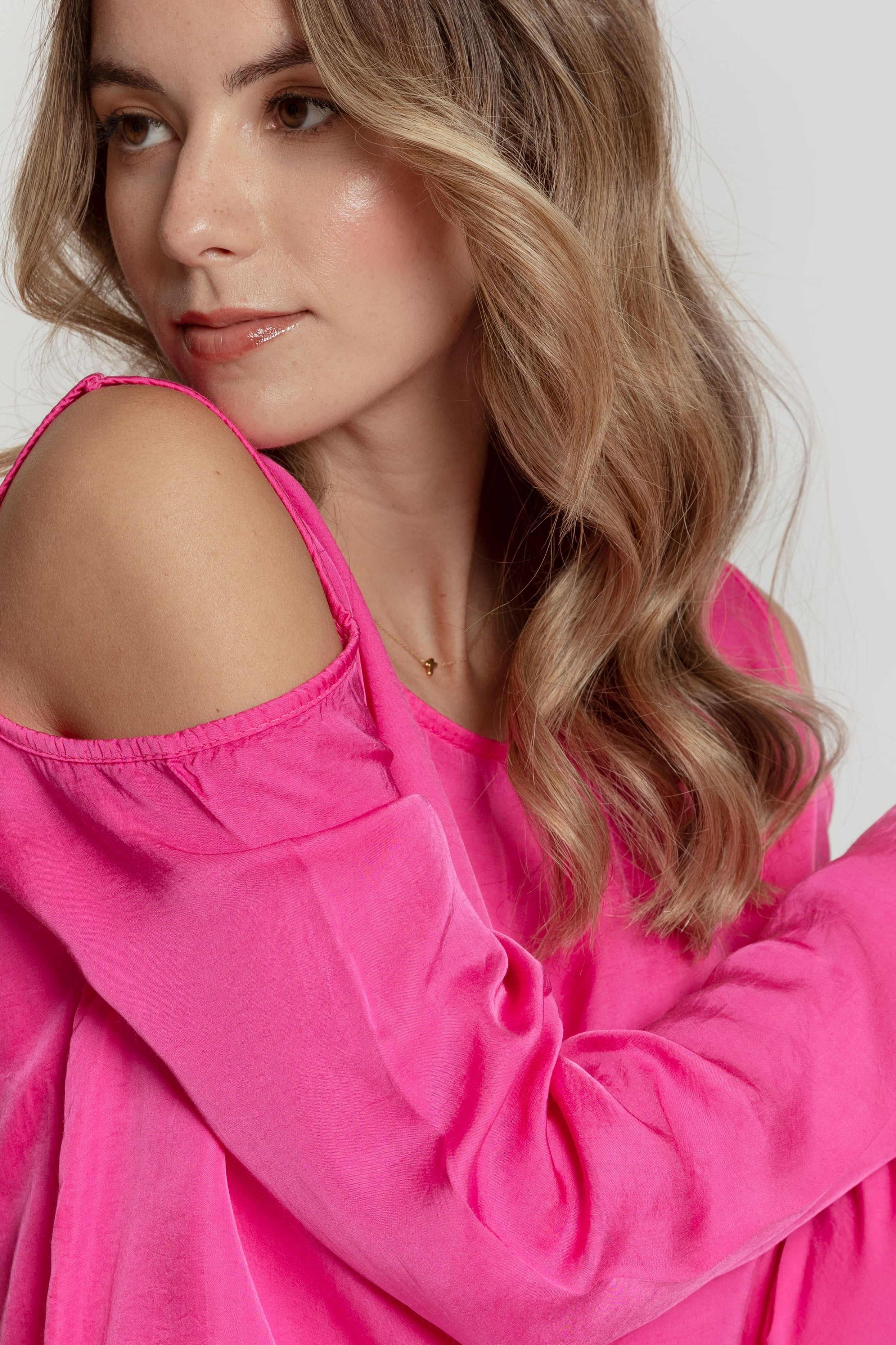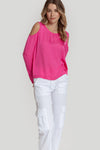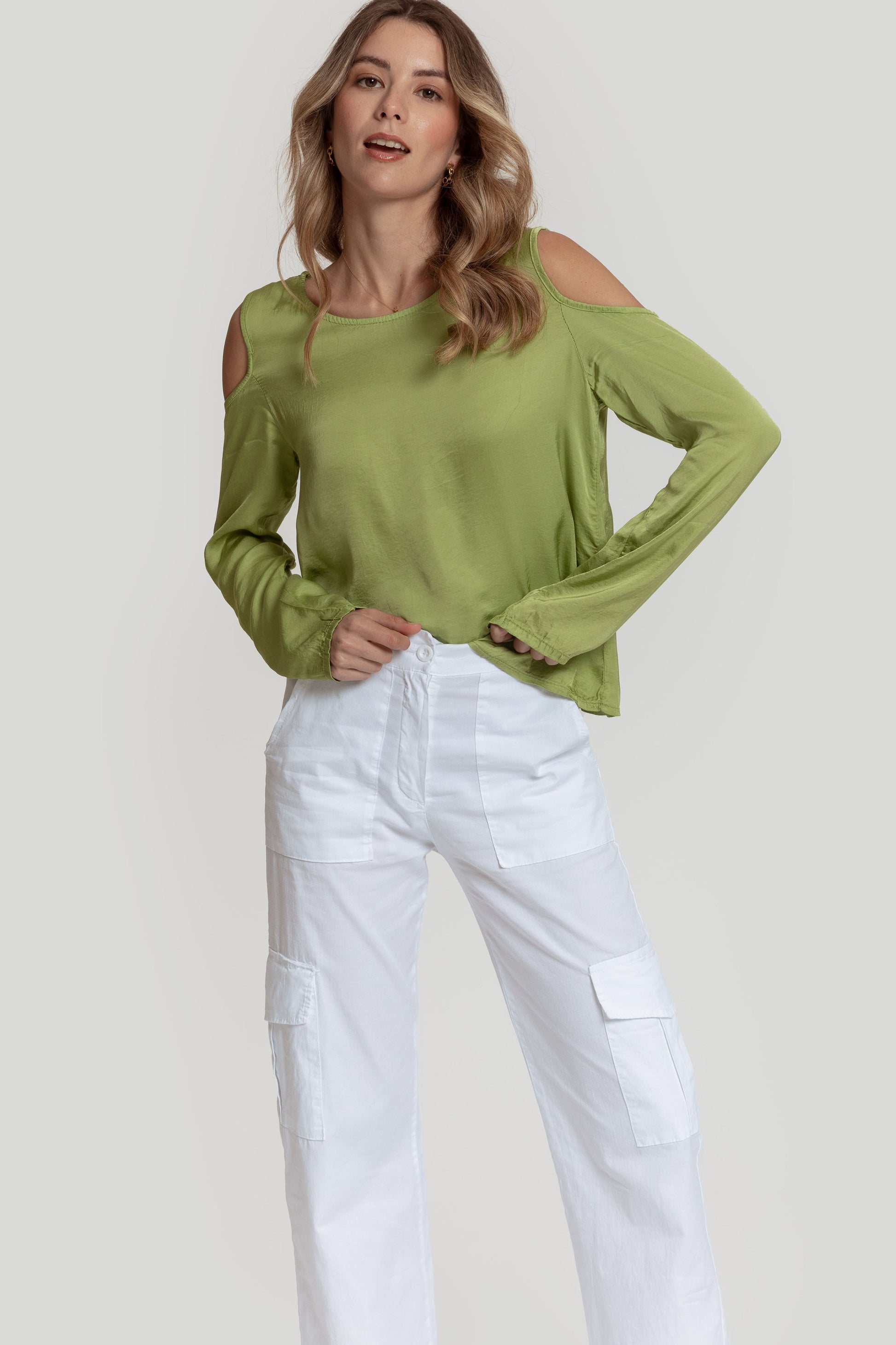 Camiseta de acabado suave. Diseño recto. Cuello redondo. Manga larga. Detalles cut out. Talla modelo: S. Altura modelo: 1,70 m.