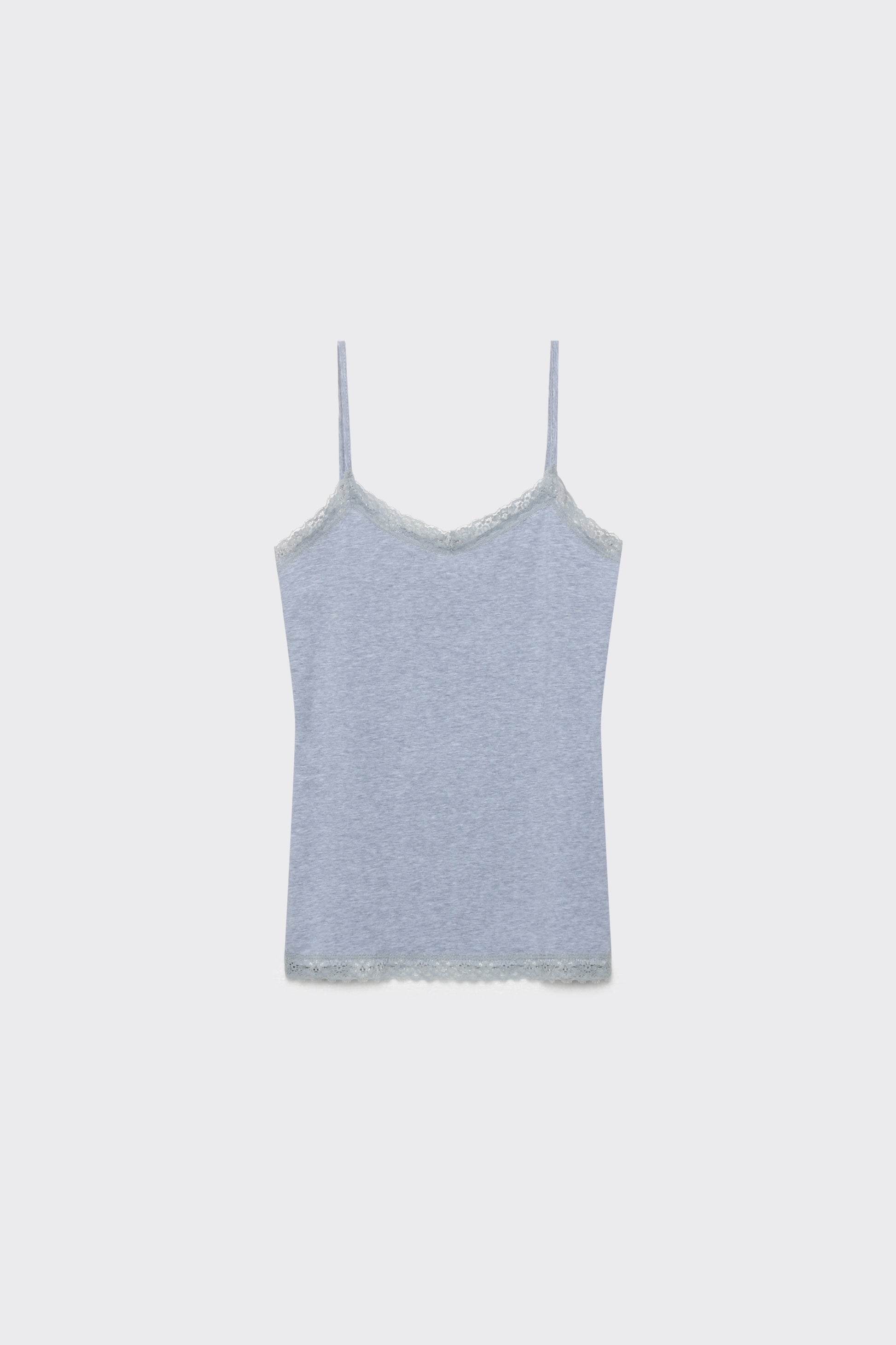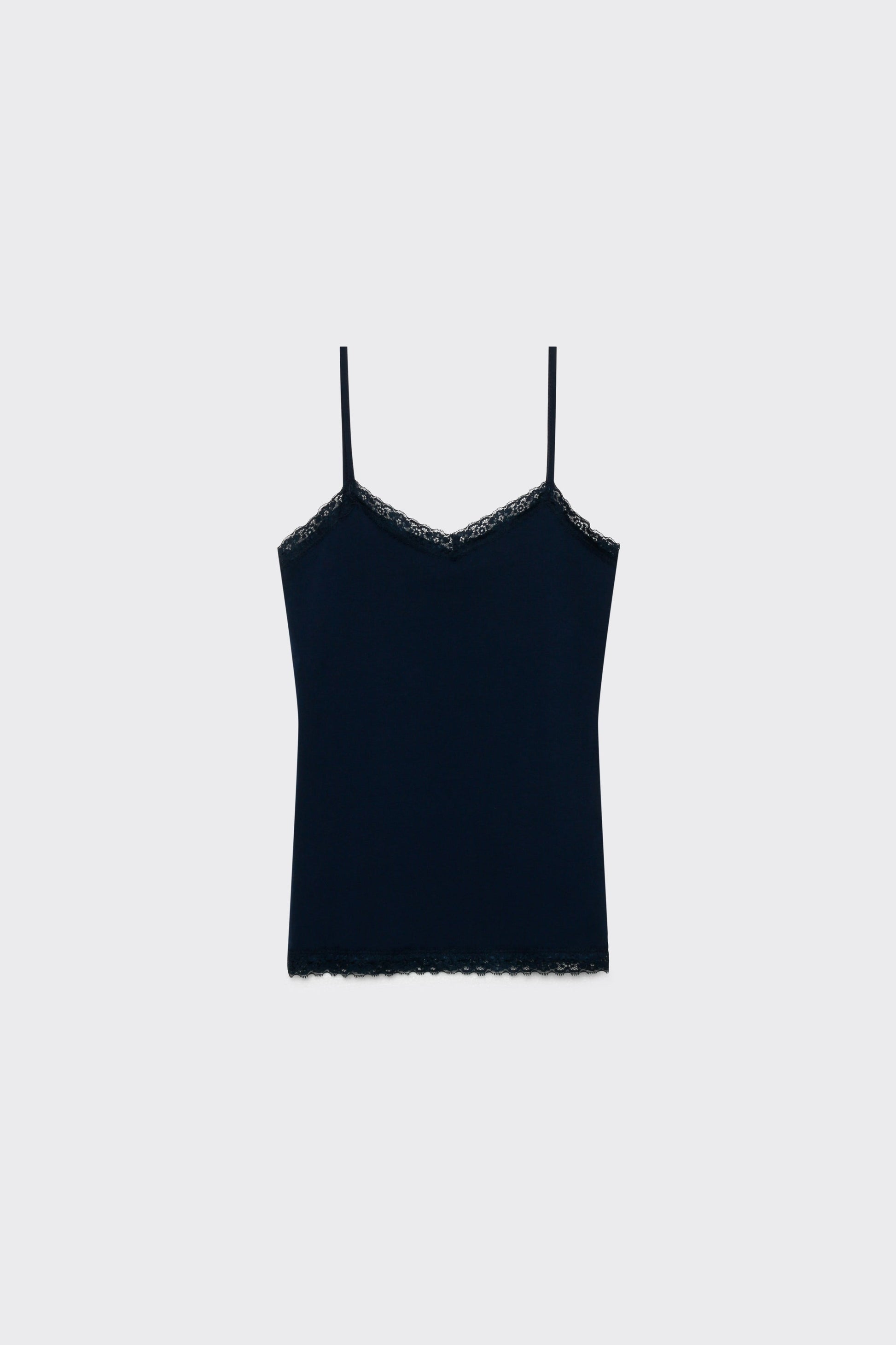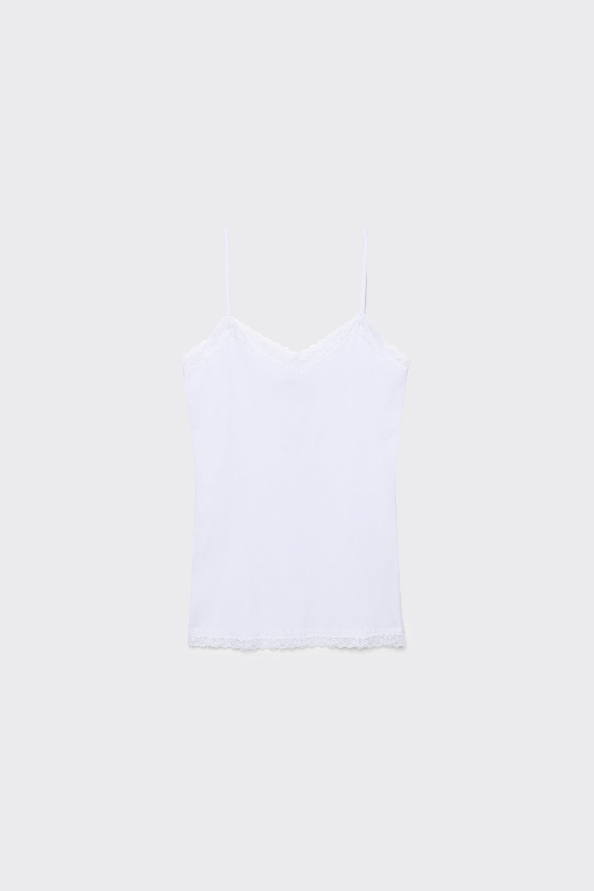 Tejido mezcla de algodón. Diseño recto. Diseño básico. Diseño ajustado. Tirantes finos. Acabados con encaje. Talla modelo: S. Altura modelo 1,65 m.