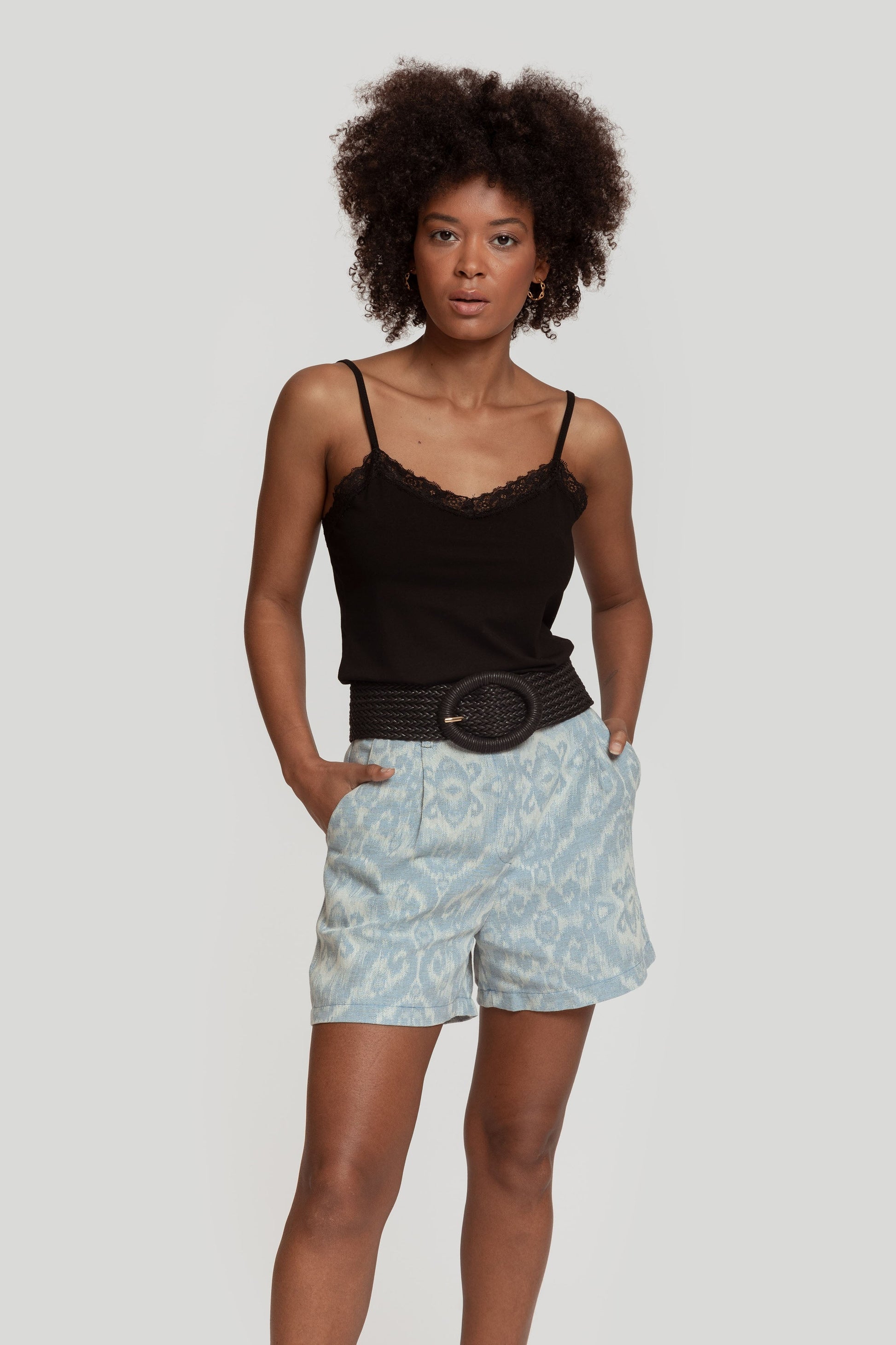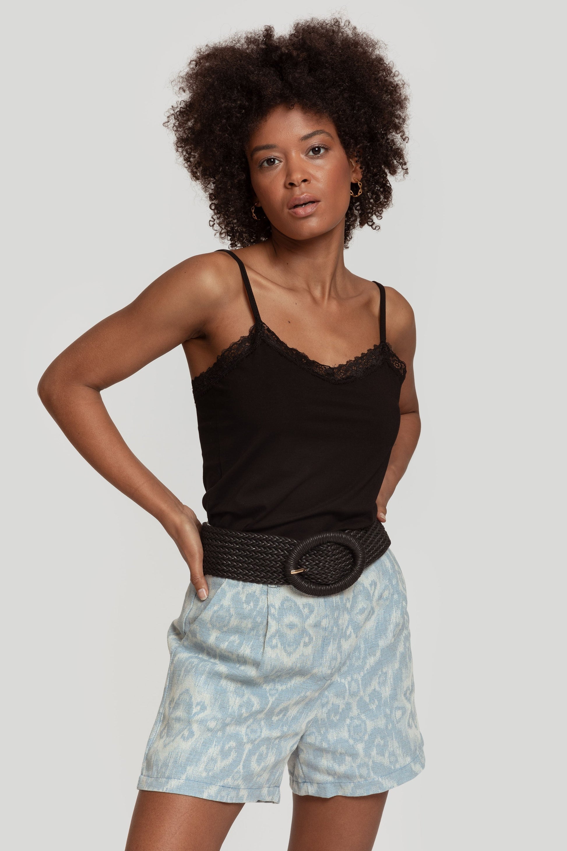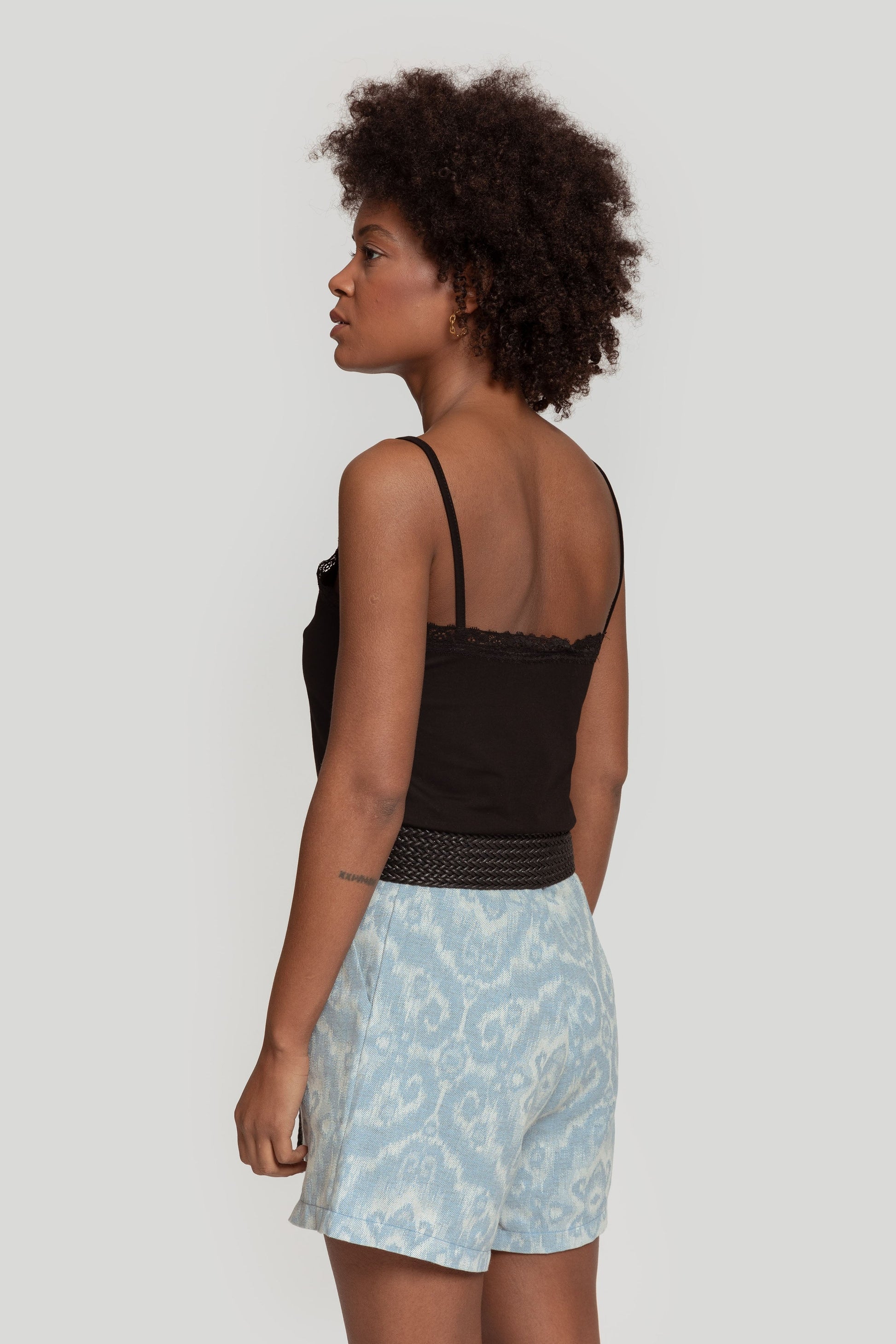 Tejido mezcla de algodón. Diseño recto. Diseño básico. Diseño ajustado. Tirantes finos. Acabados con encaje. Talla modelo: S. Altura modelo 1,65 m.