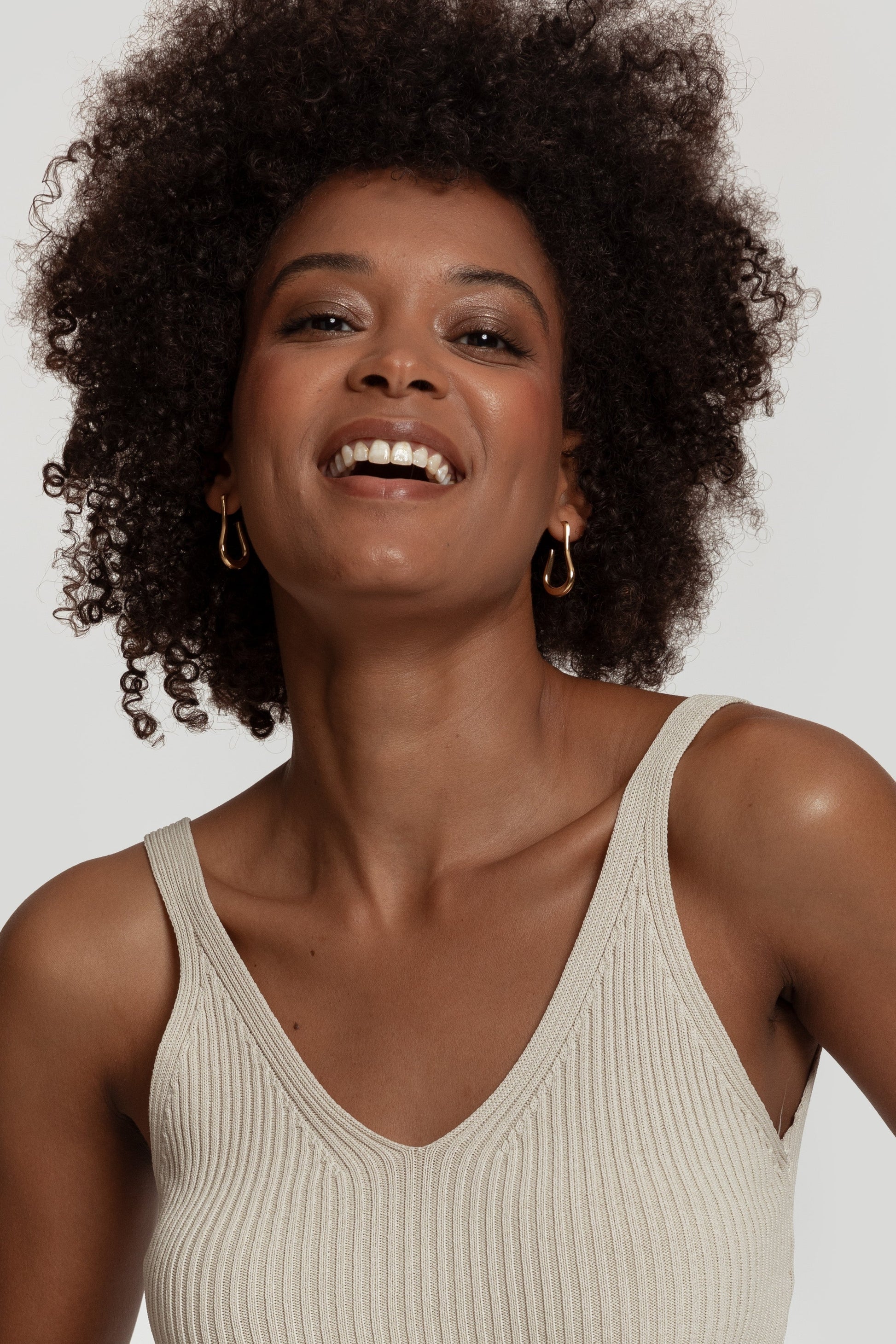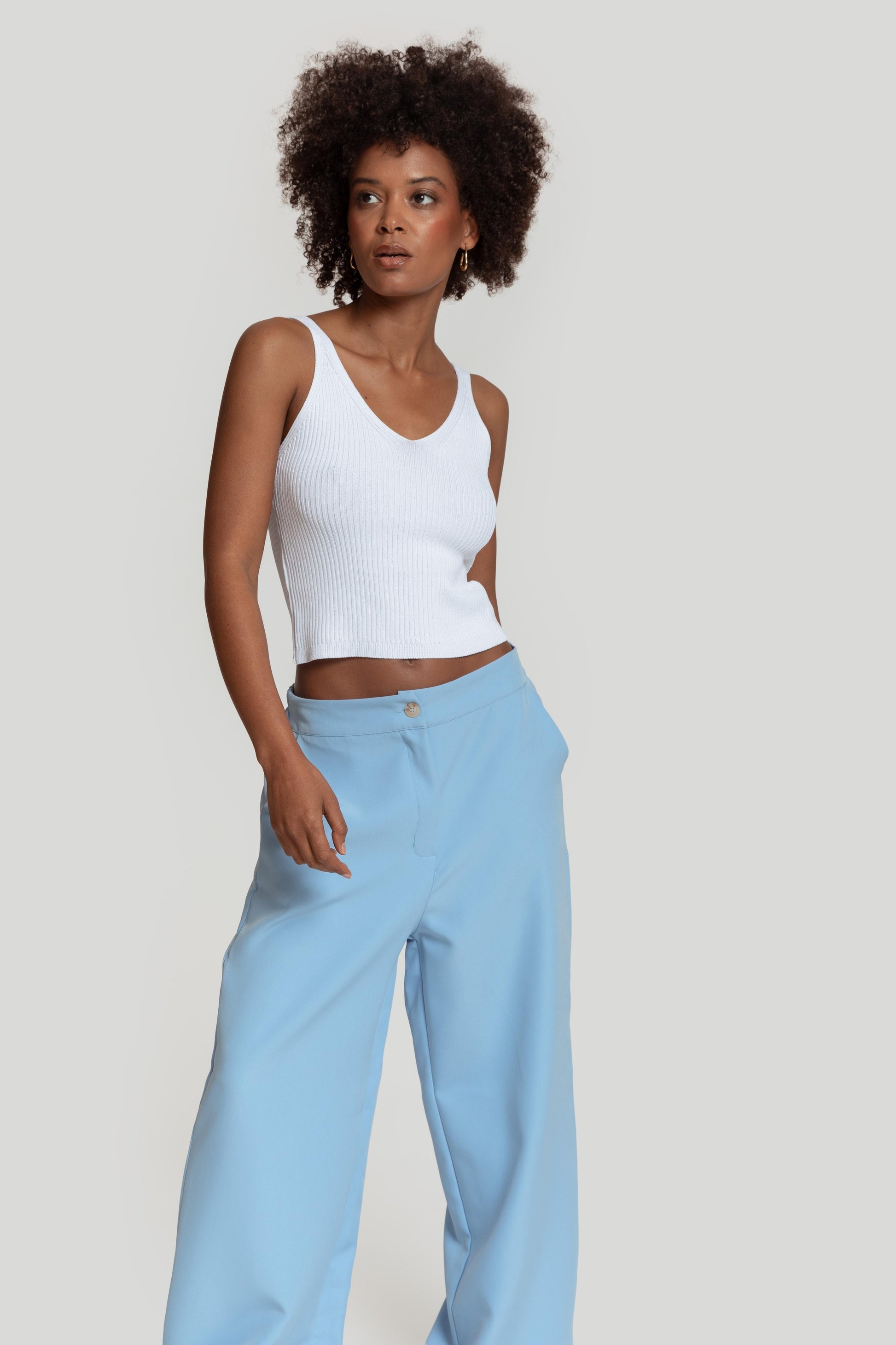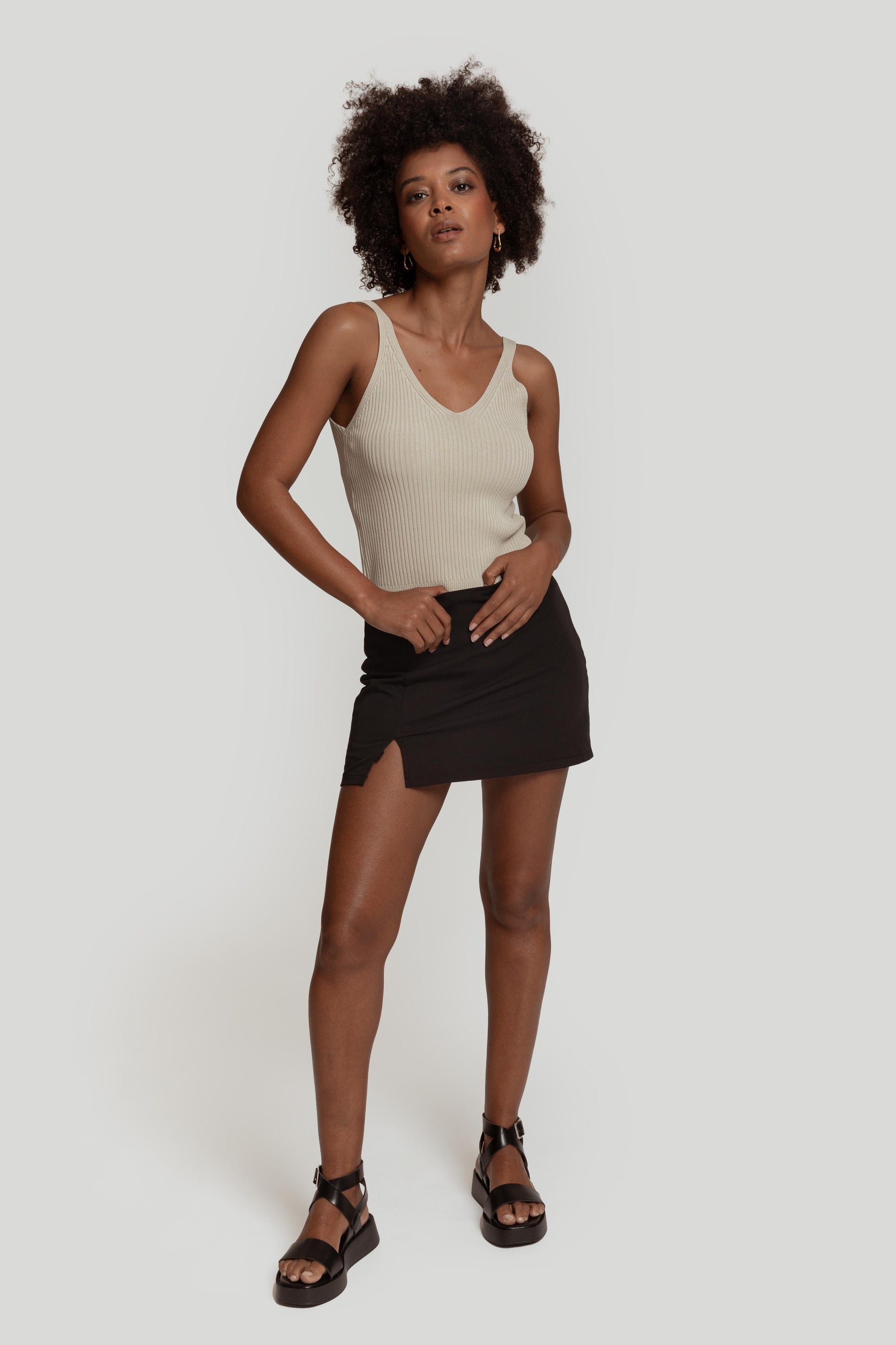 Tejido canalé. Diseño crop. Diseño recto. Diseño ajustado. Escote pico. Manga tirantes. Tirantes anchos. Talla modelo: S. Altura modelo: 1,66 m.
