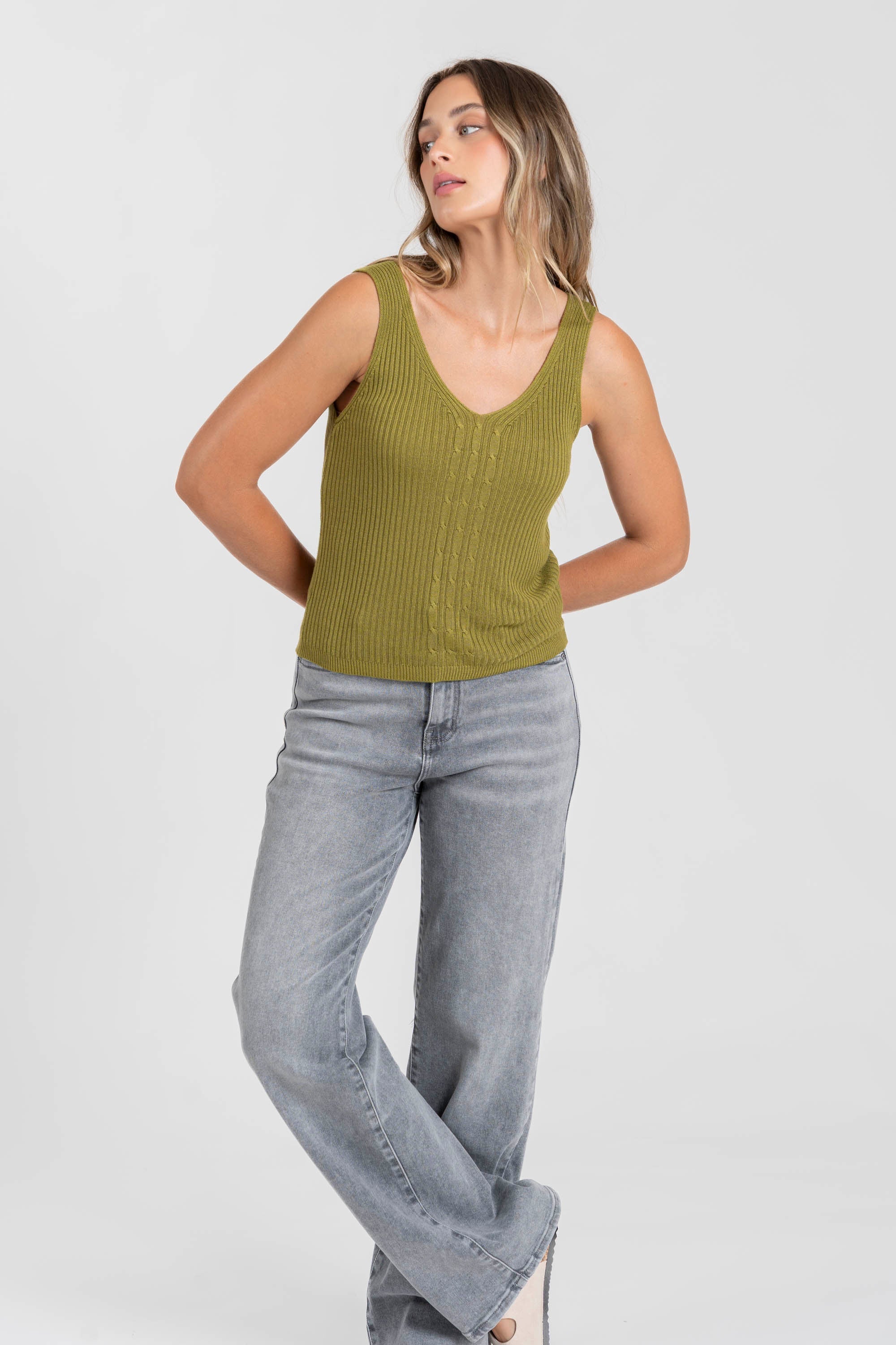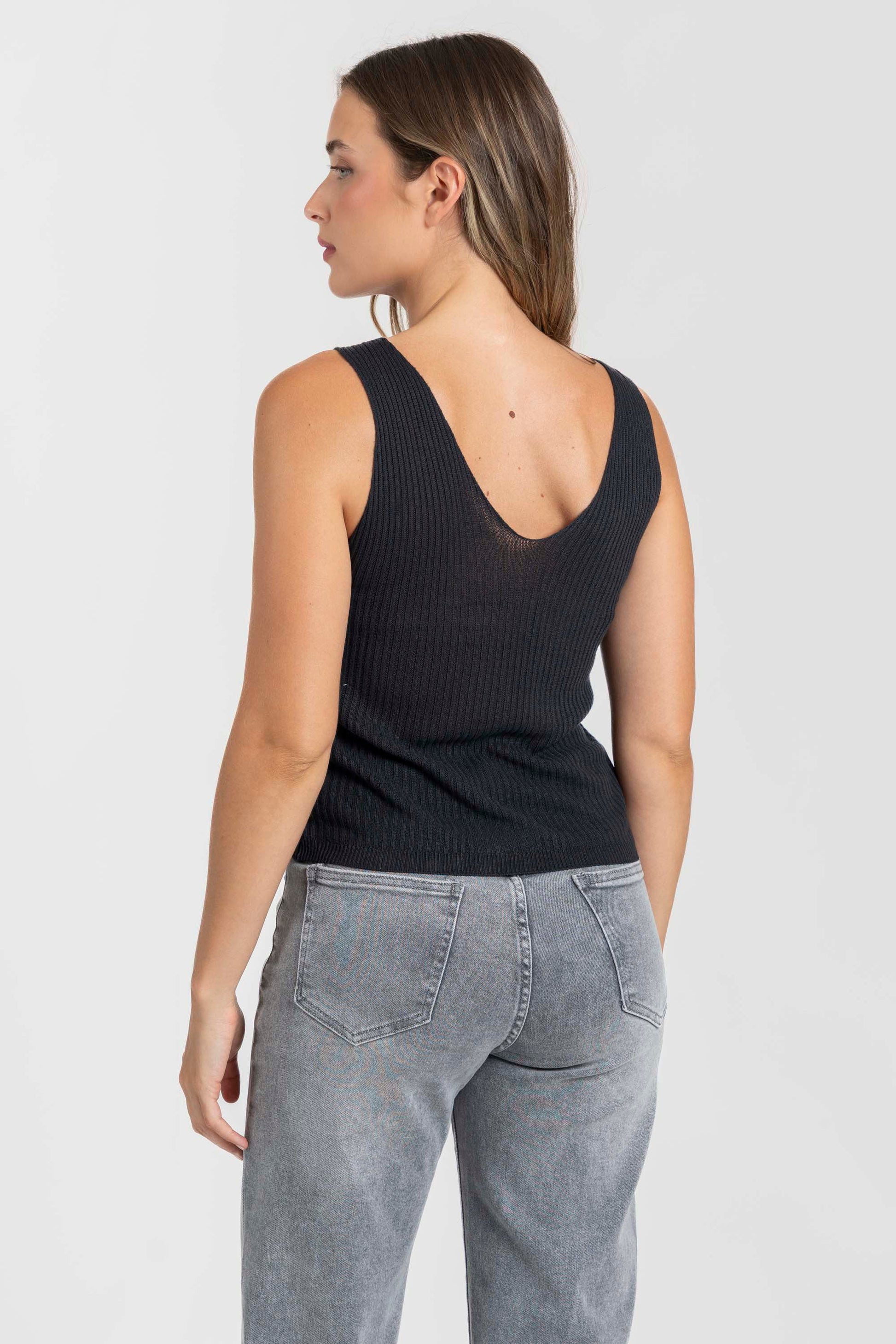 Top de punto. Escote pico. Tirantes anchos. Talla única.