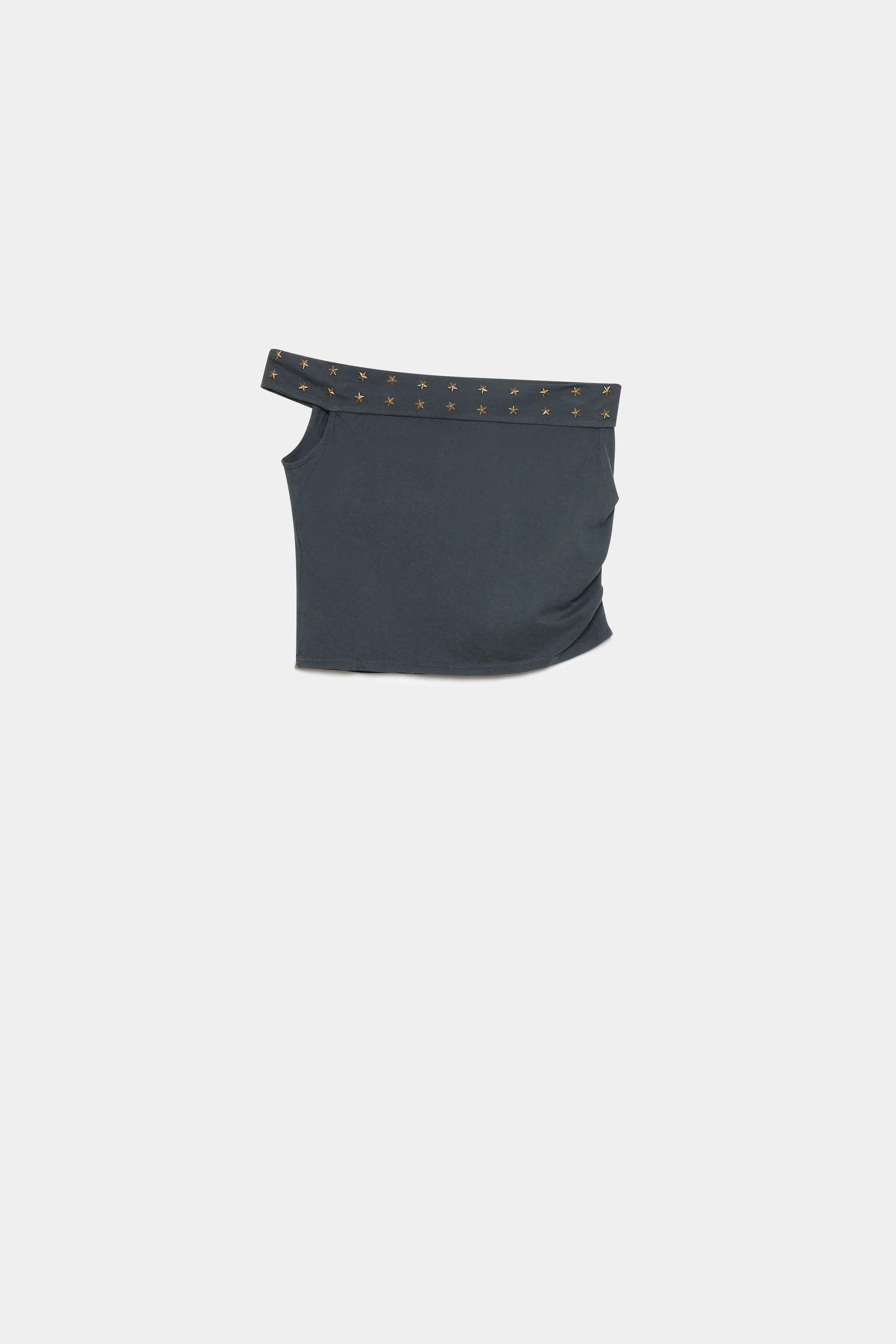 Tejido de algodón. Diseño asimétrico. Lateral frunce.