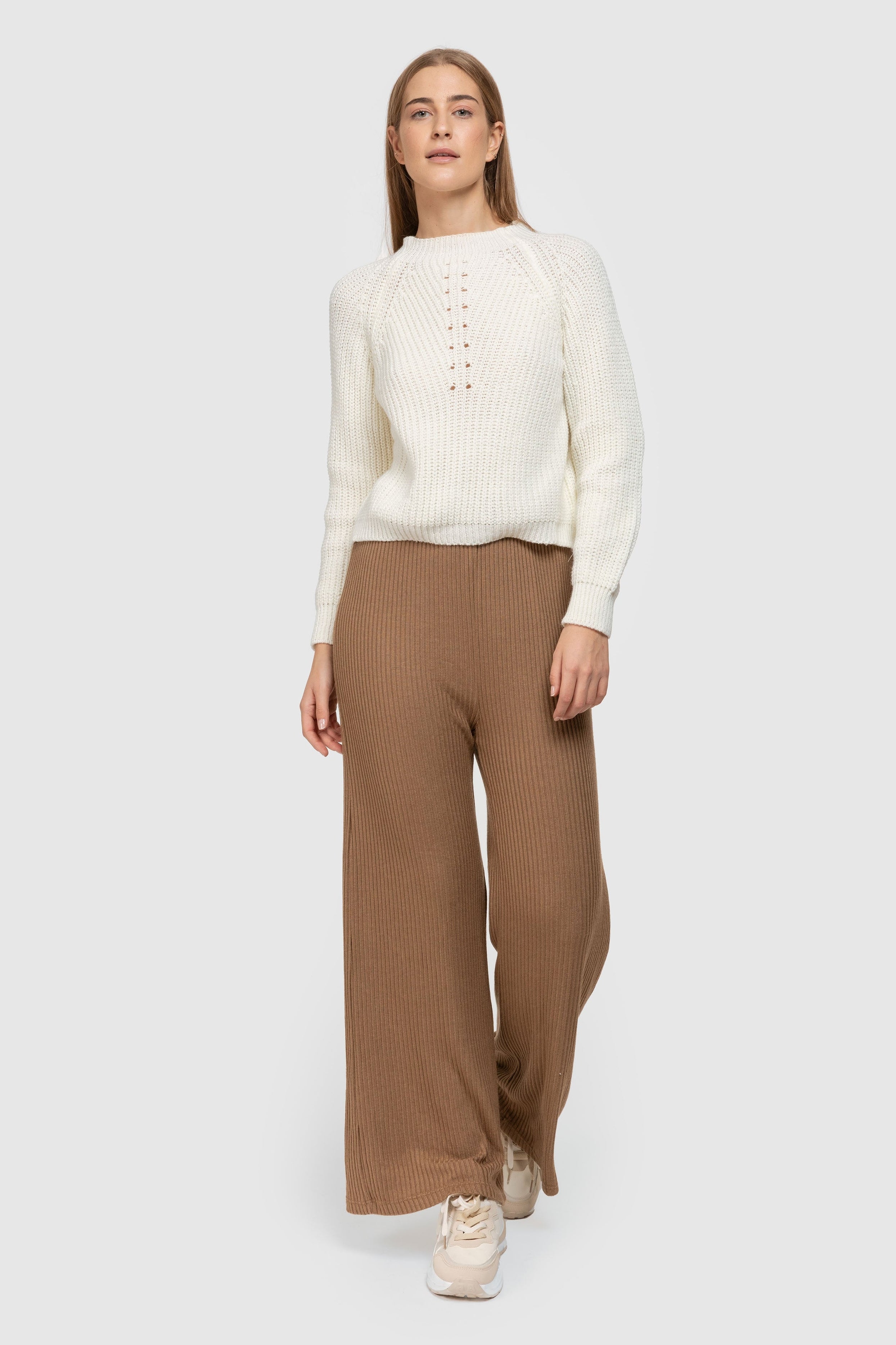 Pantalón básico. Tejido de punto de canalé. Tejido elástico. Estilo flare. Tiro alto. Diseño entallado. Cintura elástica. Talla modelo: S. Altura modelo 1.70 m.