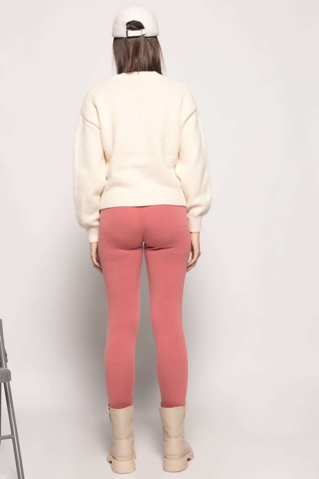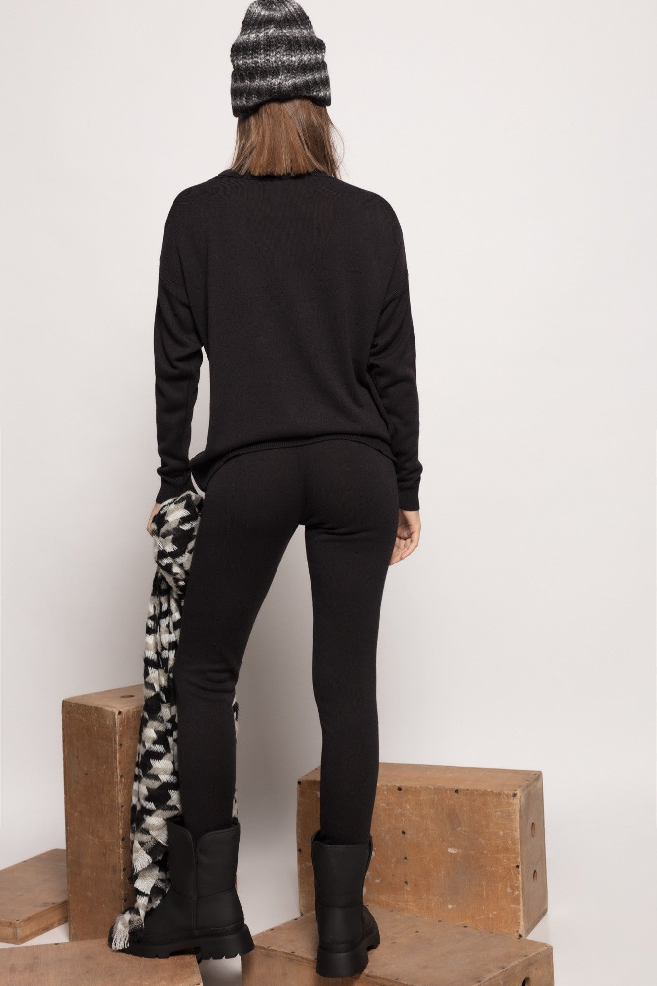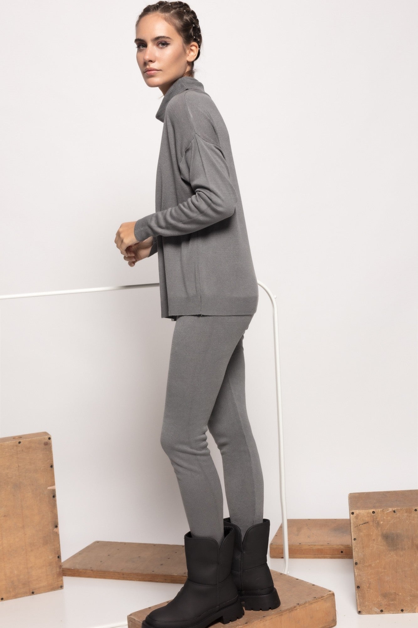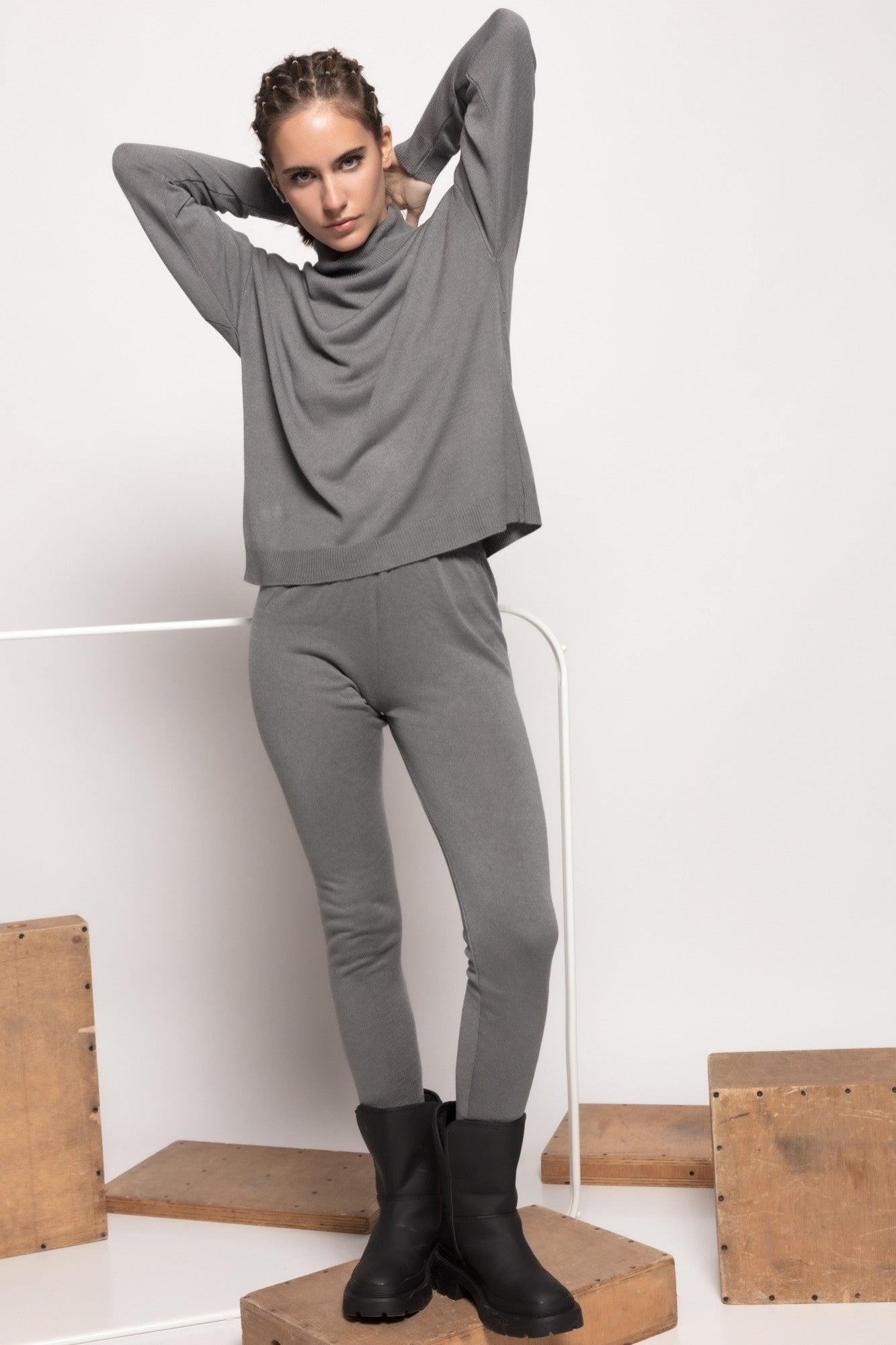 Pantalón básico. Tiro alto y cintura elástica. Bajo acabado en en puño. Talla modelo: S. Altura modelo: 1,66 m.