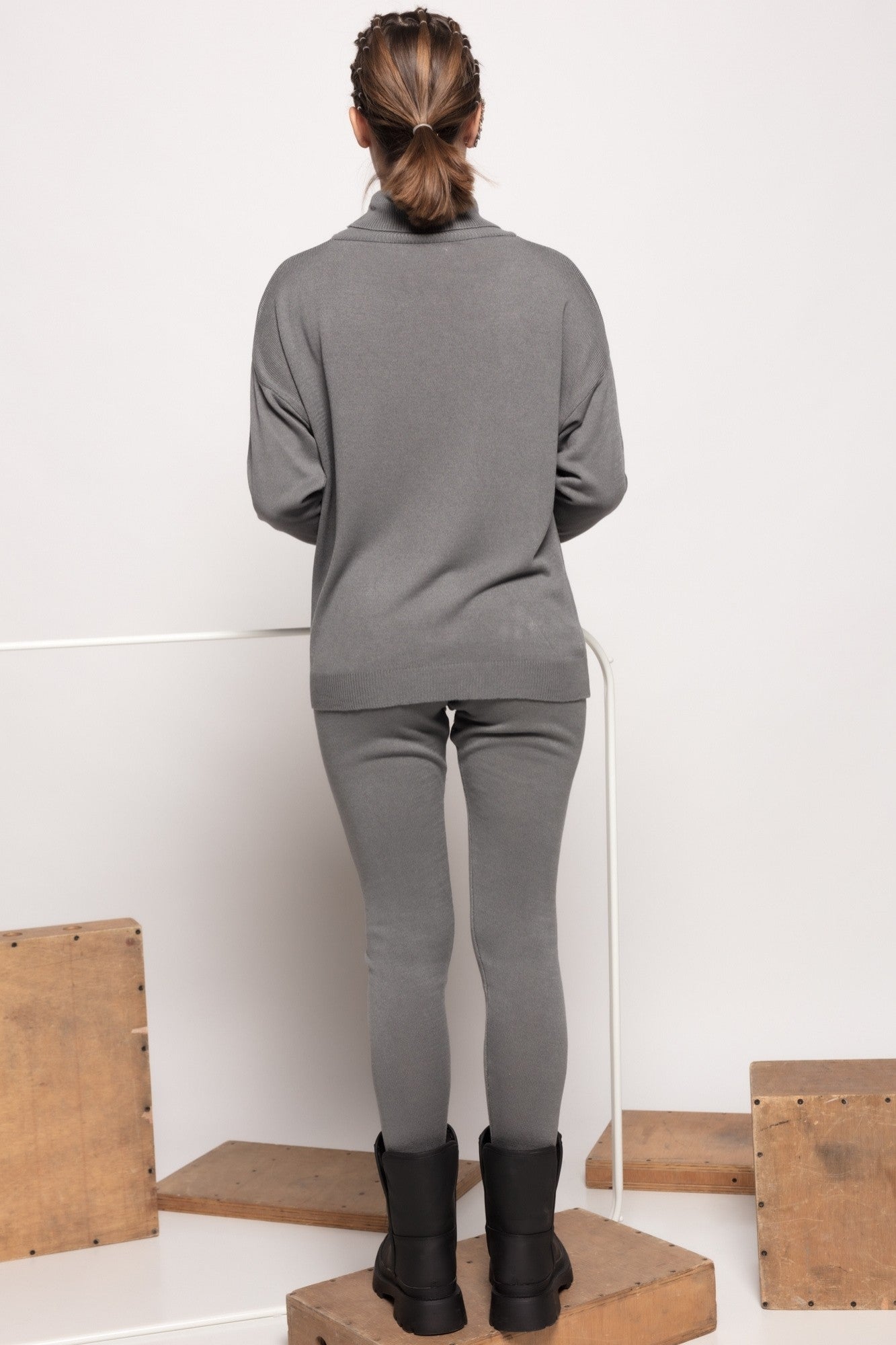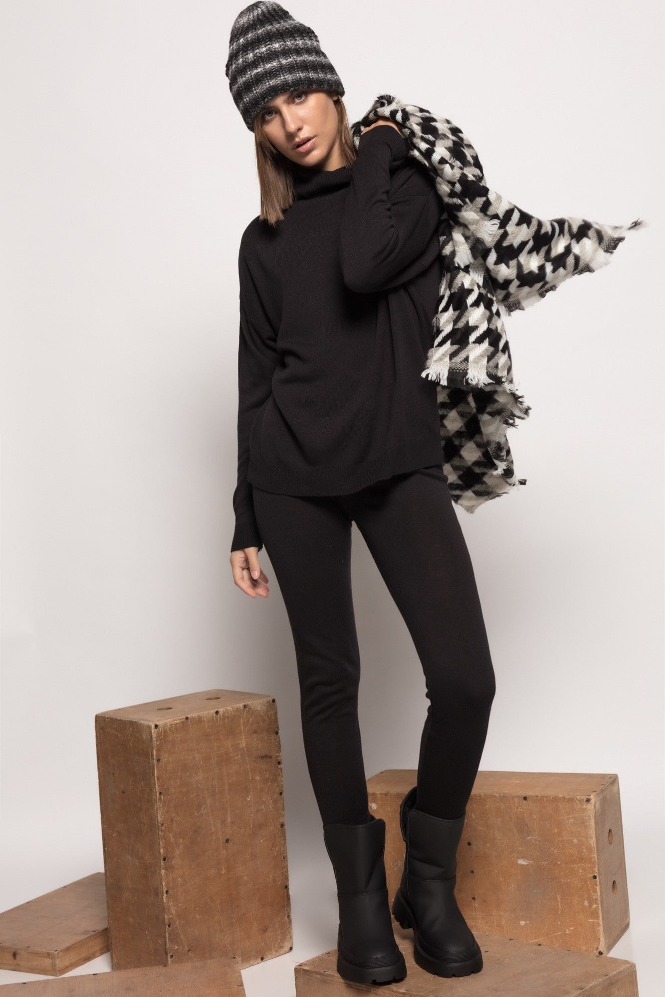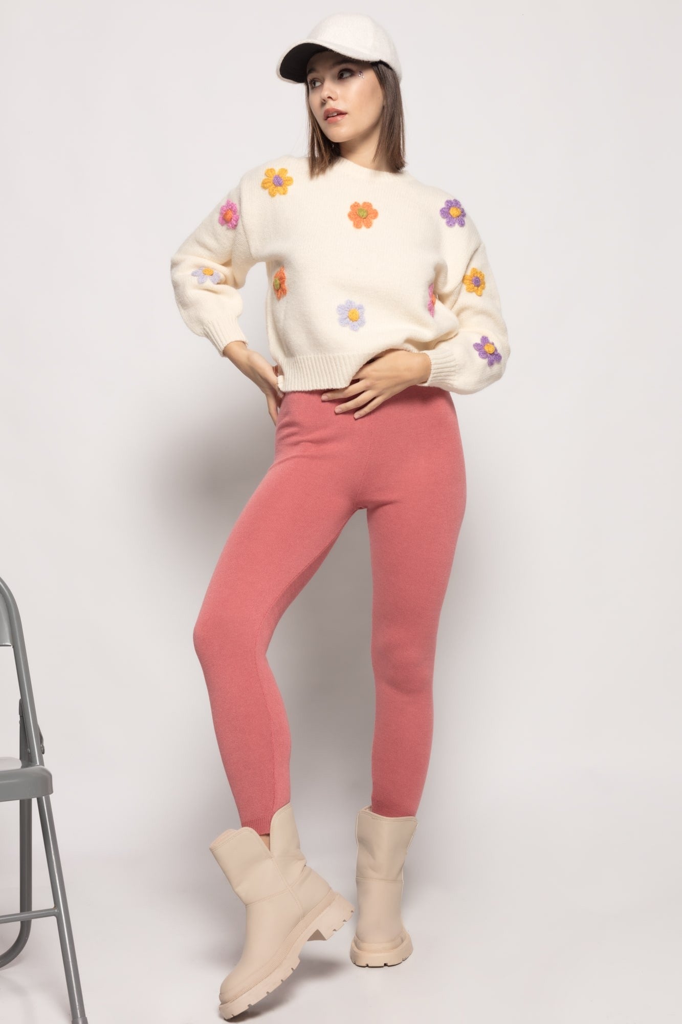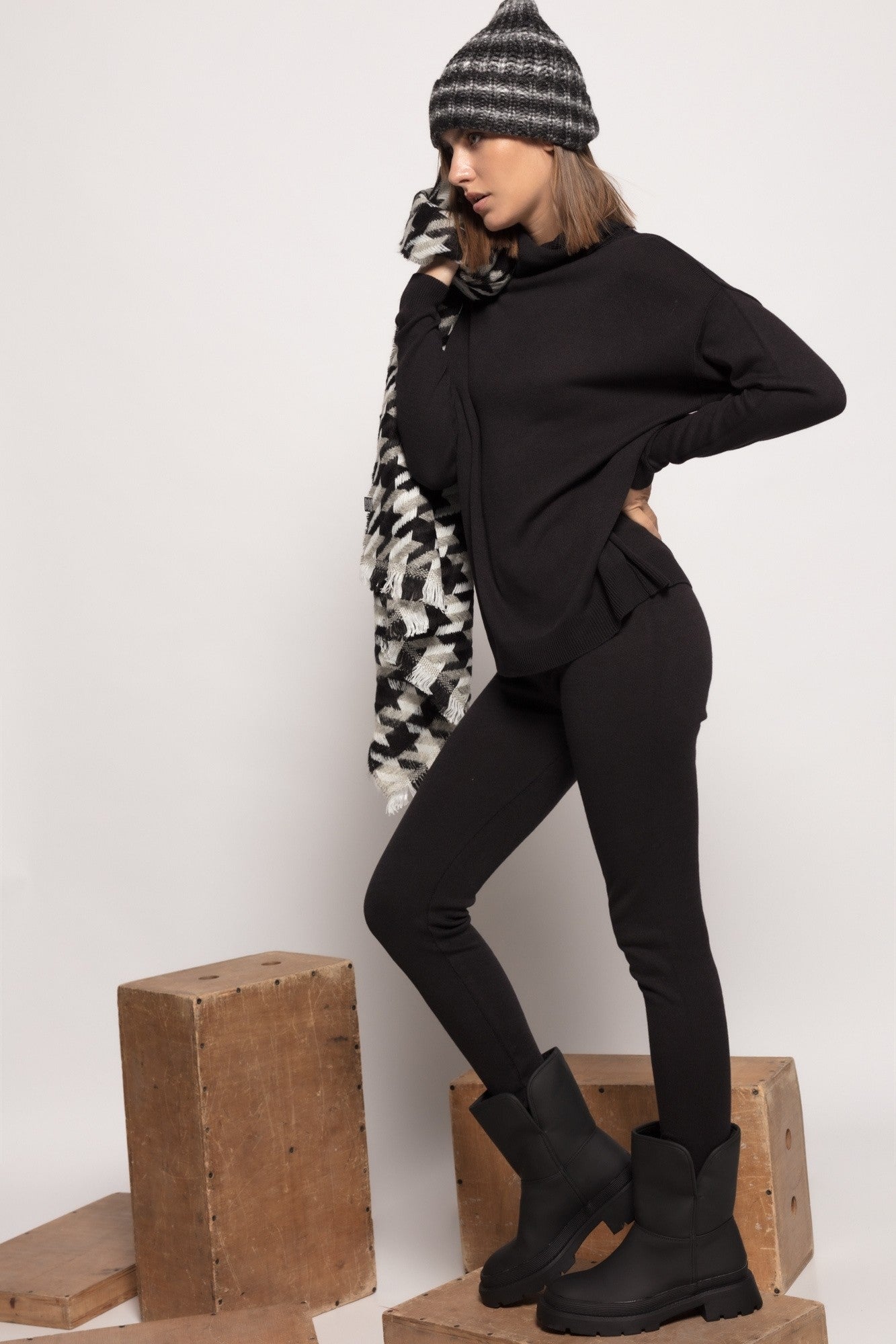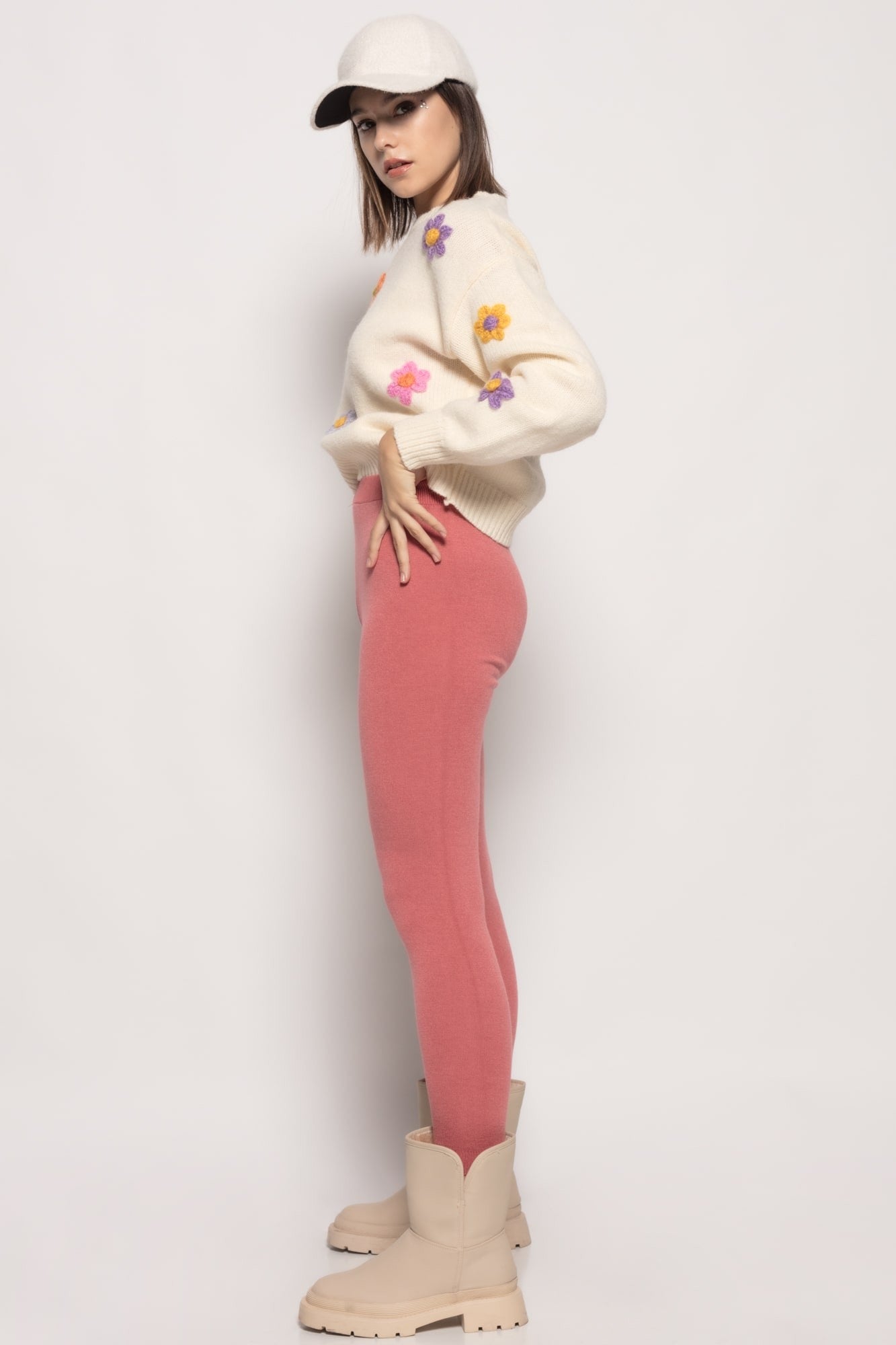 Pantalón básico. Tiro alto y cintura elástica. Bajo acabado en en puño. Talla modelo: S. Altura modelo: 1,66 m.