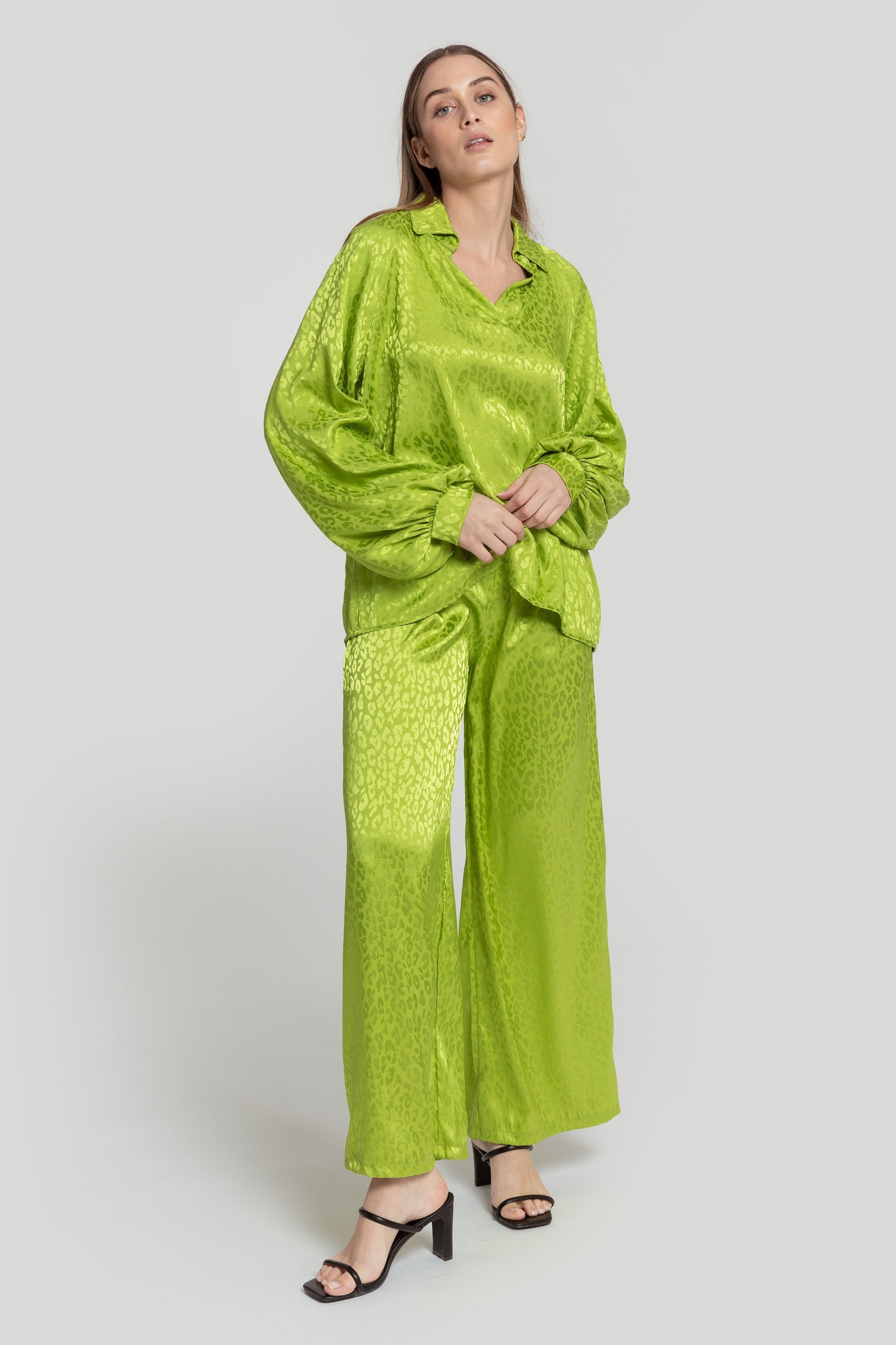 Pantalón de tiro alto. Diseño estampado. Cintura elástica. Talla modelo: S. Altura modelo 1.66 m.