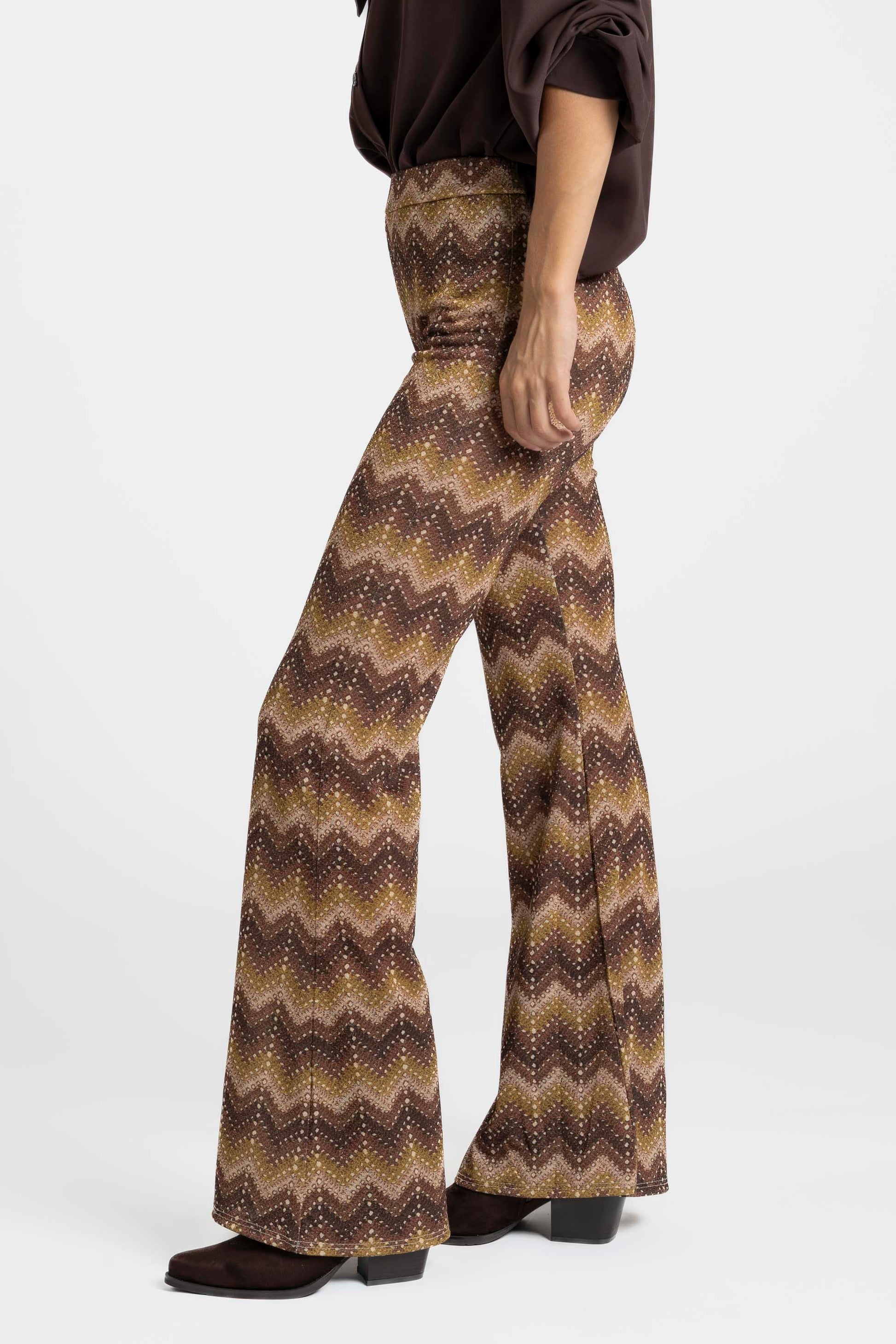 Tejido fluido estampado. Cintura alta. Cintura elástico. Diseño flare.