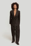 Tejido de acabado suave. Diseño estampado. Diseño recto. Diseño largo. Cierre de botón y cremallera. Detalle lentejuelas. Trabillas. Talla modelo: S. Altura modelo: 1,66 m.