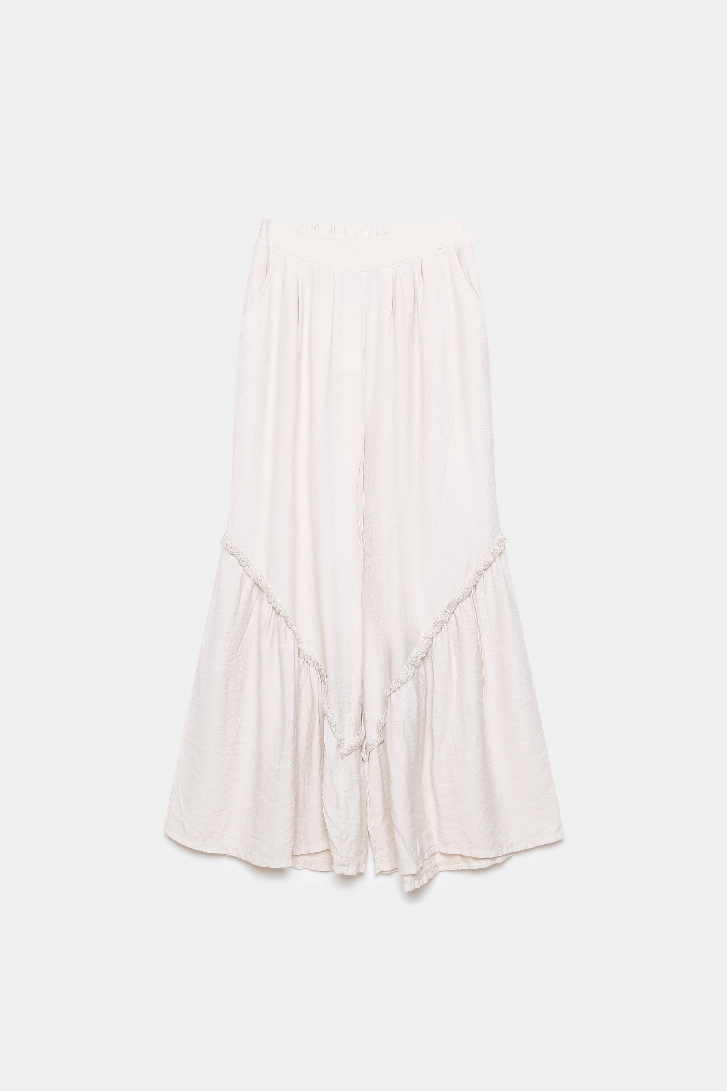 Tejido fluido. Cintura media. Bolsillos laterales. Talla S. Altura modelo: 1.70 m