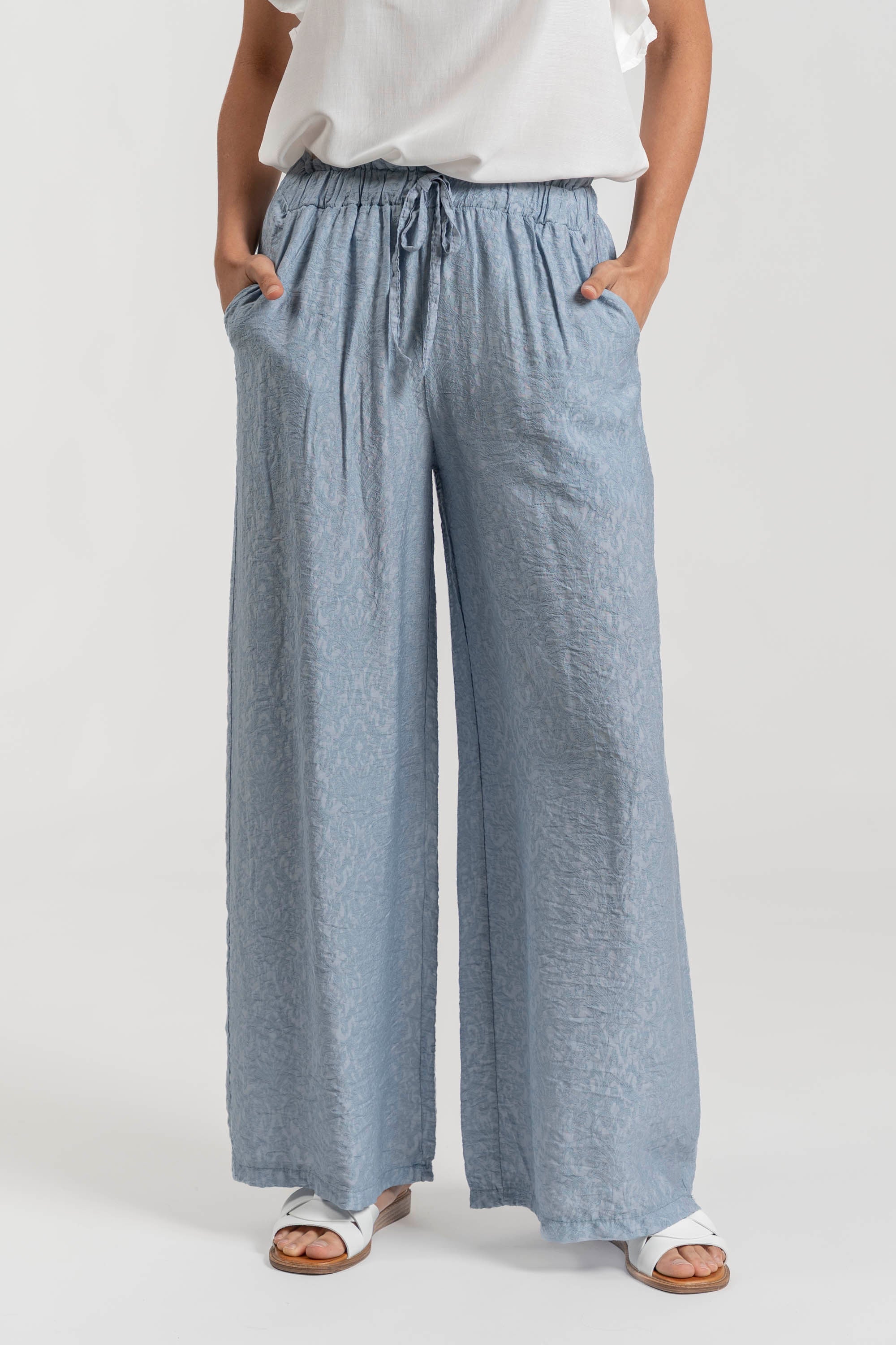 Tejido fluido. Diseño culotte. Diseño estampado. Bolsillos laterales. Diseño recto. Cintura elástica.