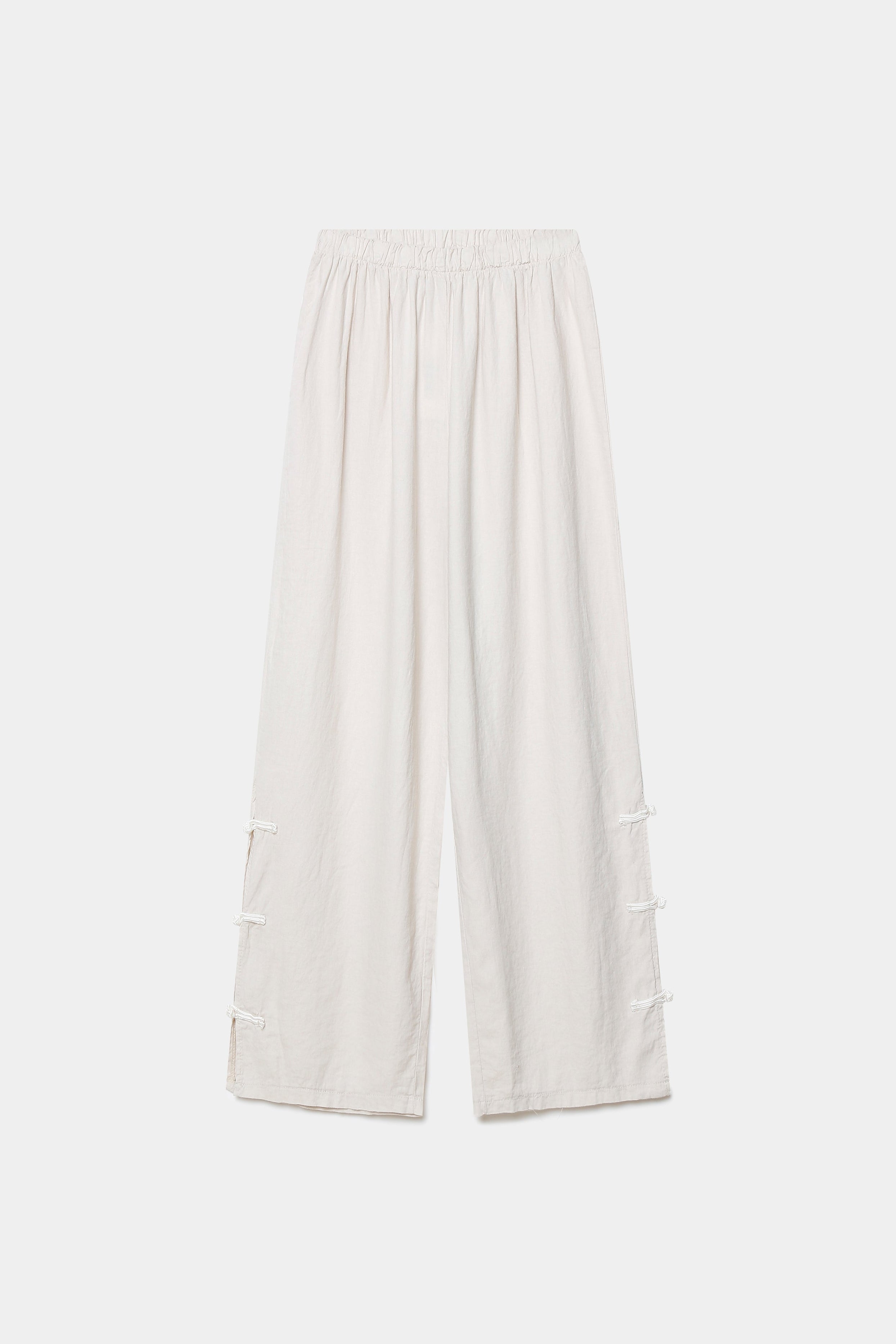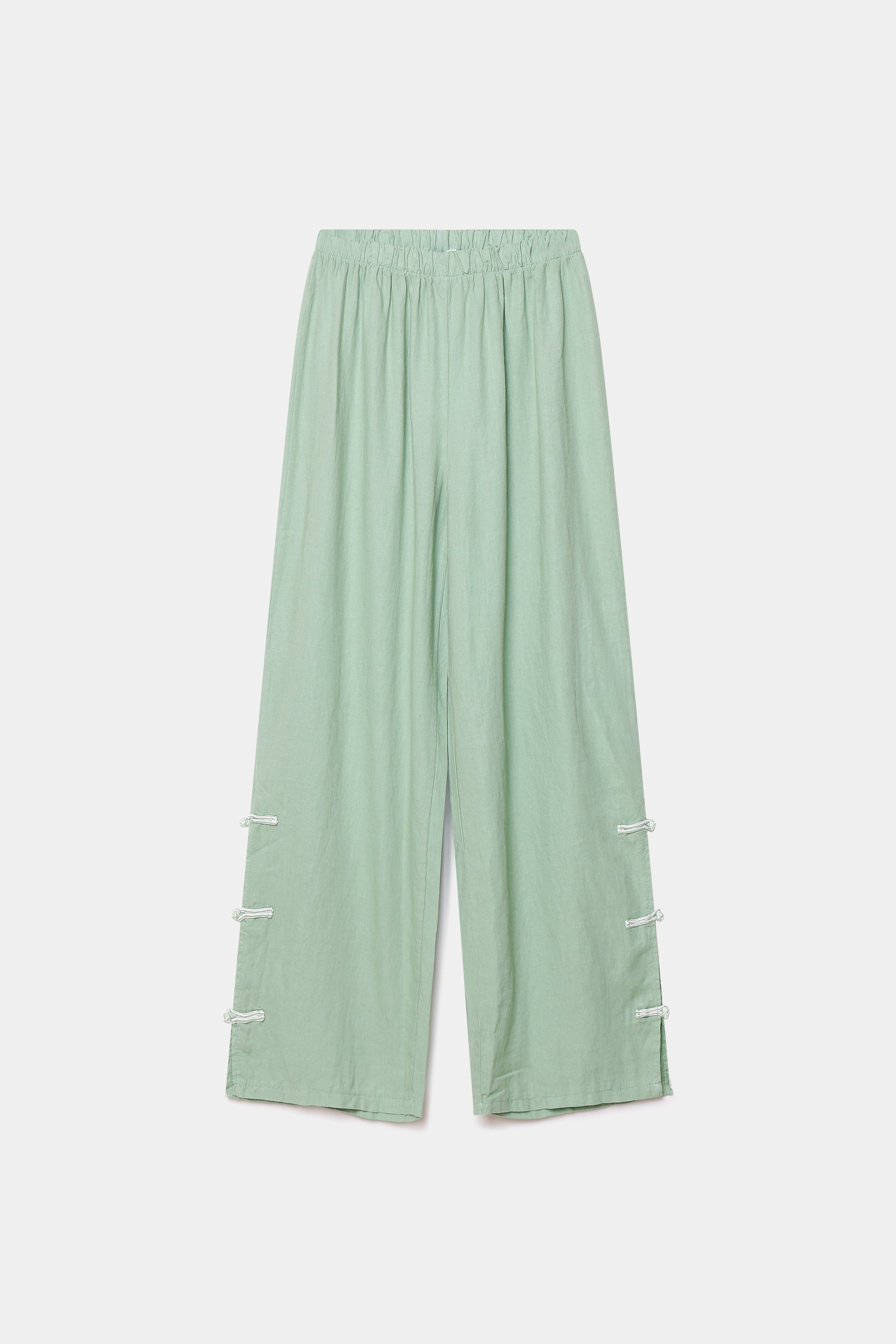 Tejido fluido. Cintura media. Cintura elástica. Detalle botones. Talla S. Altura modelo: 1.70 m