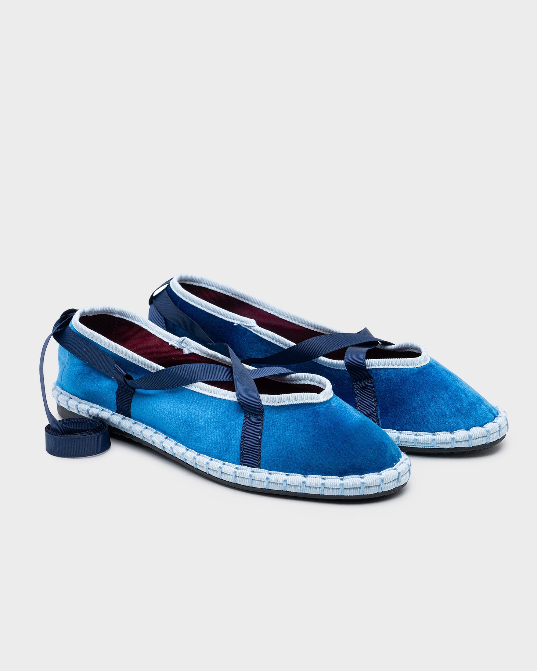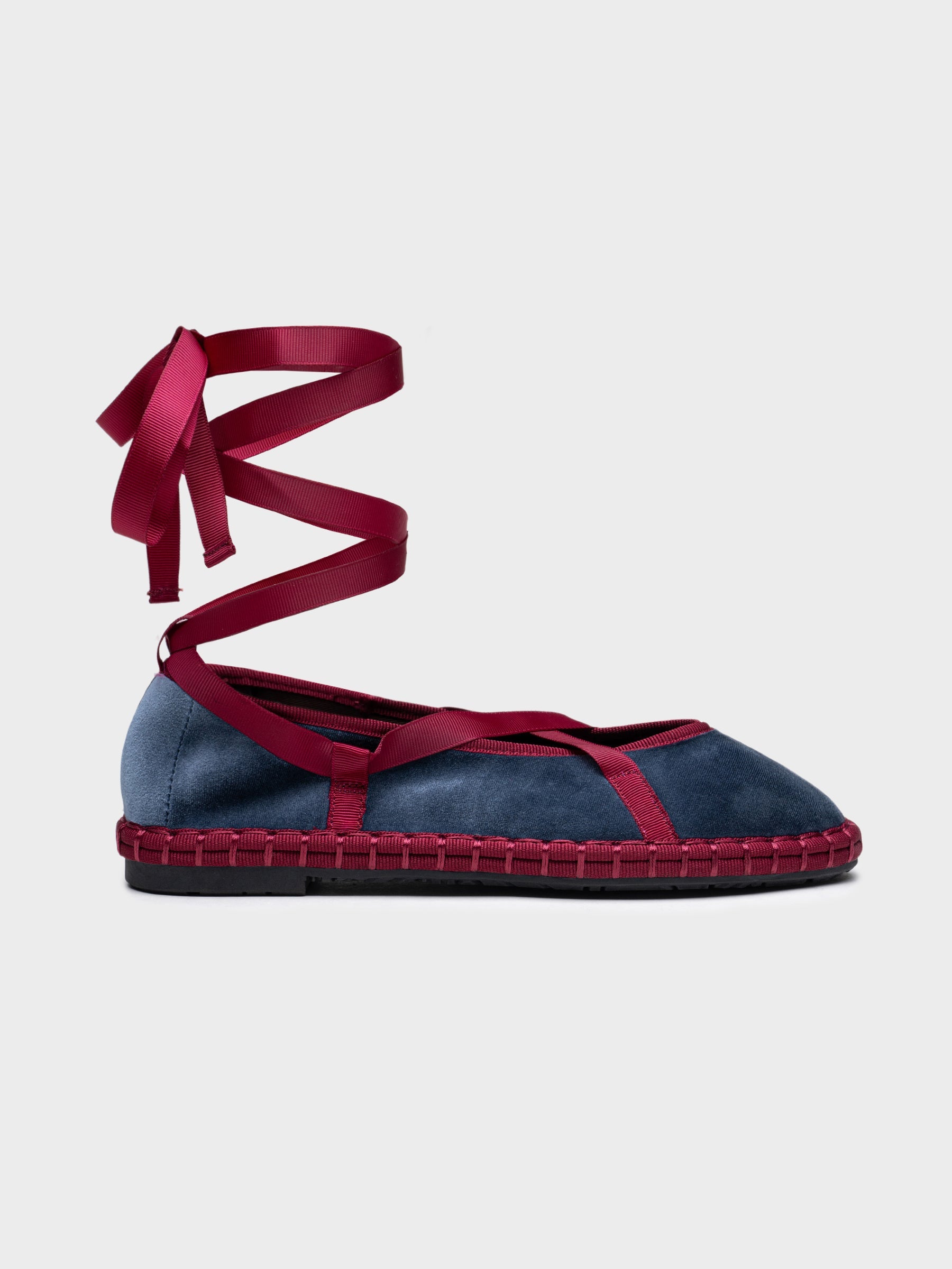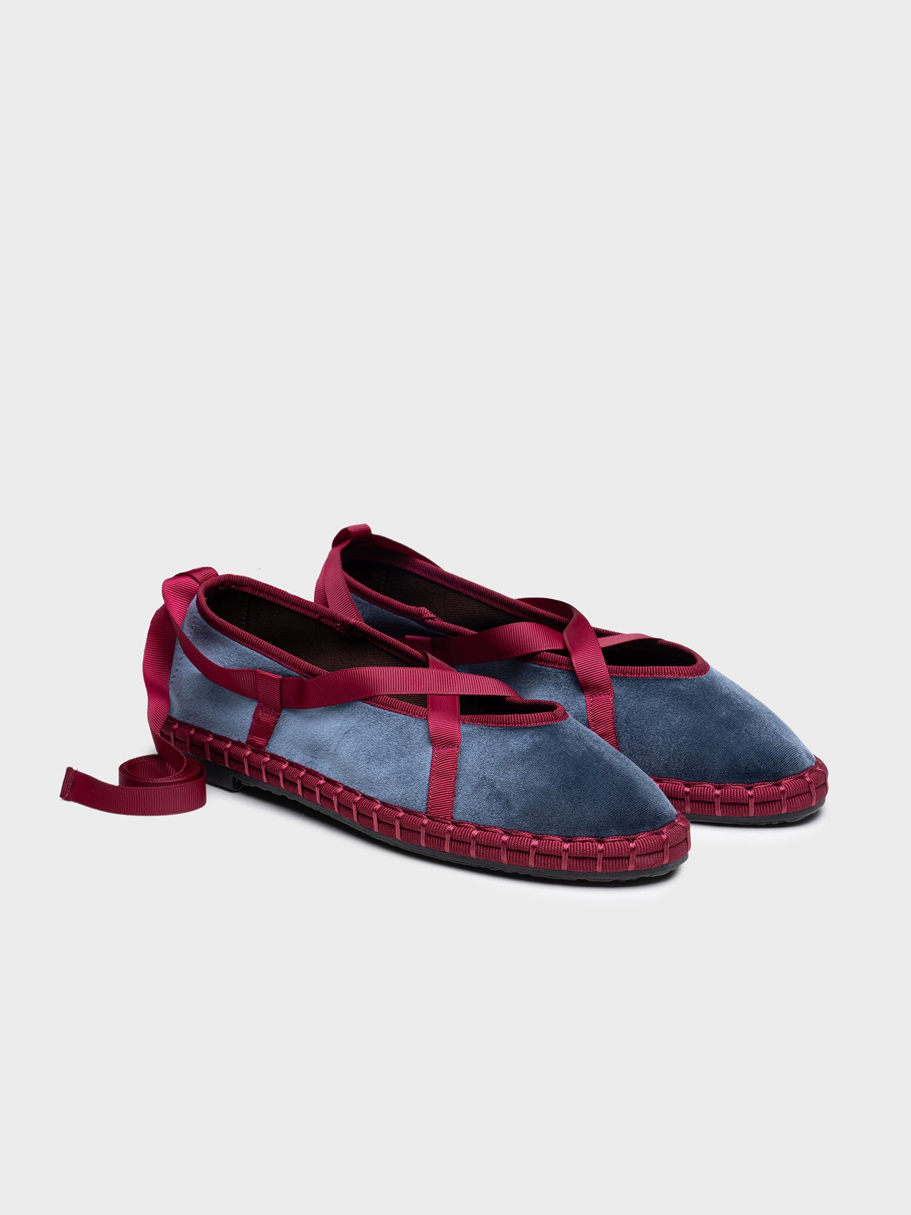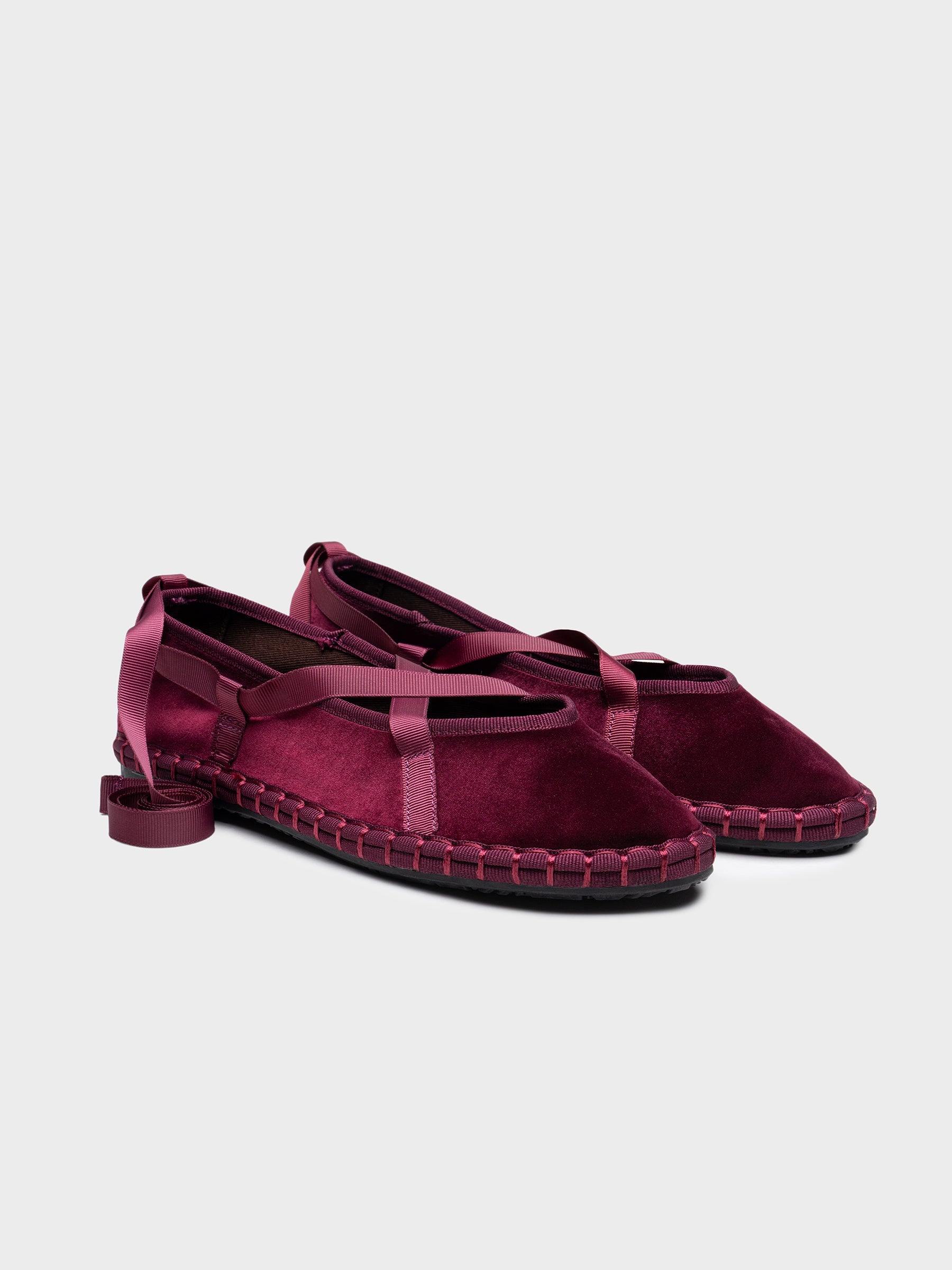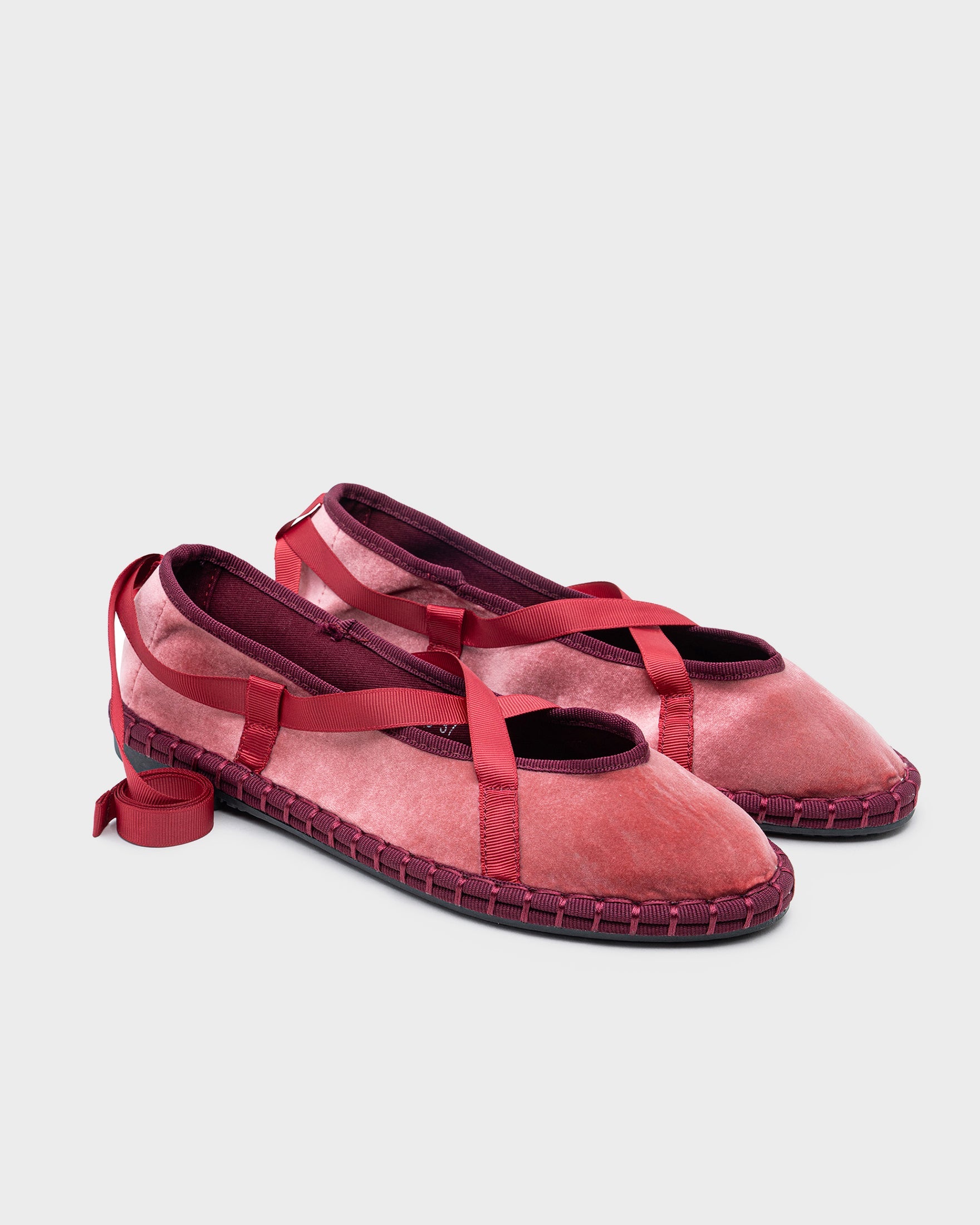 Zapato plano tipo bailarina. Tejido terciopelo. Acabado en punta redonda. Cierre de cordones. Suela plana. Suela de contacto antideslizante. Altura piso: 1.0 cm