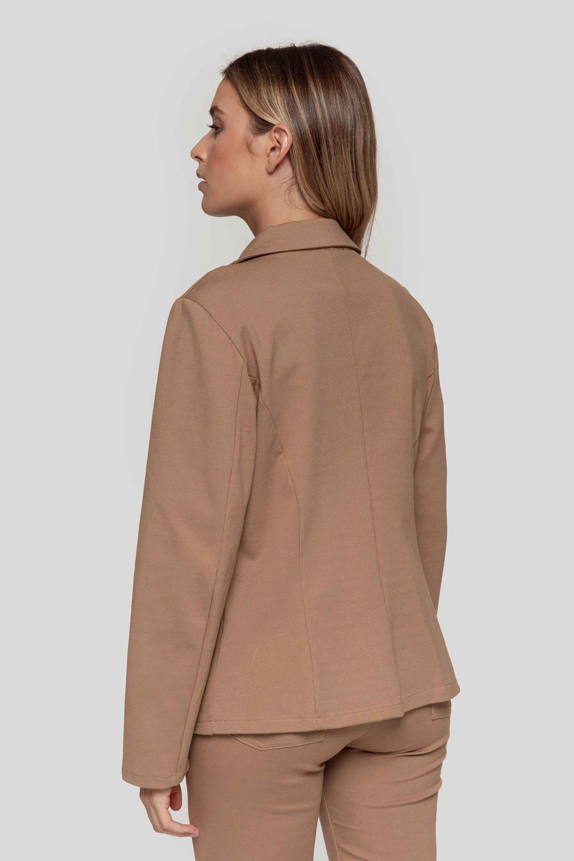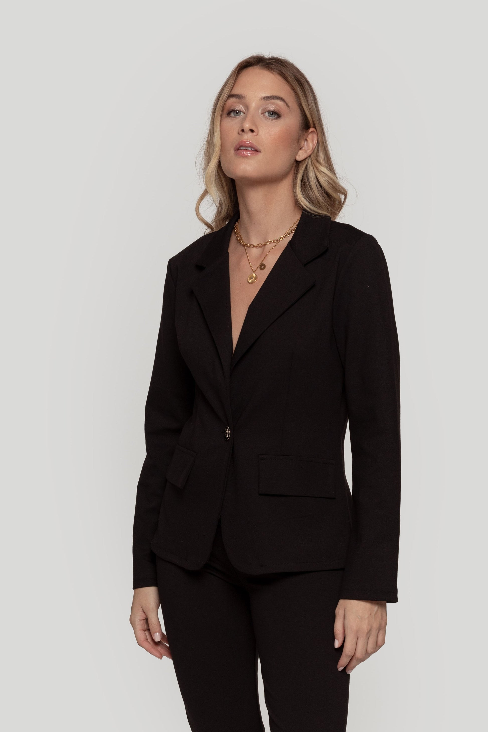 Diseño recto. Diseño entallado. Cuello pico con solapa. Estilo blazer. Solapas con muesca. Manga larga. Hombros estructurados.Cierre de botón. Dos solapas decorativas. No forrada. Talla modelo: S. Altura modelo 1, 67 m.