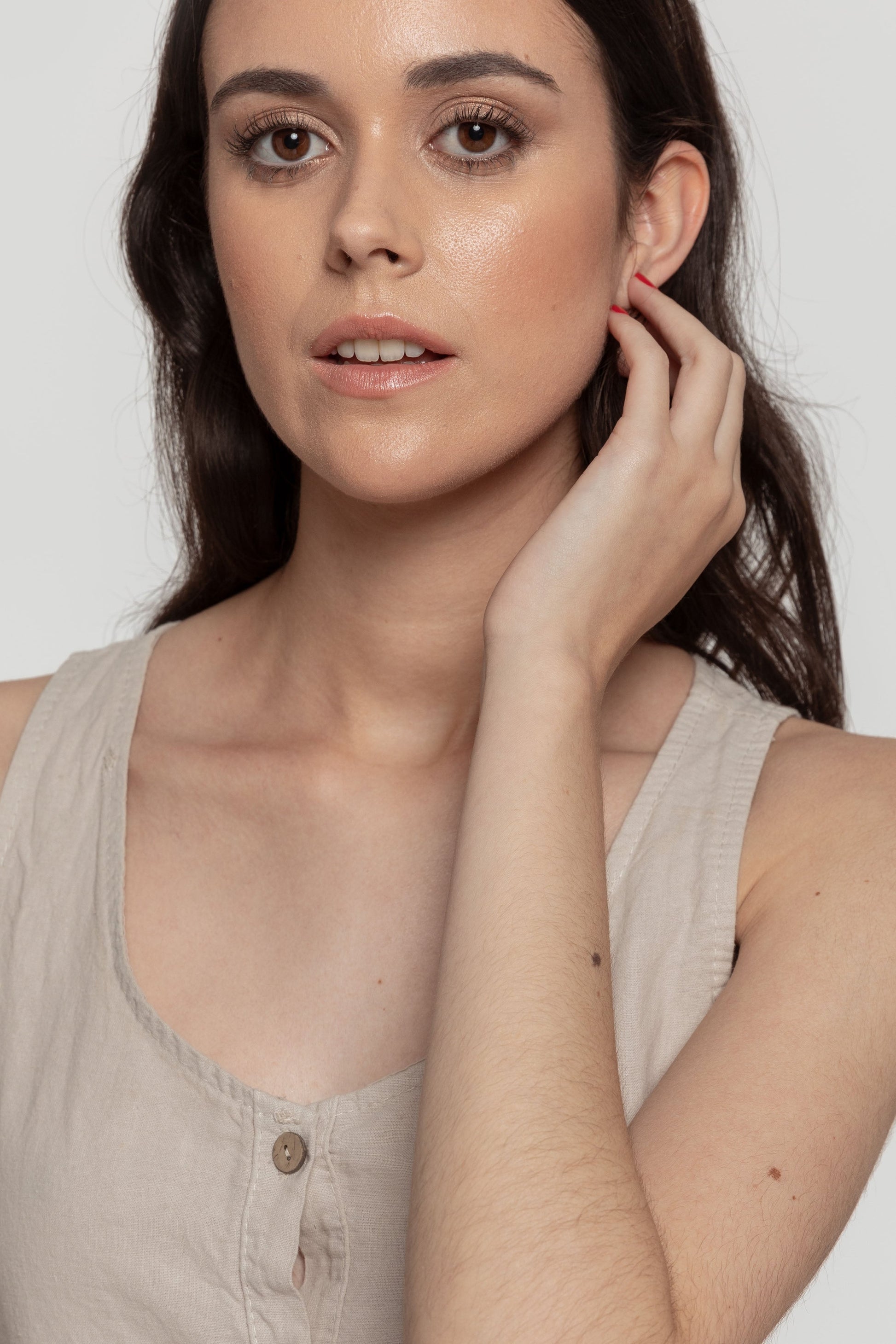 Tejido fluido. Tejido mezcla lino. Diseño peplum. Cuello pico. Sin mangas. Tirantes anchos. Cierre de botones. Bajo volante. Talla modelo: S. Altura modelo 1,67 m.